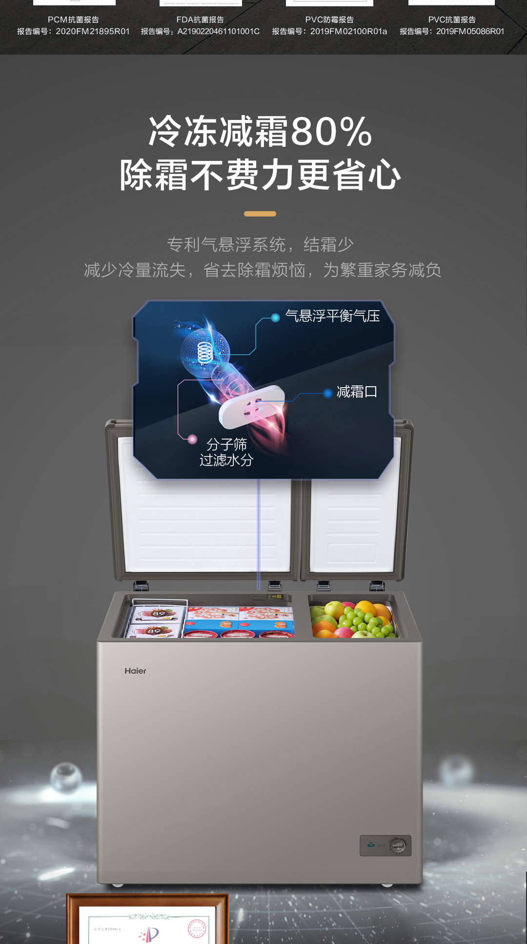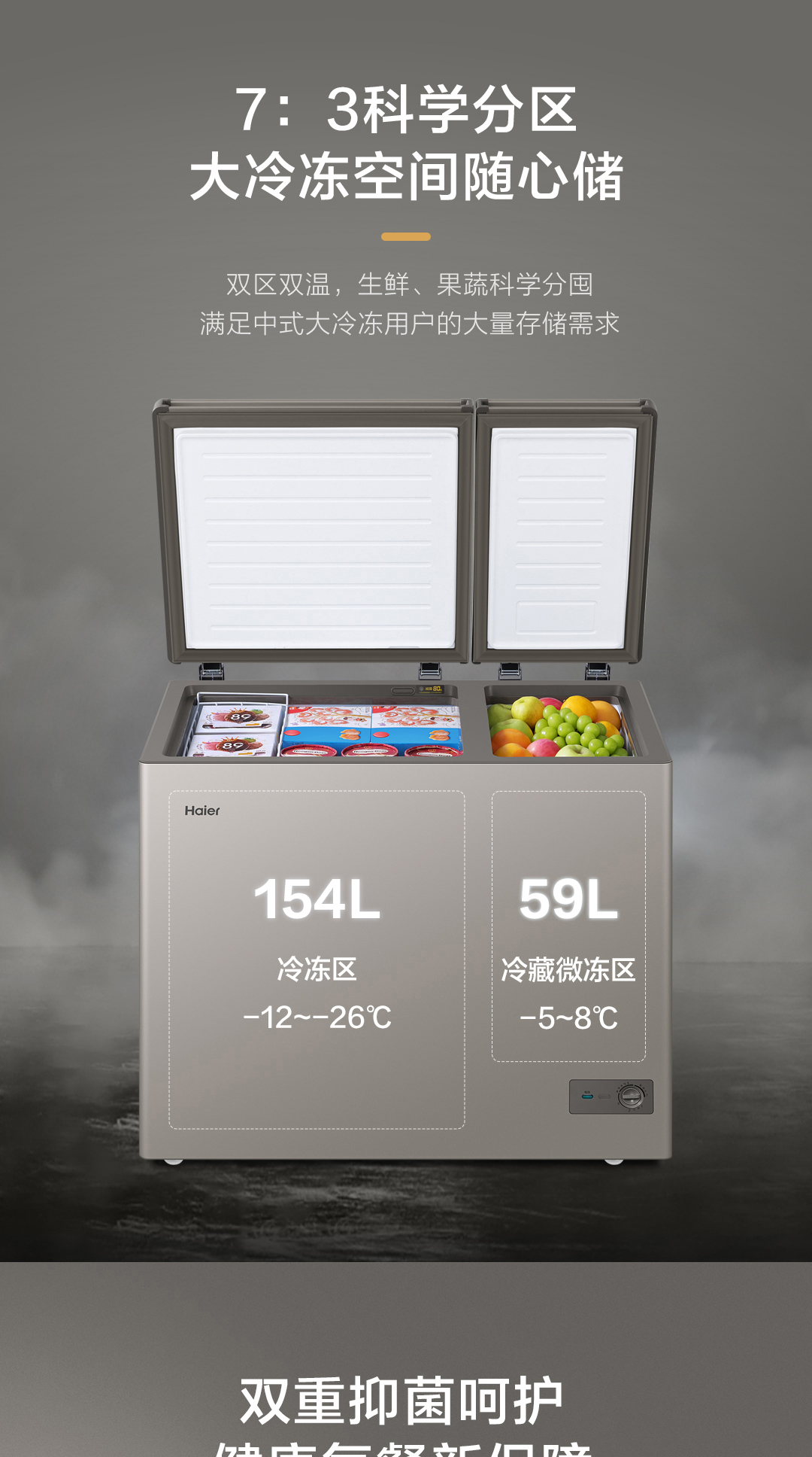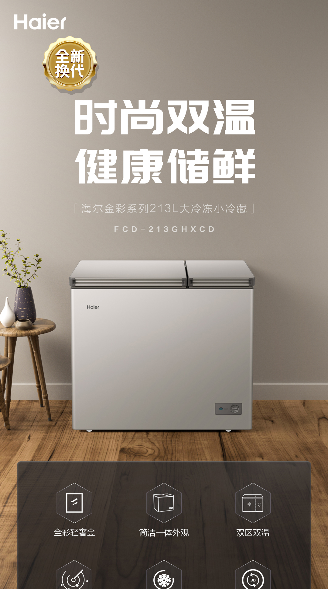 海尔(Haier)京馨 系列 213升 双温冷柜 低霜双箱 商用家用冰柜 大冷冻 小冷藏 卧式冰柜 家用冷柜FCD-213GHXCD