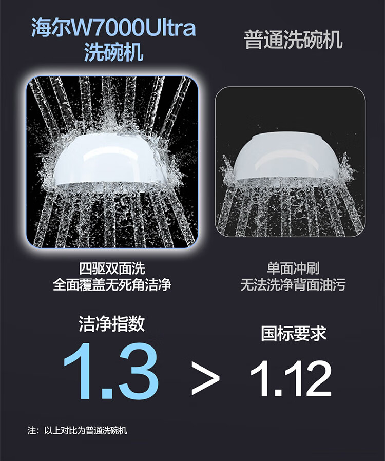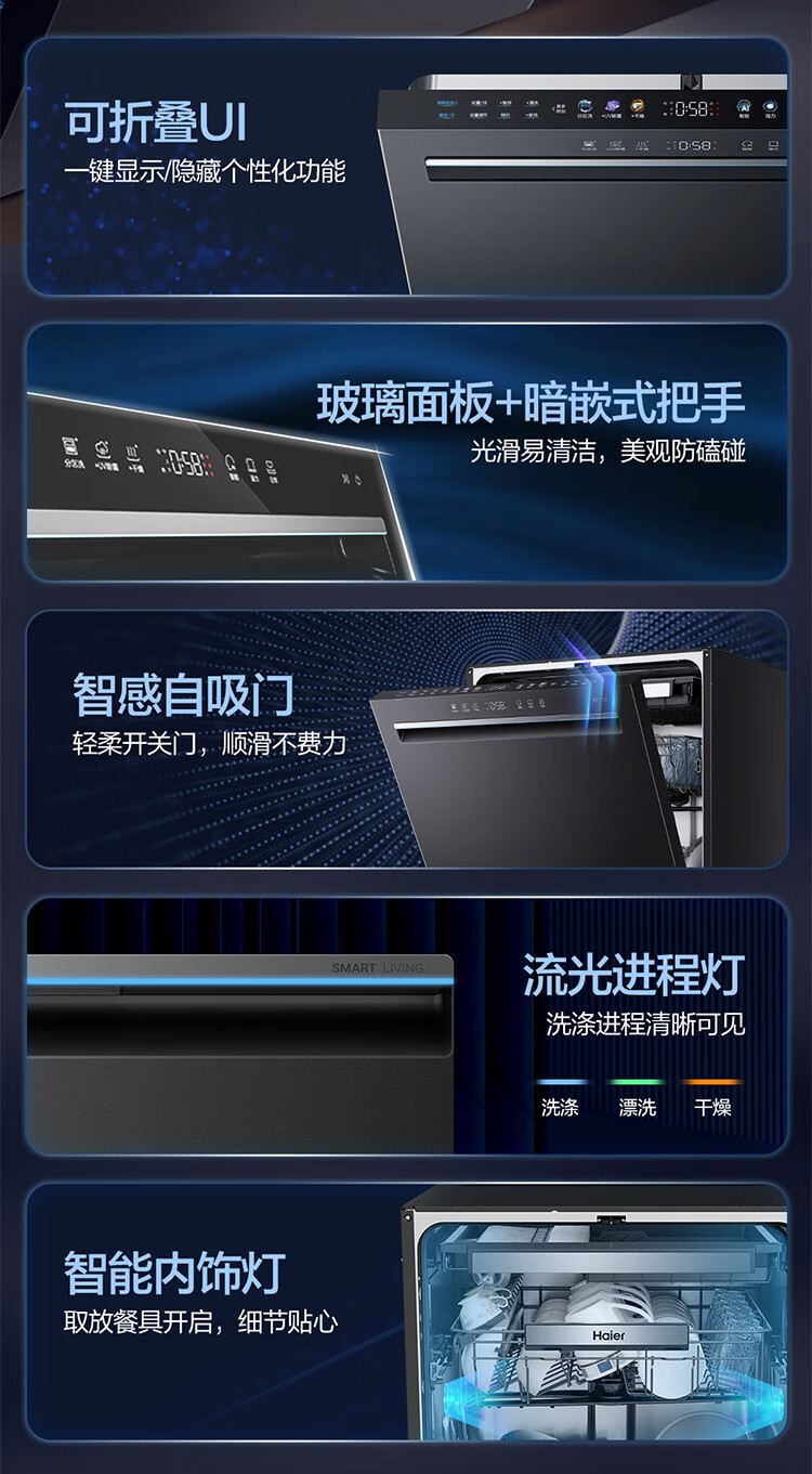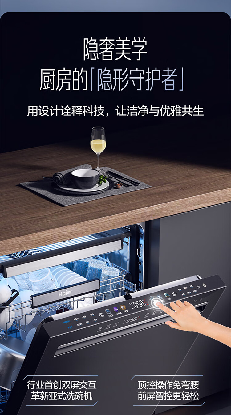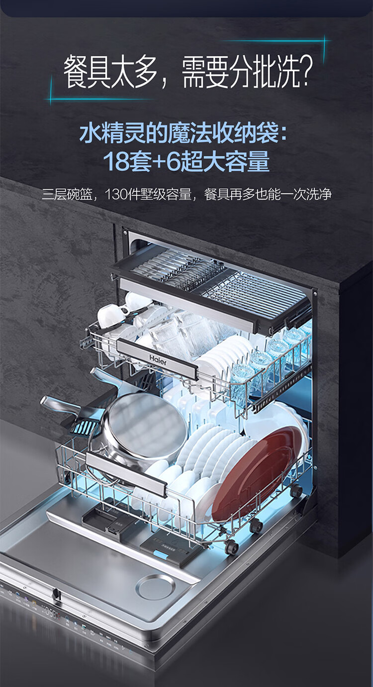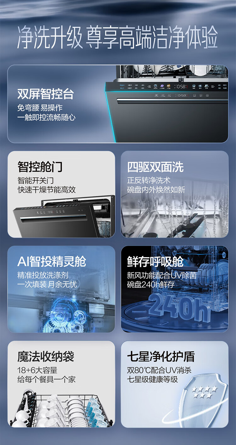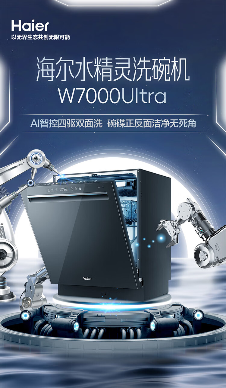 海尔(Haier)【W7000Ultra】四驱双面洗揽光洗碗机嵌入式18套+6大容量UV双重除菌智能开关门速干EYDSZW1858SHU1