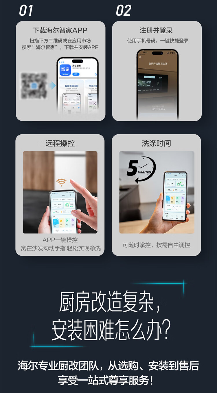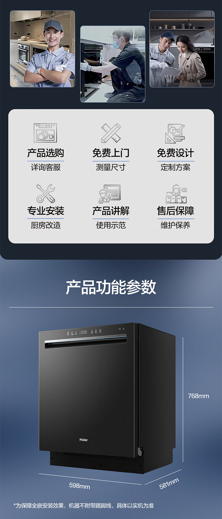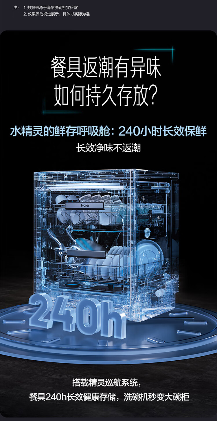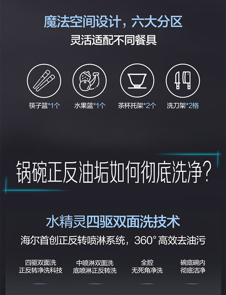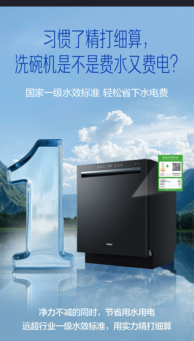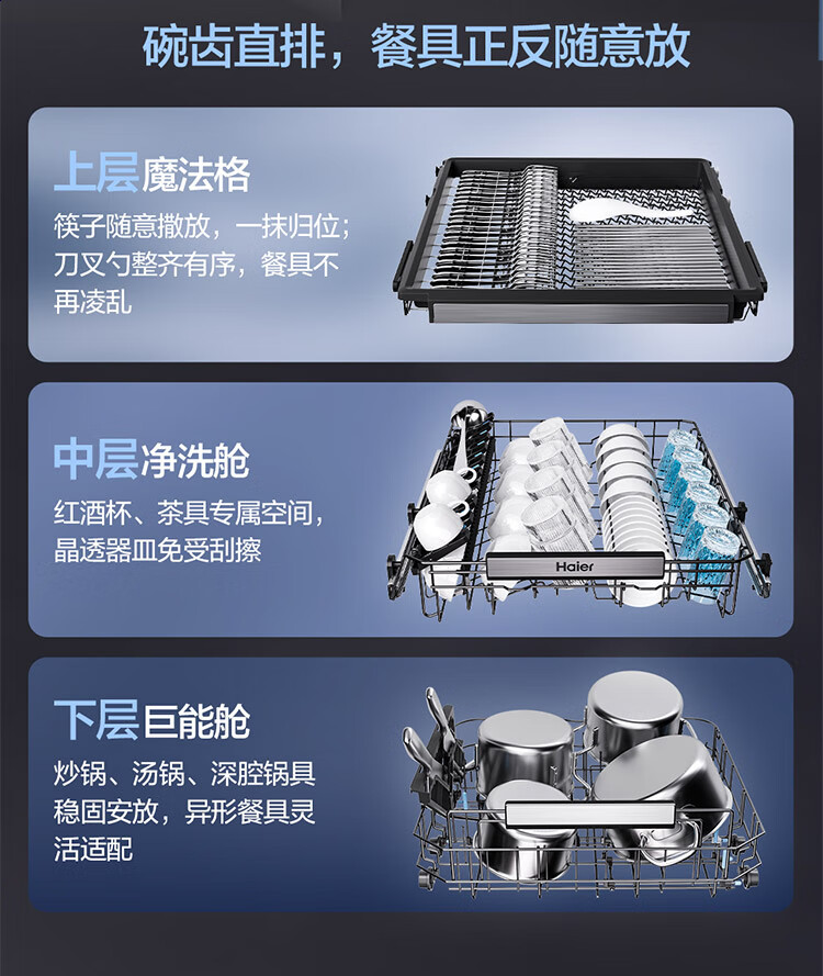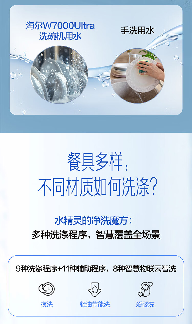 海尔(Haier)【W7000Ultra】四驱双面洗揽光洗碗机嵌入式18套+6大容量UV双重除菌智能开关门速干EYDSZW1858SHU1