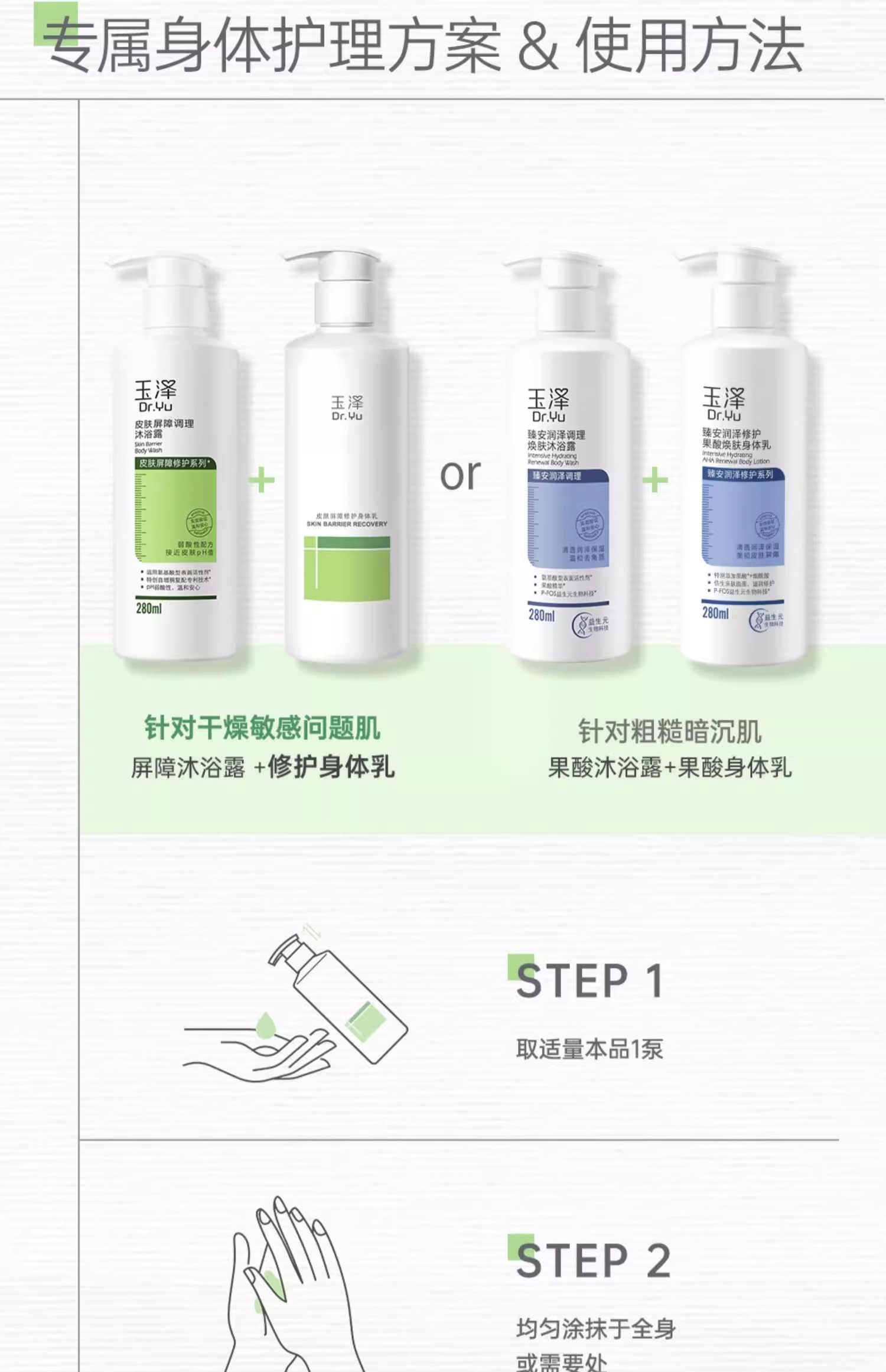 玉泽皮肤屏障身体护理套装(屏障身体乳280ml+屏障沐浴液280ml)/套