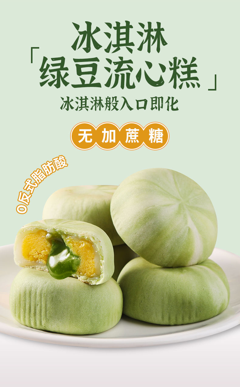 【入口即化!冰淇淋流心绿豆糕】不单独添加蔗糖,0反式脂肪酸,解馋少负担,安心每一口!老人小孩下午茶休闲养生糕点食品早餐代餐零食rui