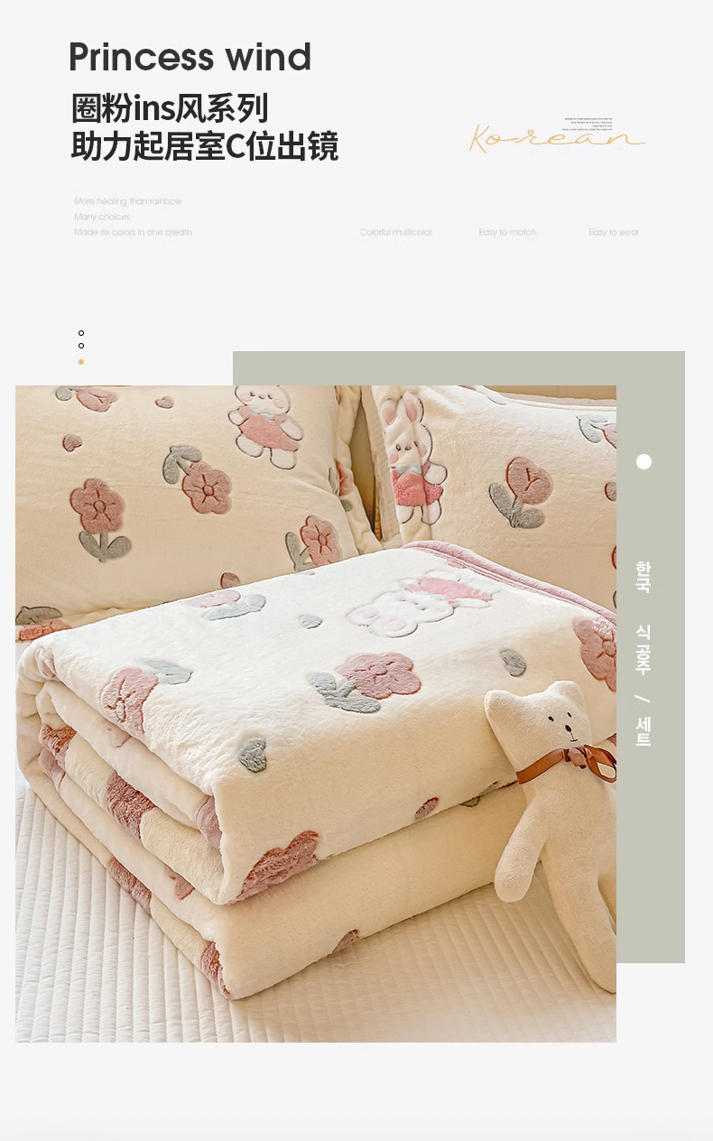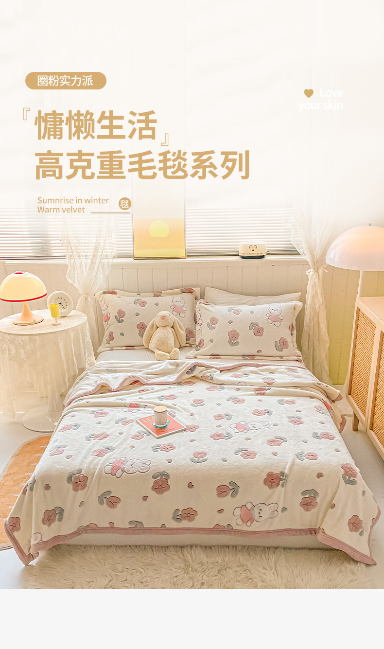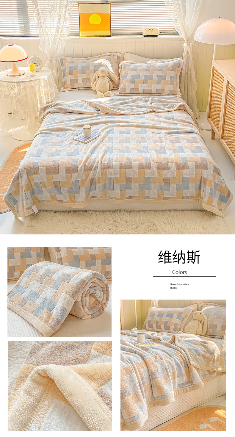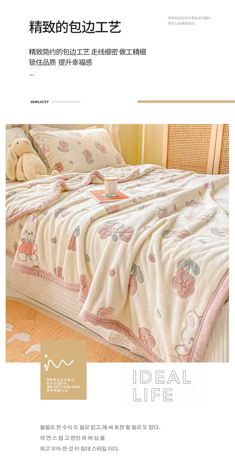 【YW】无忧购冬季法兰绒毛毯双面加厚毯子a类盖毯三件套(截单后3-5天发货)