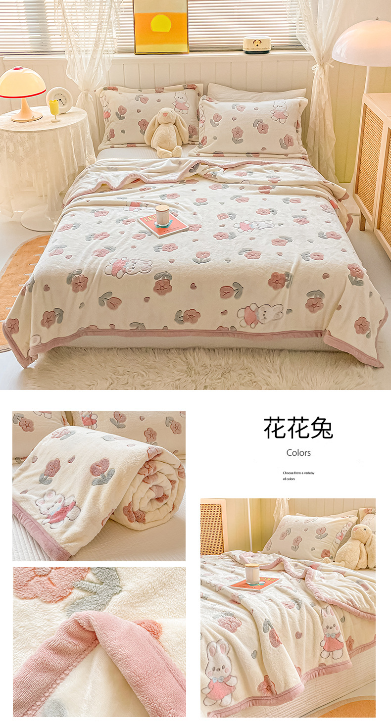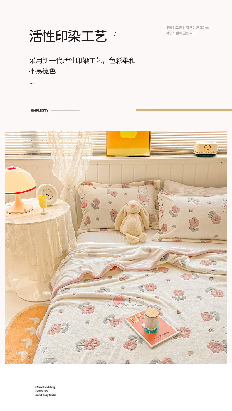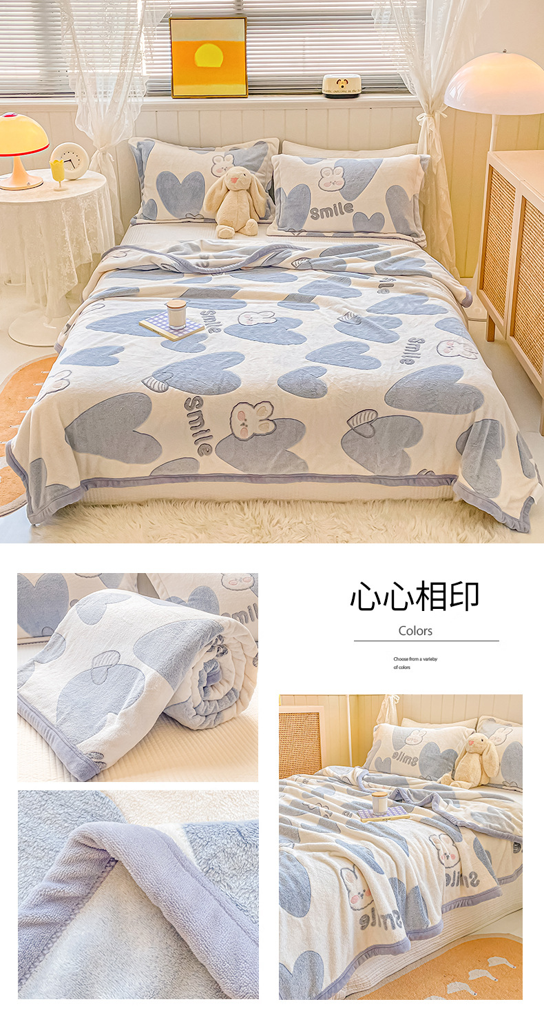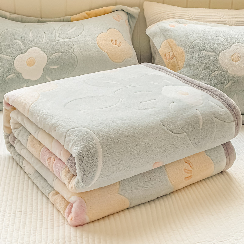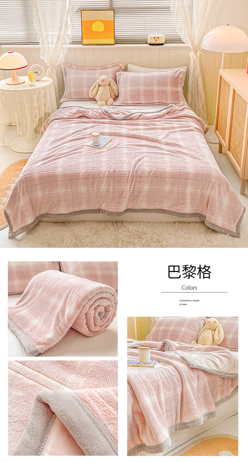 【YW】无忧购冬季法兰绒毛毯双面加厚毯子a类盖毯三件套(截单后3-5天发货)