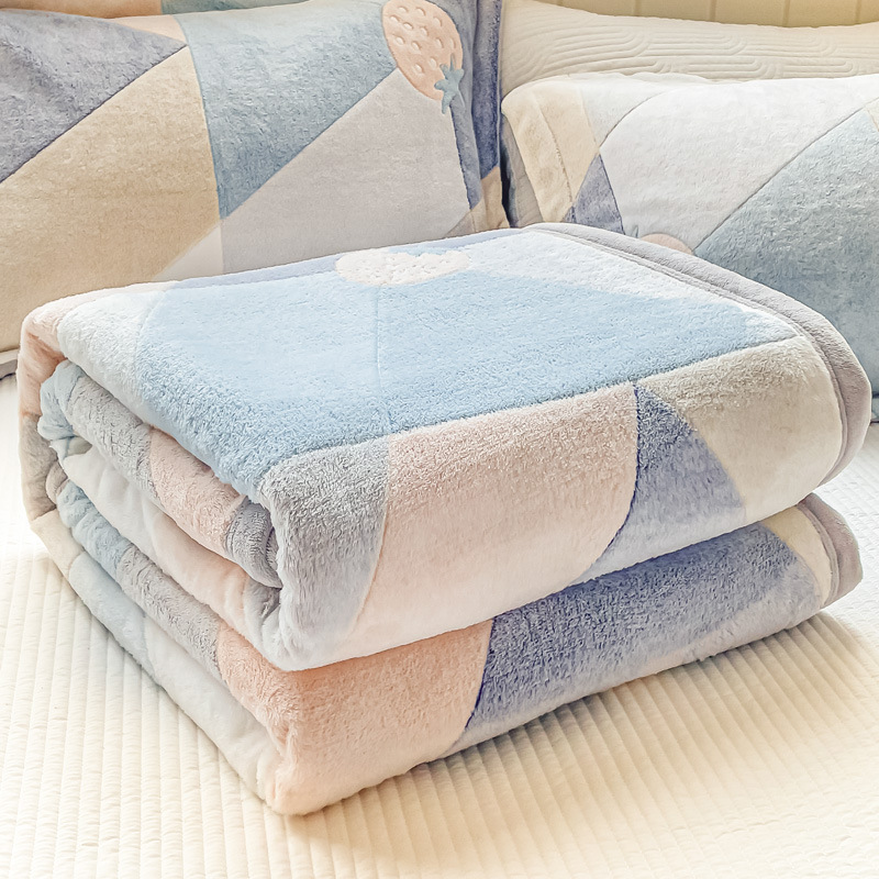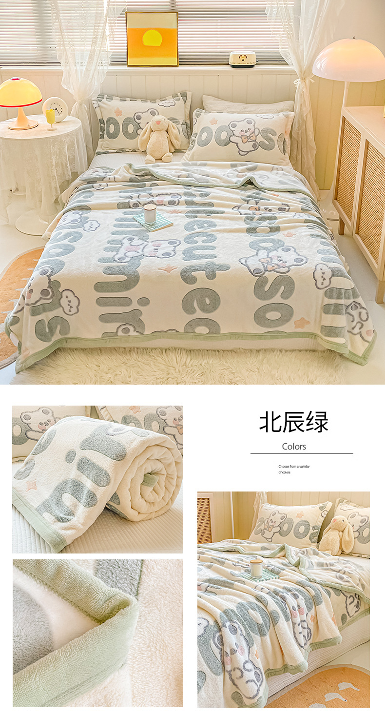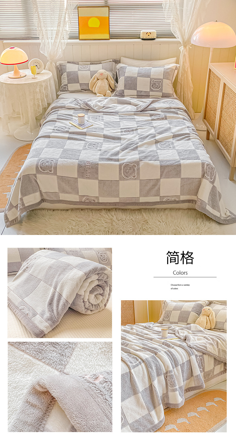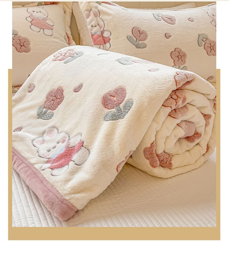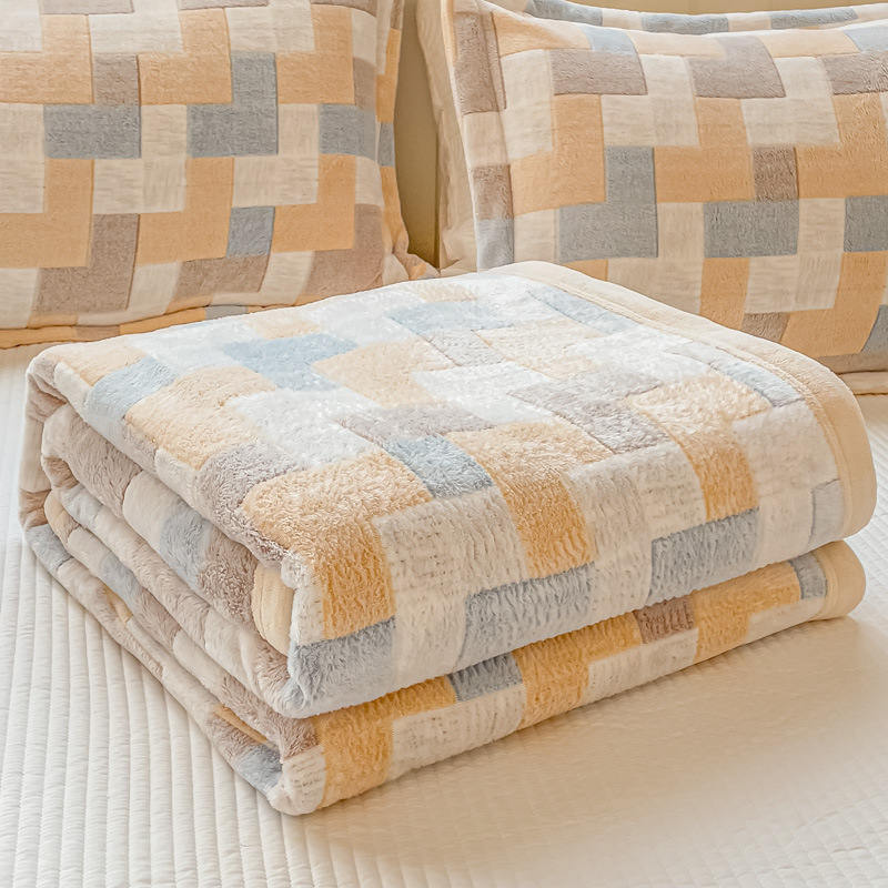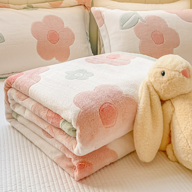 【YW】无忧购冬季法兰绒毛毯双面加厚毯子a类盖毯三件套(截单后3-5天发货)