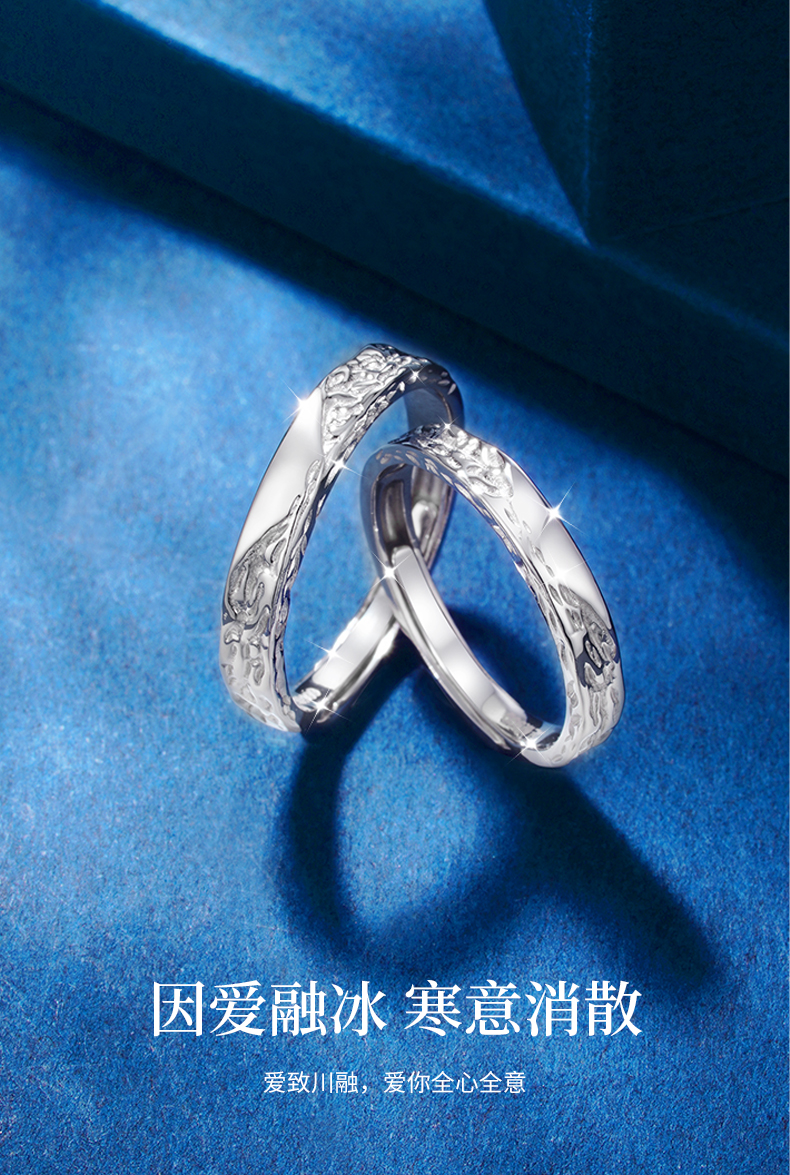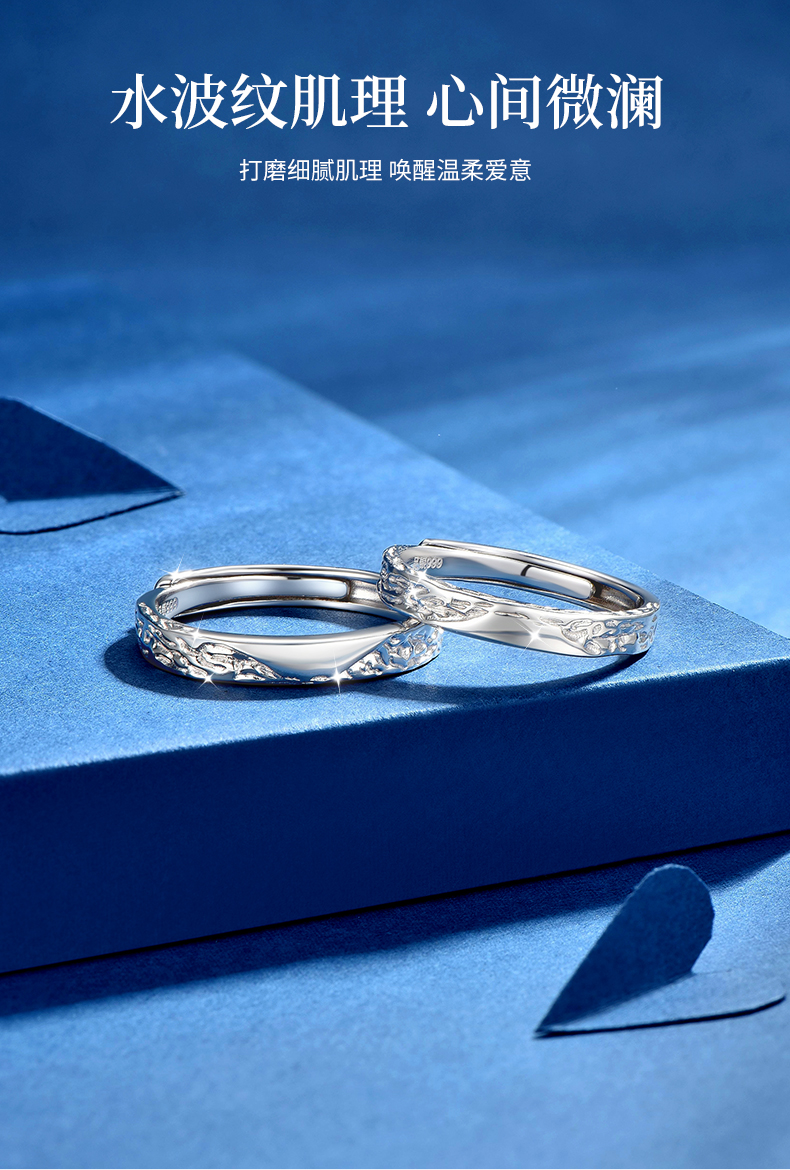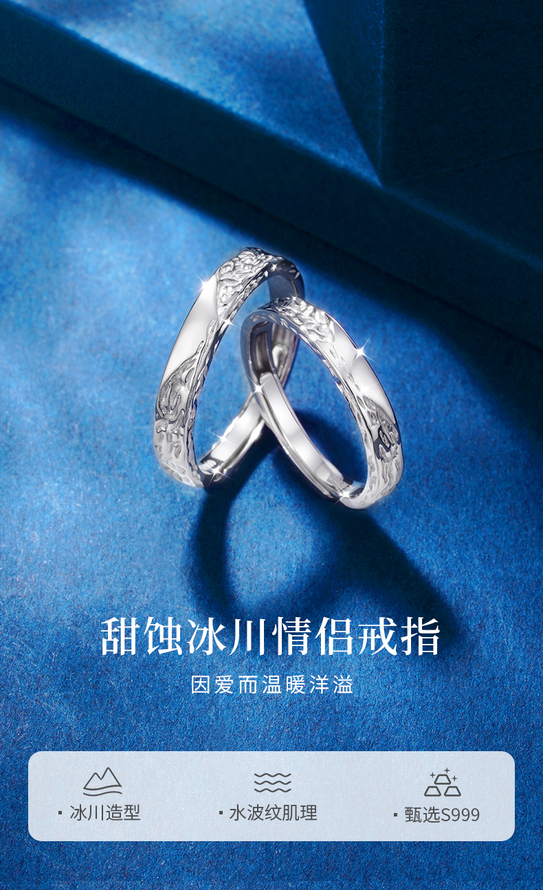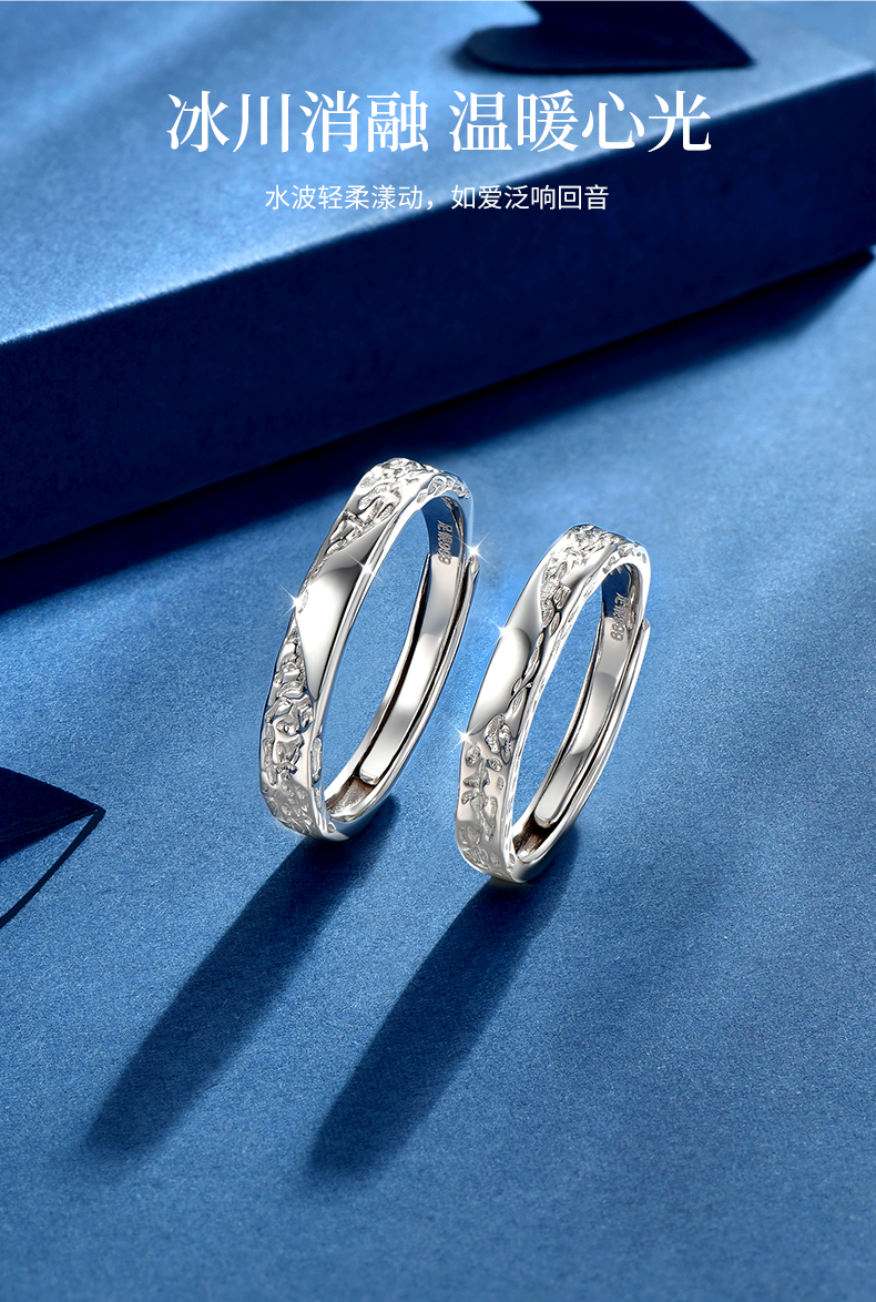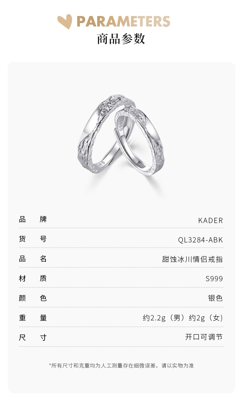 KADER卡蒂罗 甜蚀冰川 999足银 情侣对戒小众素圈开口可调节对戒 简约百搭极简风配饰 纪念日礼物礼盒 送女友