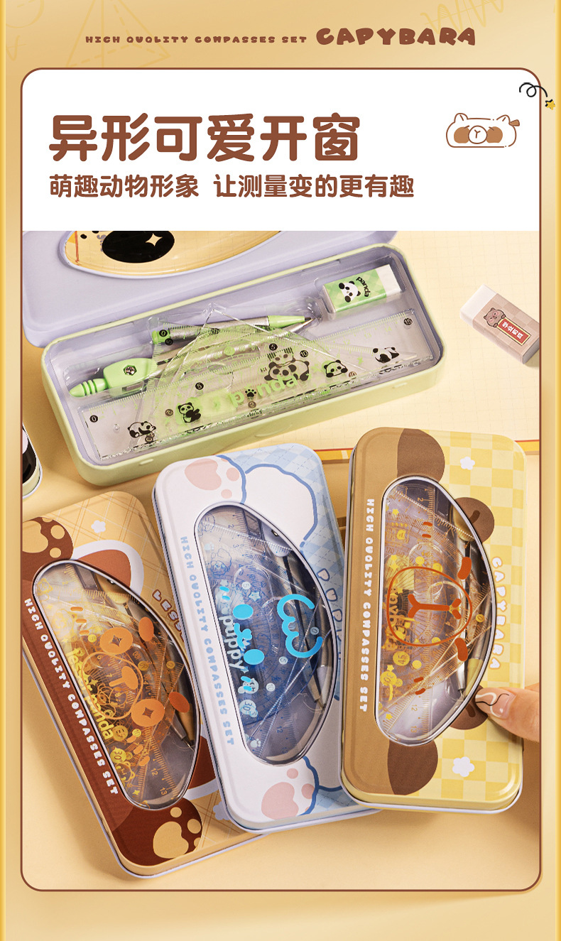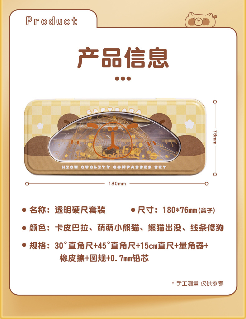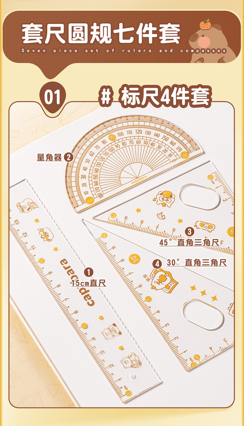 【老师推荐❗️咔巴熊套尺圆规七件套】采用结实耐用铁盒包装,包含常规七件套❗️尺子刻度清晰❗️学生专用圆规尺子7件套小学生奖品礼物学习用品文具L