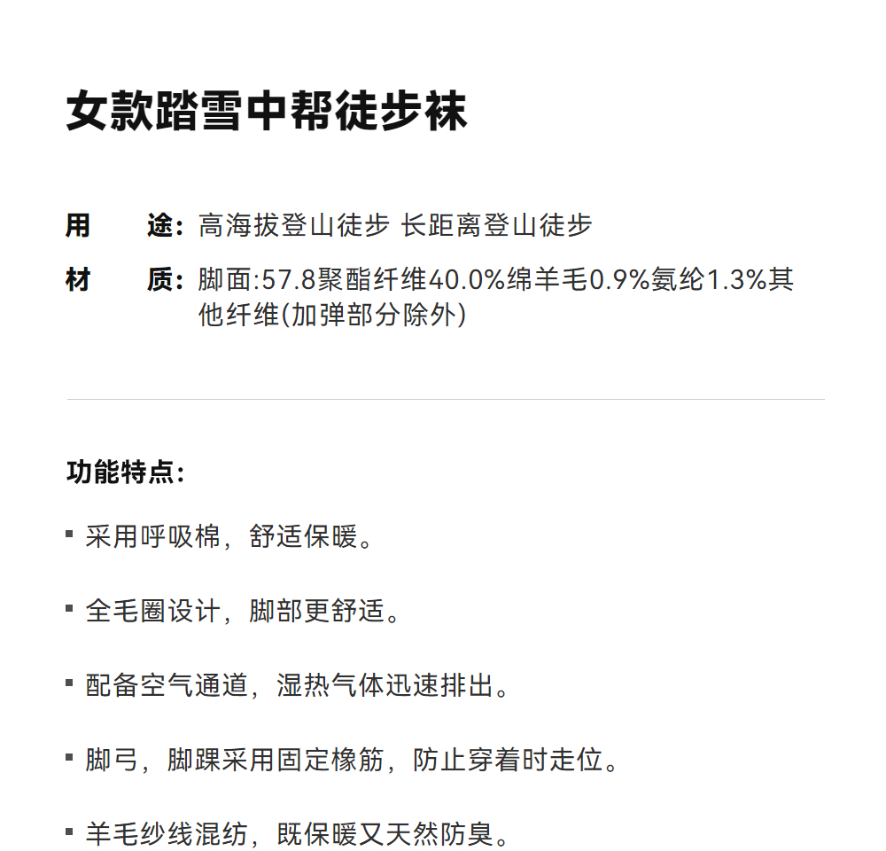 KAILAS凯乐石 女款踏雪中帮徒步袜 KH2501201