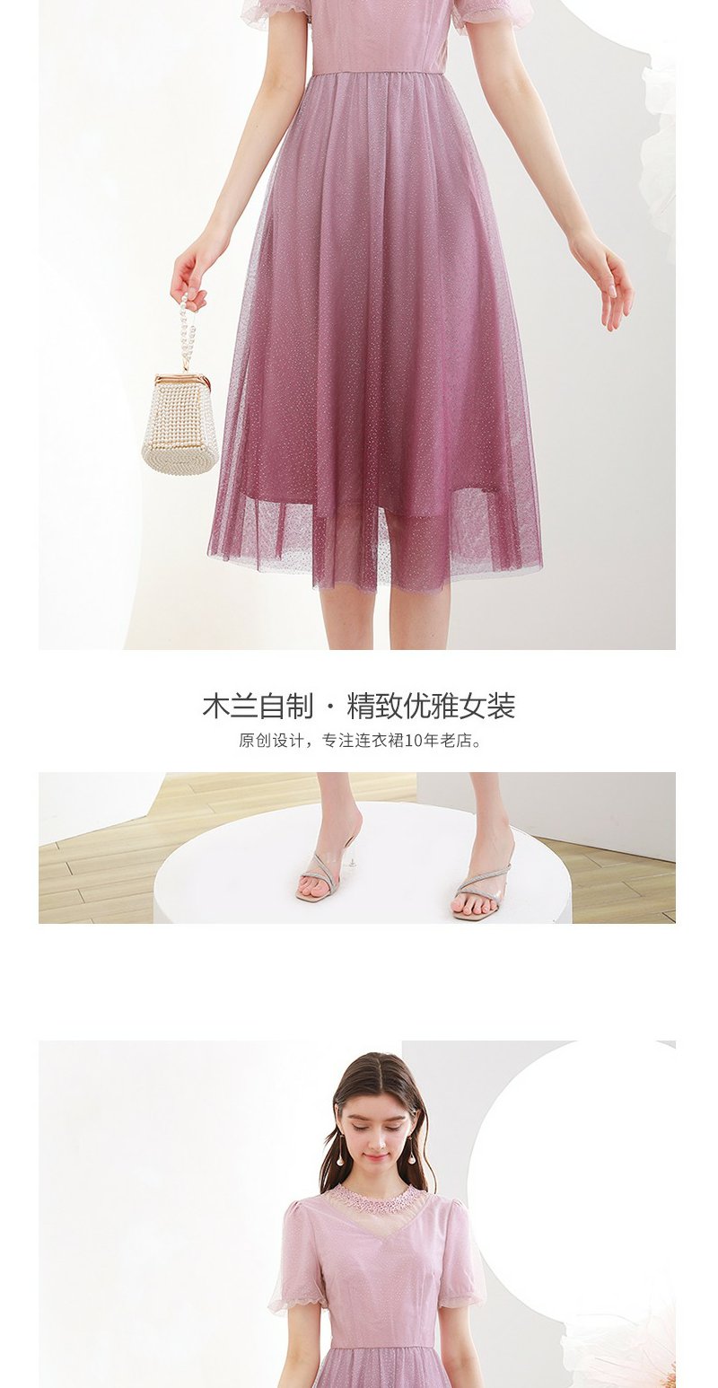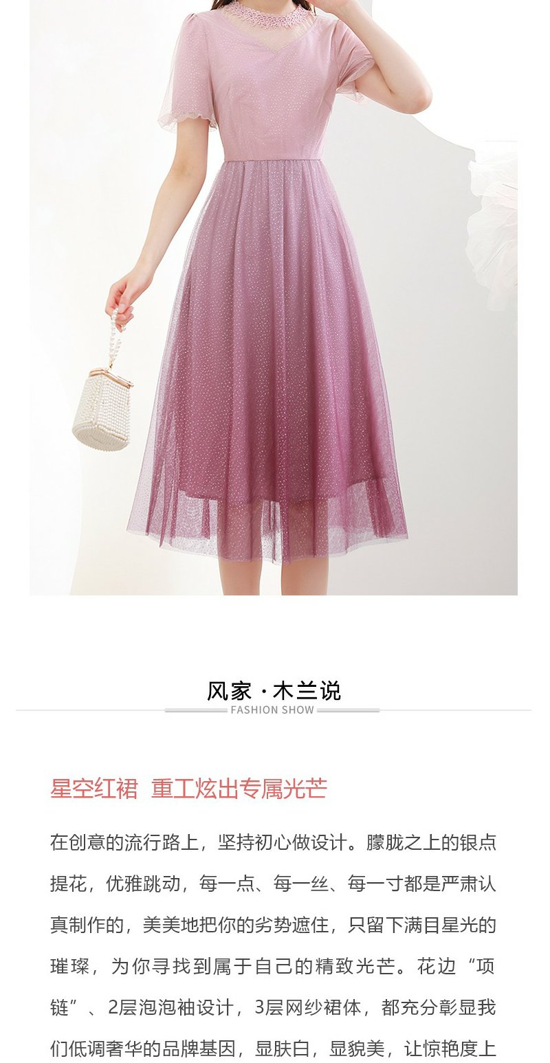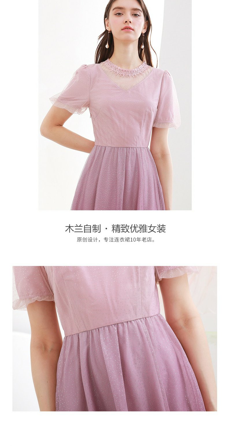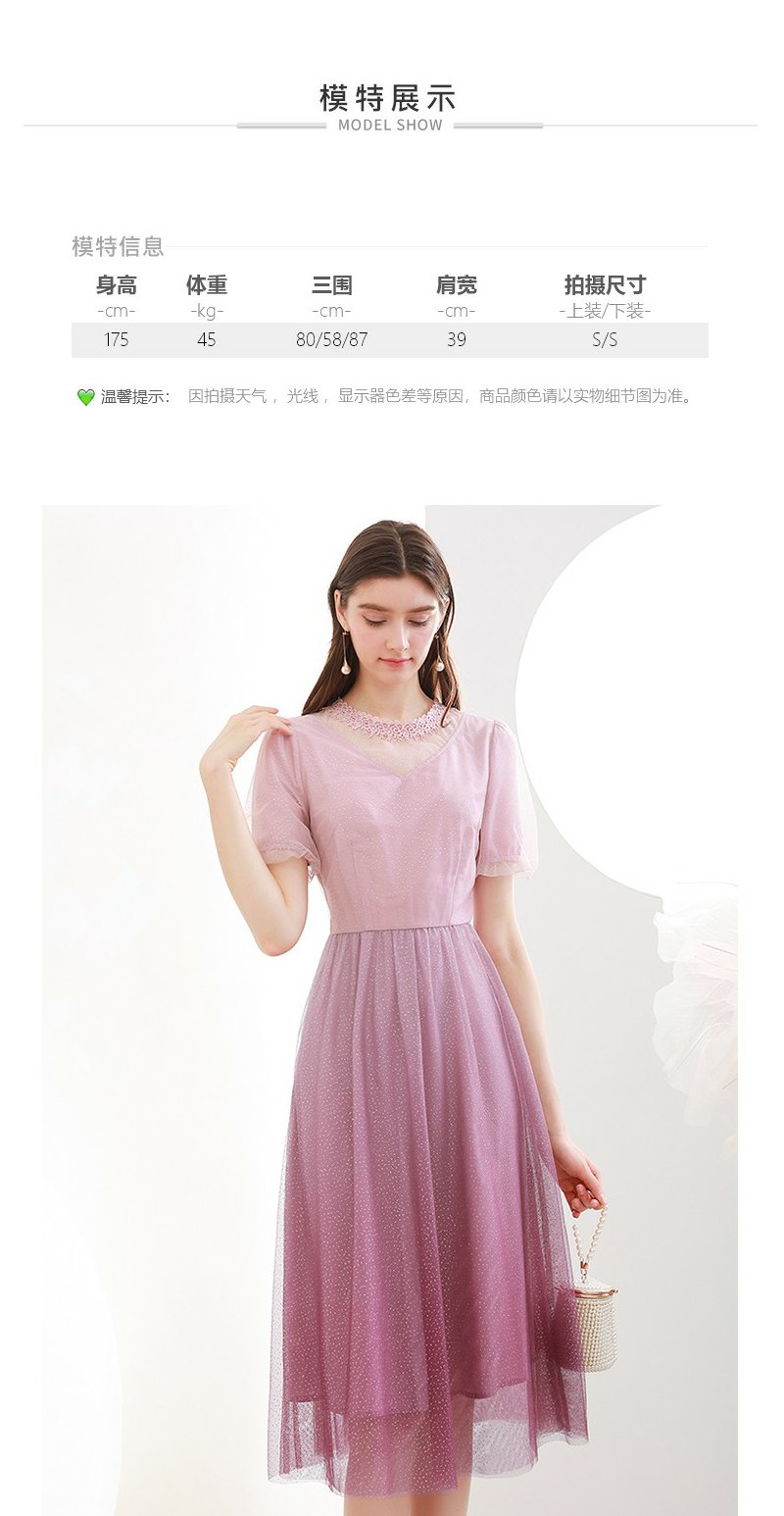未风时尚网纱连衣裙女夏2024夏季新款名媛气质收腰显瘦泡泡袖裙子