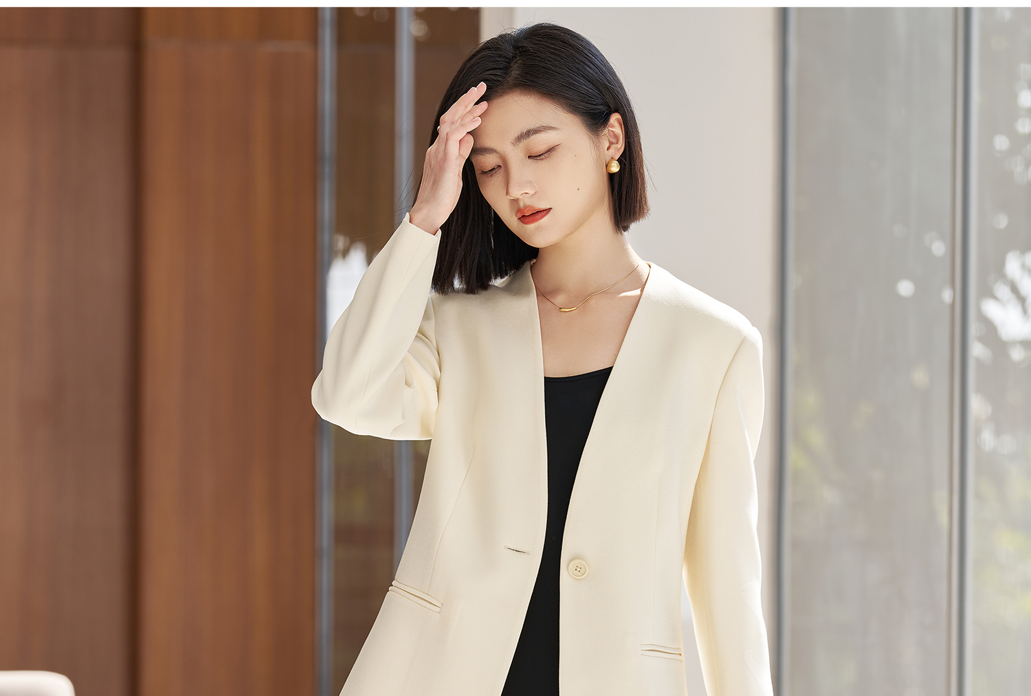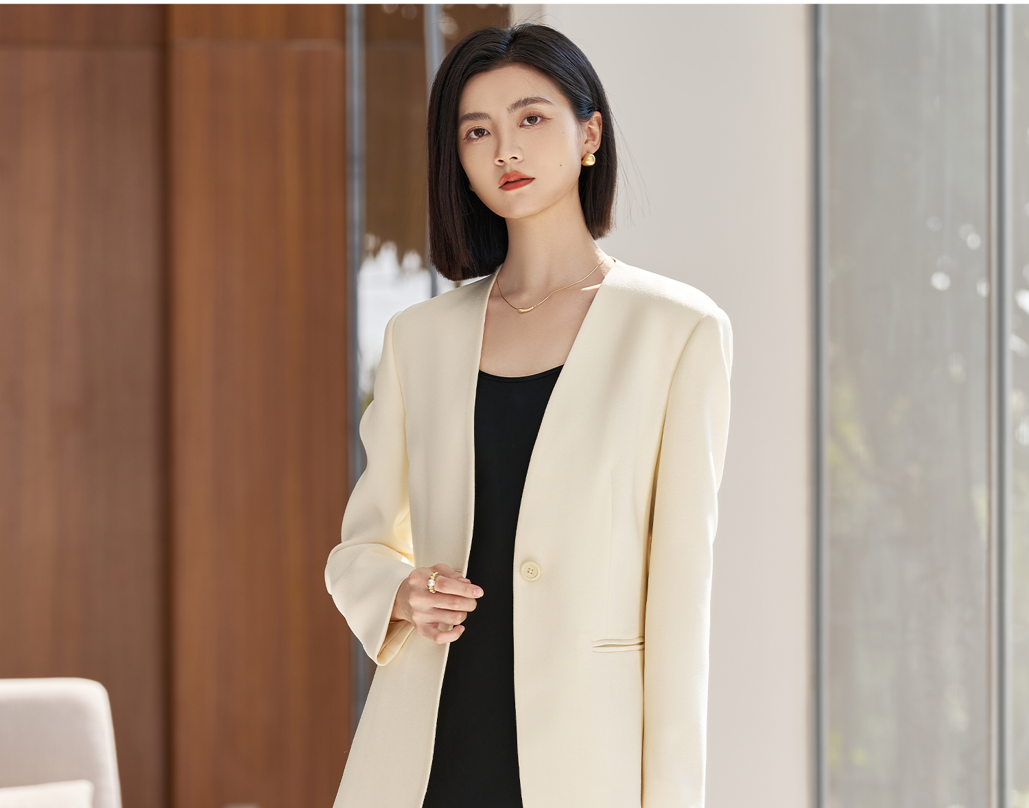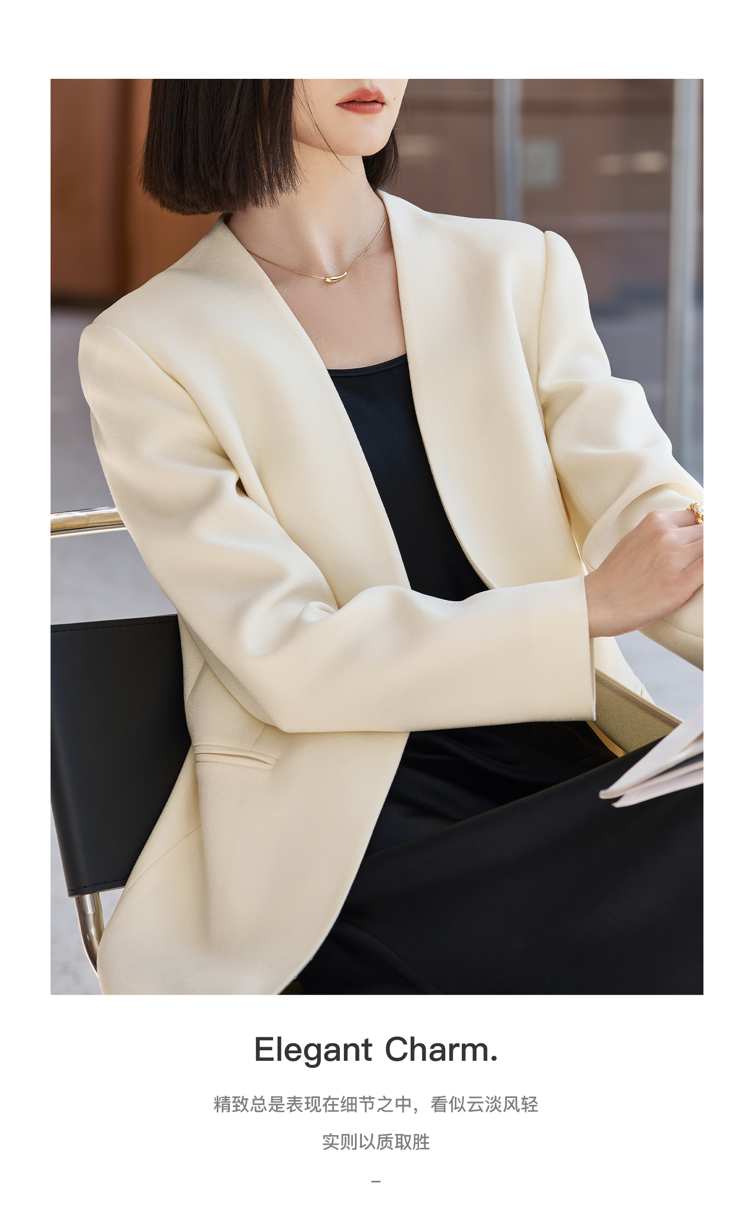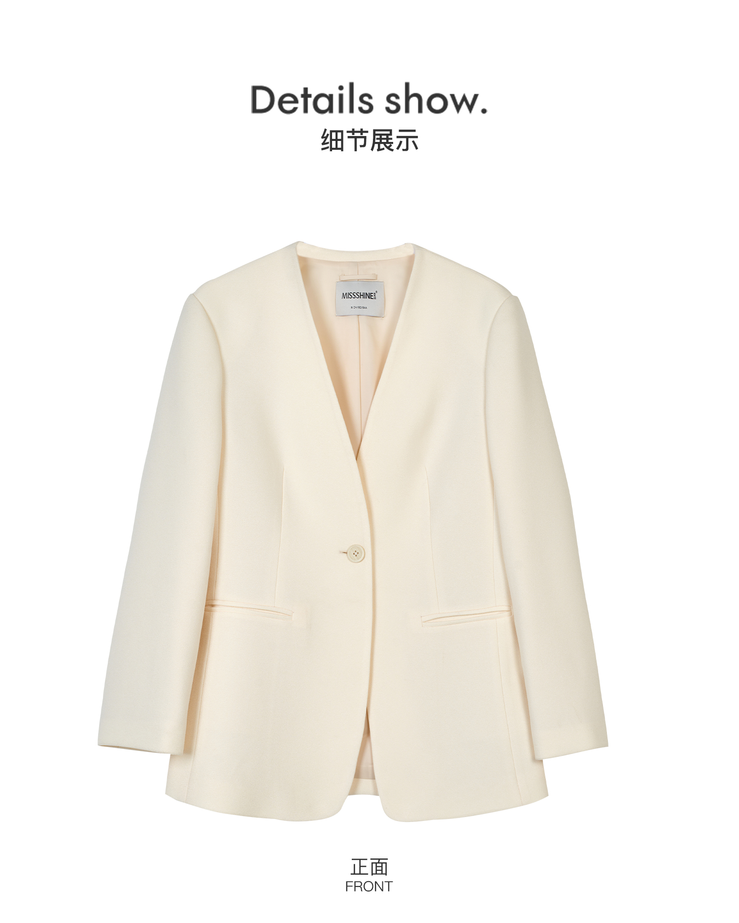 米思阳2026春季新款时尚无领通勤风西装高级感挺阔修身醋酸上衣女