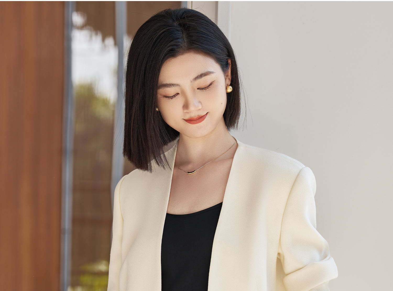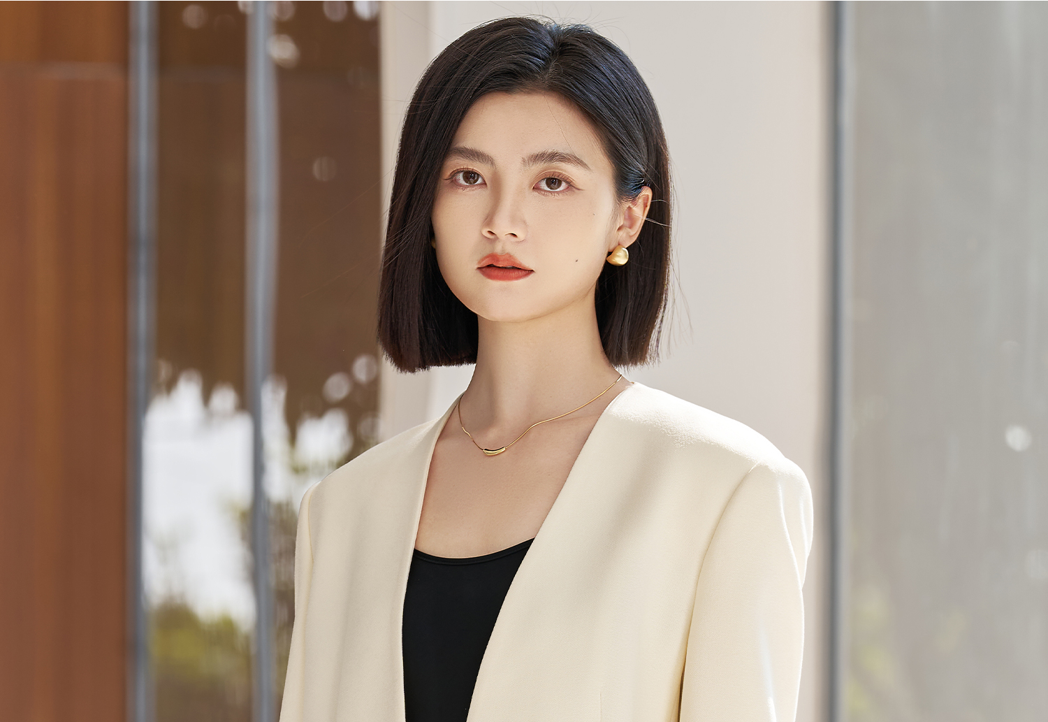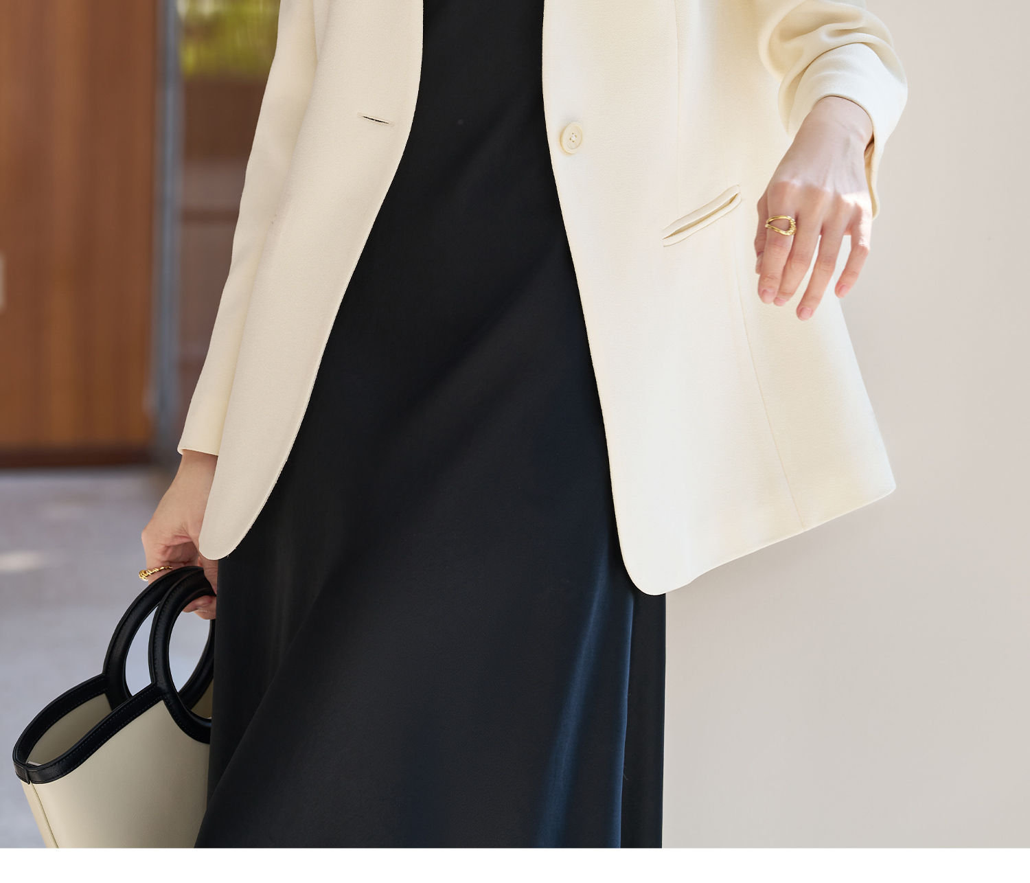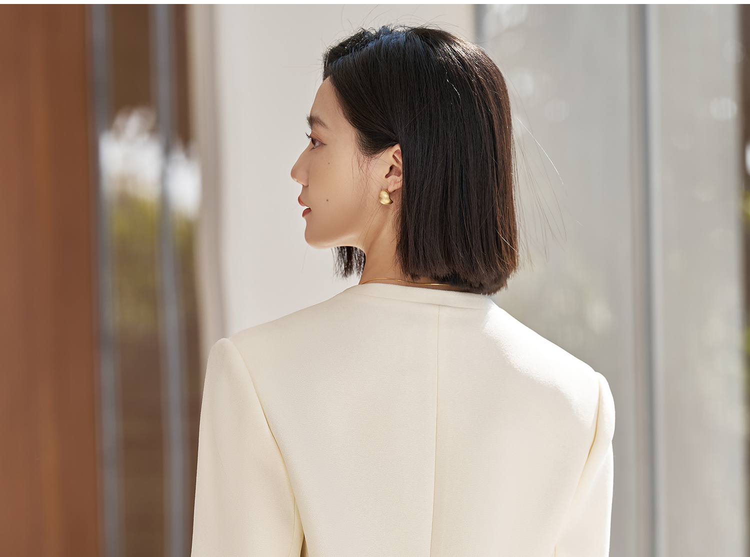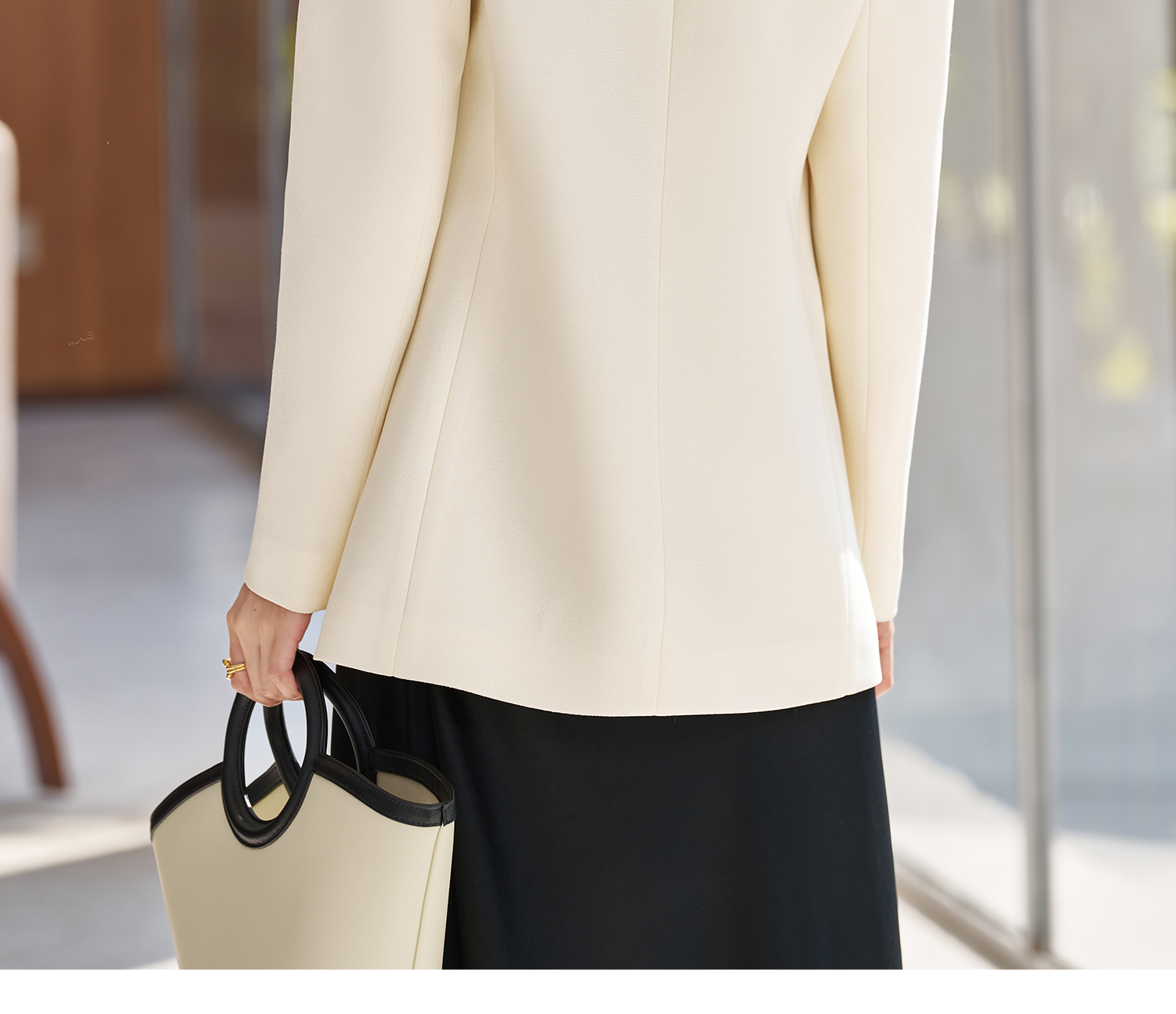 米思阳2026春季新款时尚无领通勤风西装高级感挺阔修身醋酸上衣女