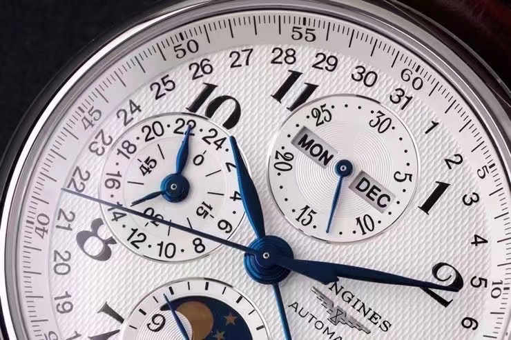 TW 台湾厂 浪琴名匠优雅系列 八针月相 42mm【大鹰月相】男表,官方型号L2.773.4.78.3(具体型号看颜色搭配),原装分解开模生产,全线按正品工序组装质检,42mm直径,316L精钢表壳,L678.2全自动机械计时机芯。处处彰显原装气质,给它一个专柜,它就是正品。1、字面:每个字丁都单独抄写开模,文字位置、字体大小、月份星期月相窗口和原装完全吻合。采用和原装一样的高端填油镀釉工艺,以确保字面的光泽色度一致,坚持字面就是门面理念,效果比原装有过而无不及。2、月相盘:进一步修正月相盘上的日月星辰,和原装一样的平整,大小一样。3、指针:复制原装指针工艺,烧钢蓝色指针。色泽和光泽一致。4、表壳:圈口、底盖、主壳分解开模,直径42mm、厚度14.5mm,与原装一致的规格,线条、倒角、横切面内胆拉沙都是人工精雕细琢+CNC,每个零件连螺丝、把头都单独QE质检,以彰显原装气质。5、机芯:采用7751改原装L678.2全自动机械计时机芯,每颗机芯单独QE调校质检,成表完成后再进行二次测试,力求将误差降到最低,稳定性提高。6、表带:钢带采用进口316L不锈精钢,CNC抛光抛平和背面拉丝,表扣和原装一样采用8+1弹簧按钮,表扣字体一模一样。7、镜面:正反都采用AAA蓝宝石防眩光高纯度高硬度镜面,防刮更通透。⚠️请认准独家品质