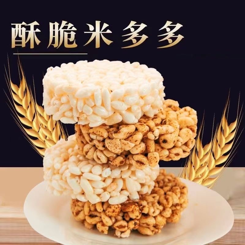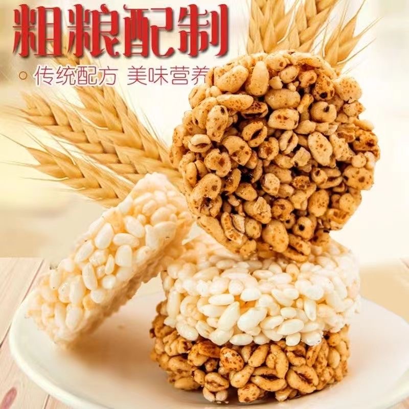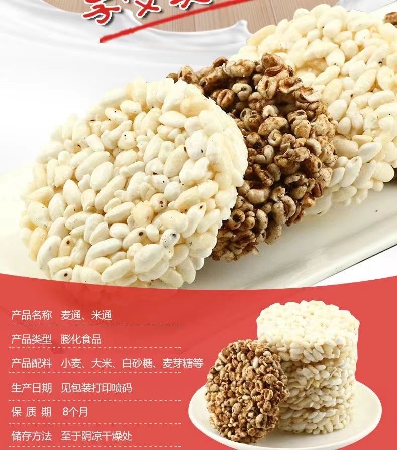 【青稞米麦通!米多多】老式爆米花健康粗粮通米饼膨化食品雪米通饼香米通300克/盒80后怀旧休闲零食