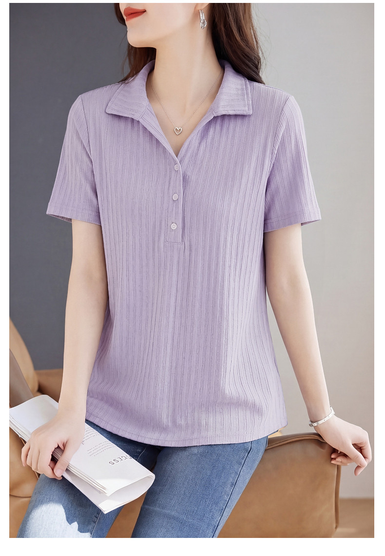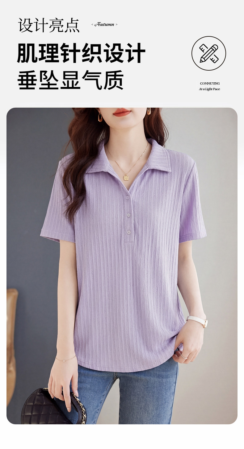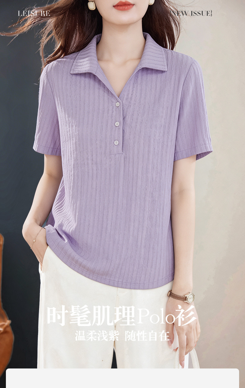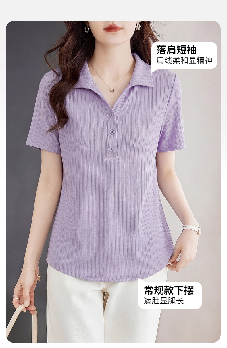 Polo领短袖t恤女夏季新款胖mm大码显瘦遮肉气质宽松女士翻领上衣