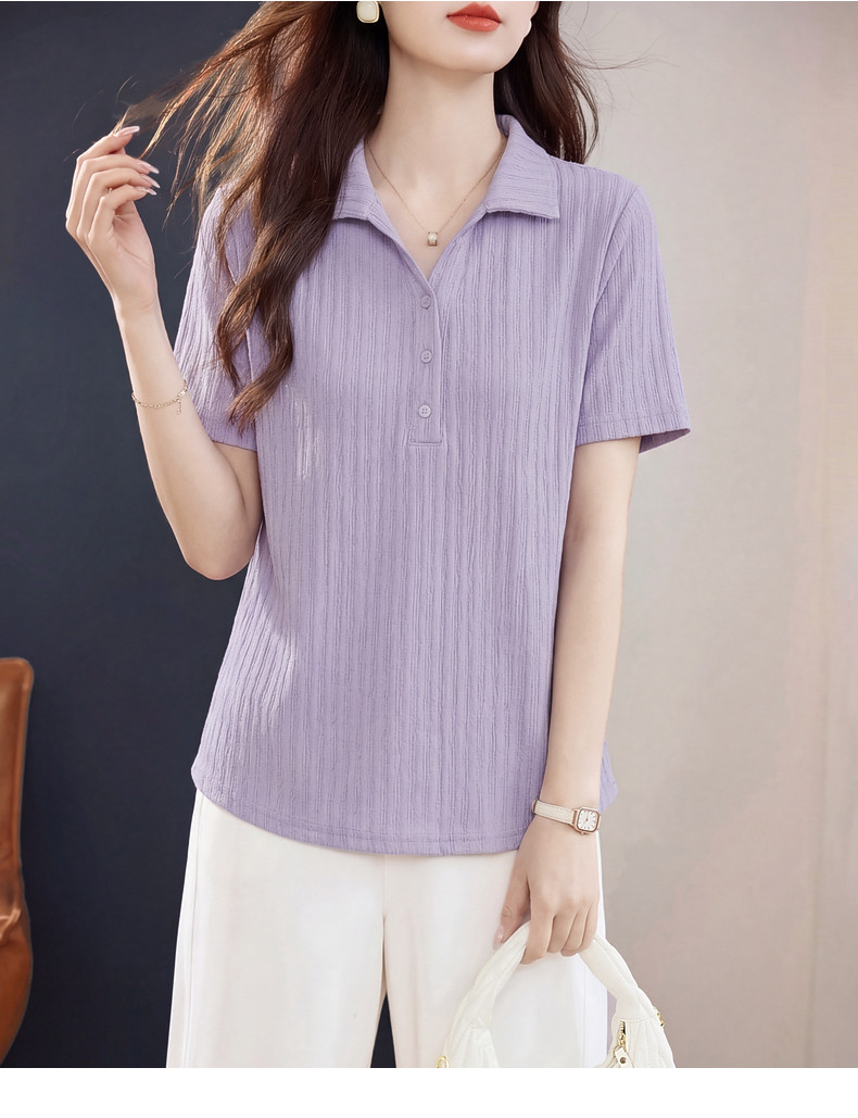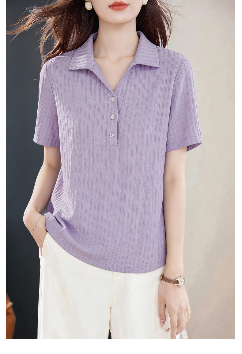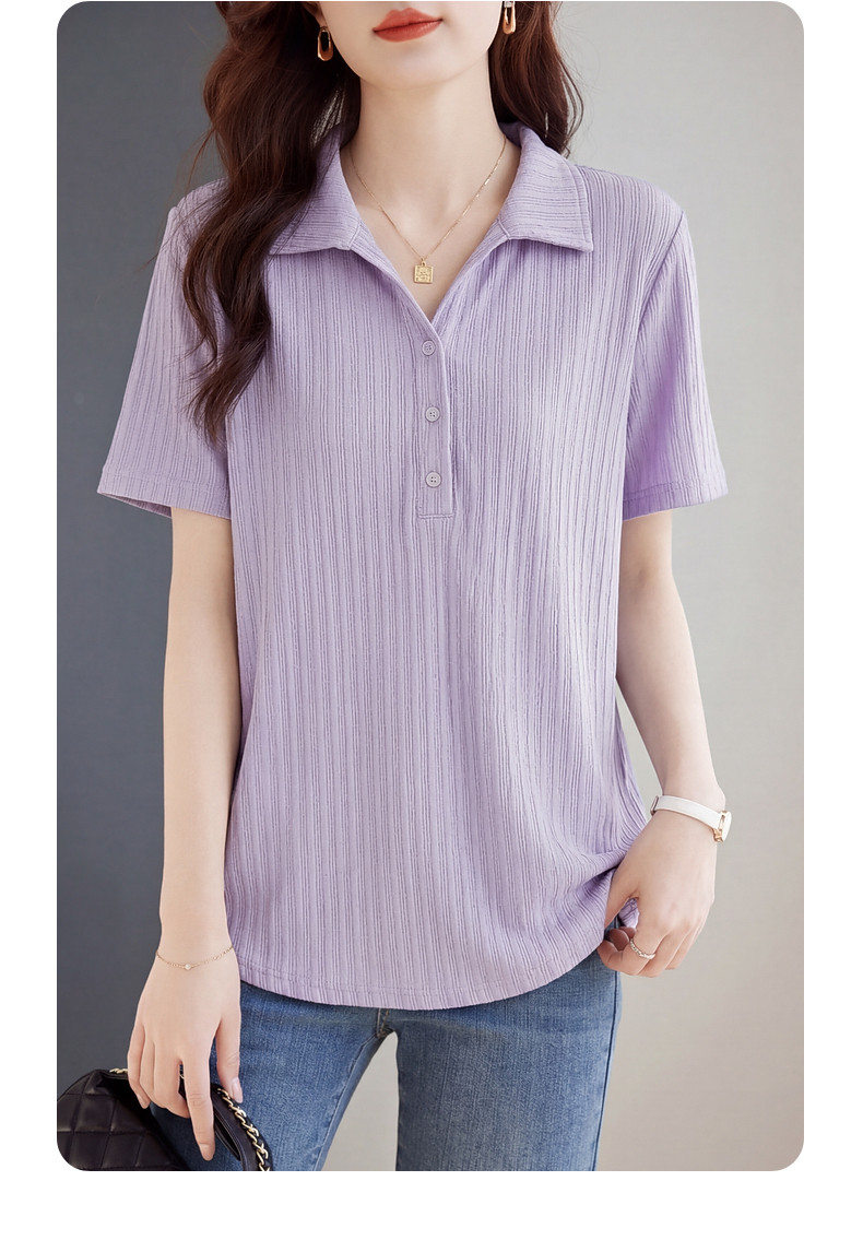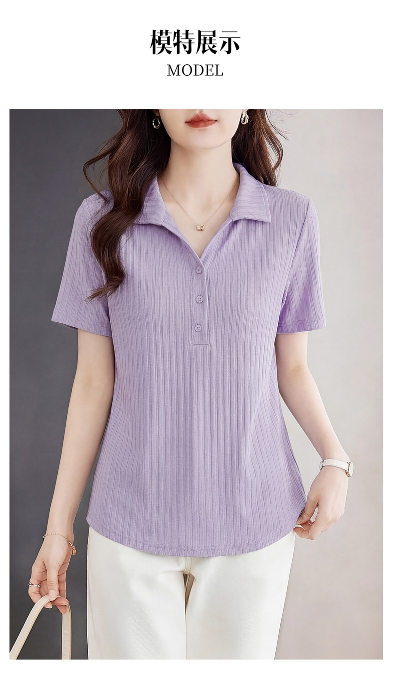 Polo领短袖t恤女夏季新款胖mm大码显瘦遮肉气质宽松女士翻领上衣