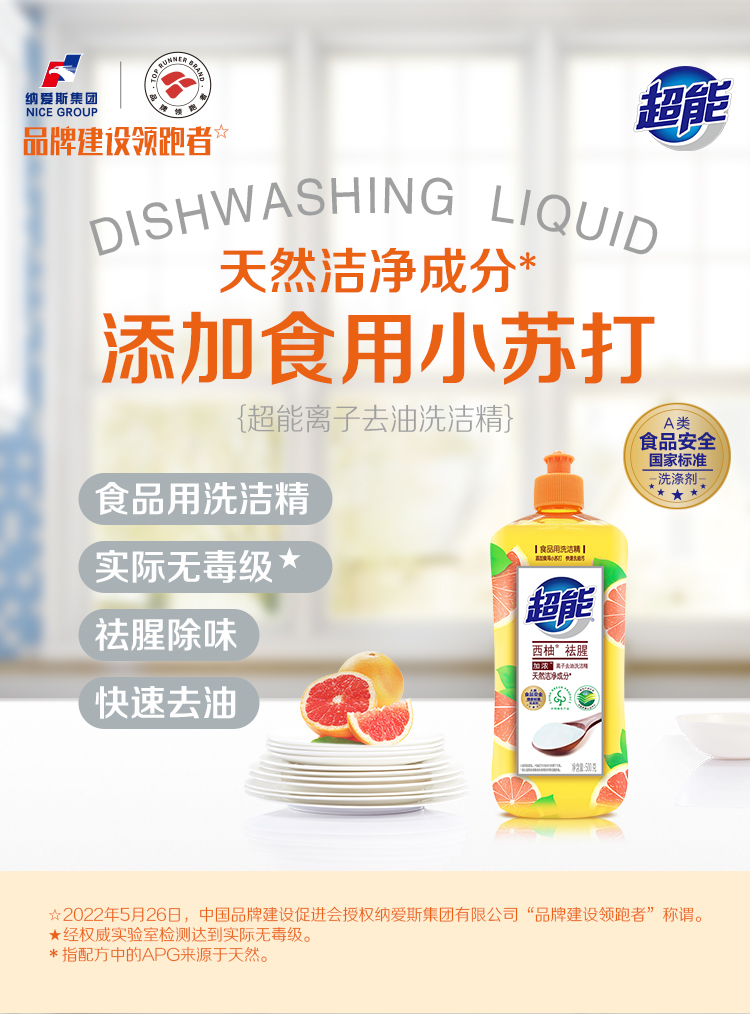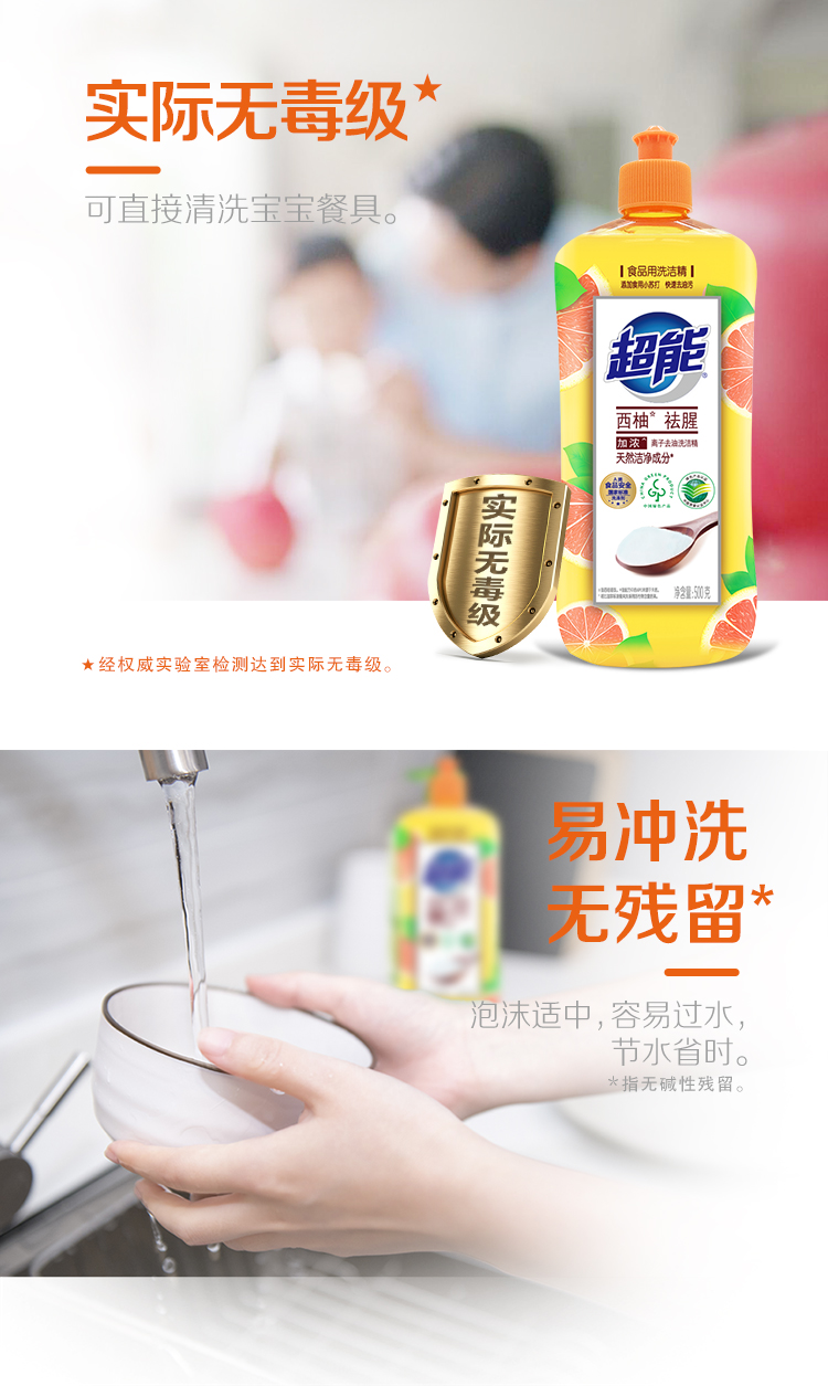 超能离子洗洁精西柚祛腥500g*2