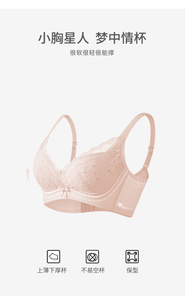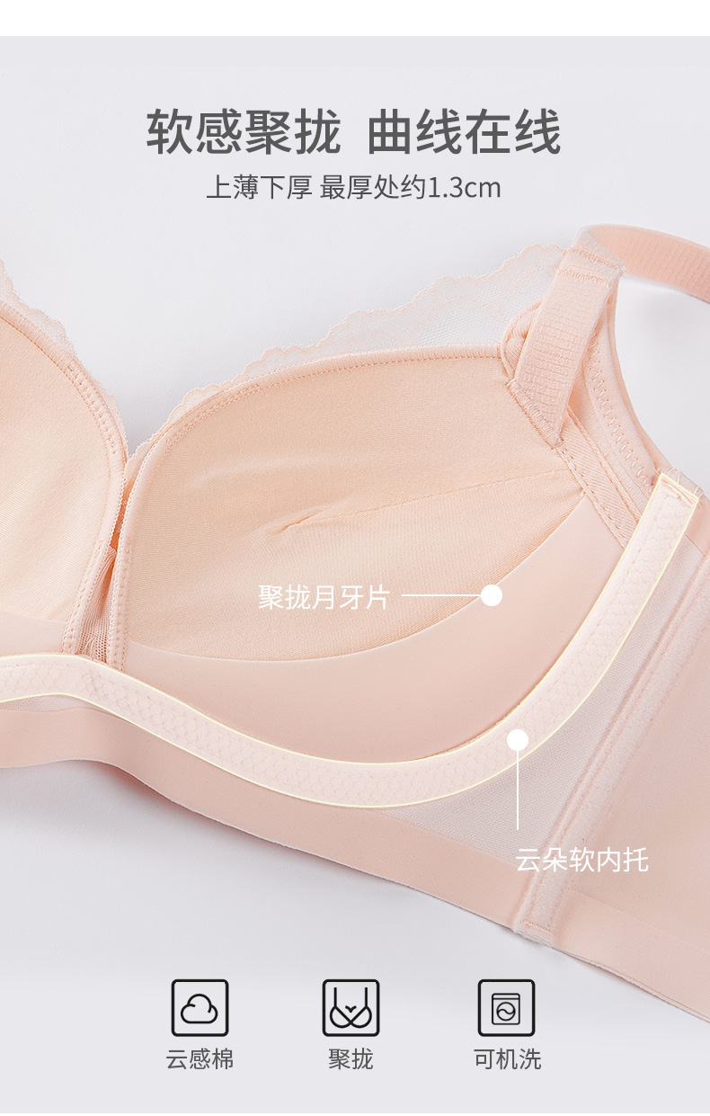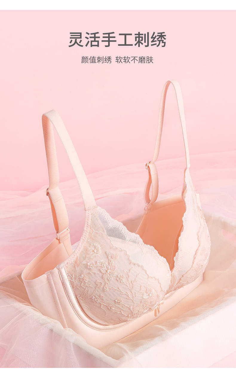 熳洁儿 小胸聚拢文胸刺绣蕾丝云朵软内托透气收副乳稳固不跑杯23261523