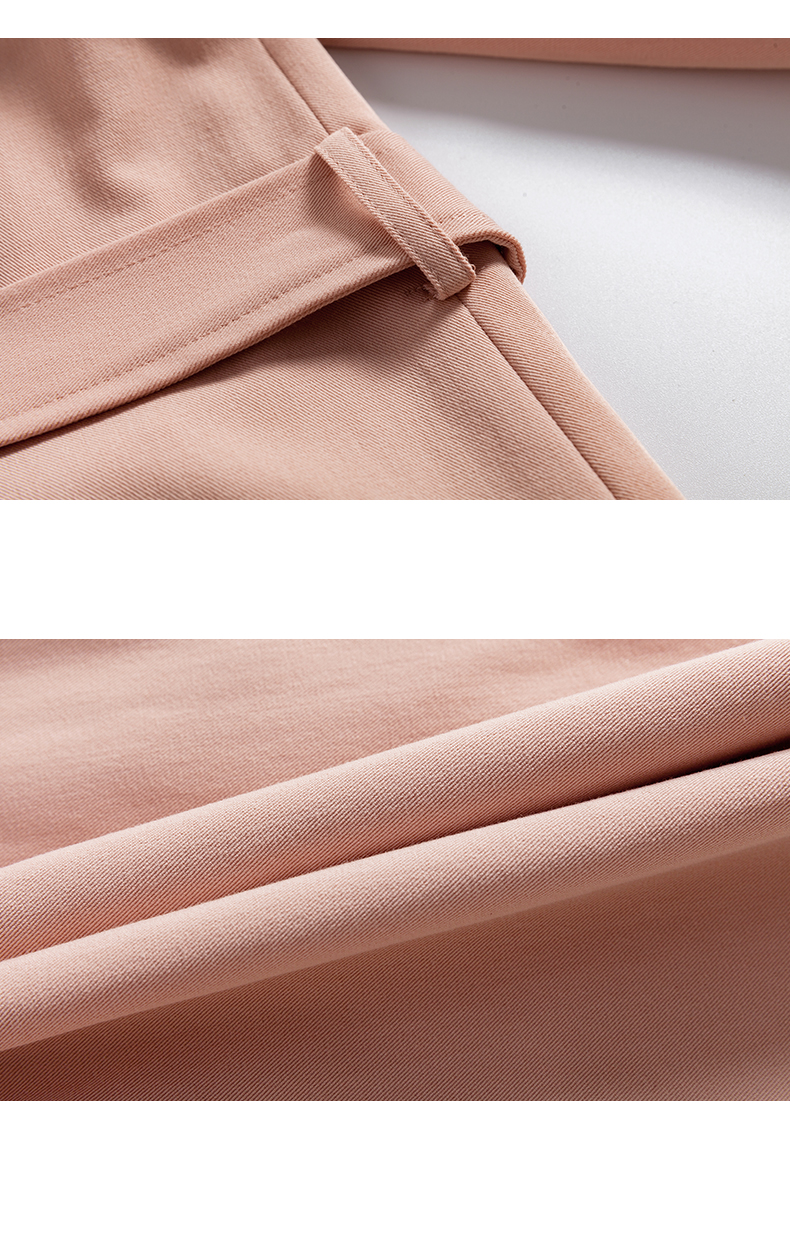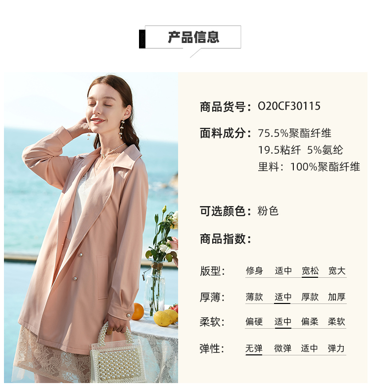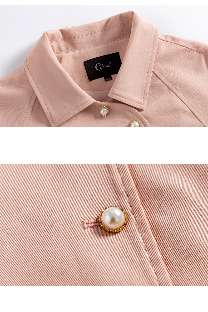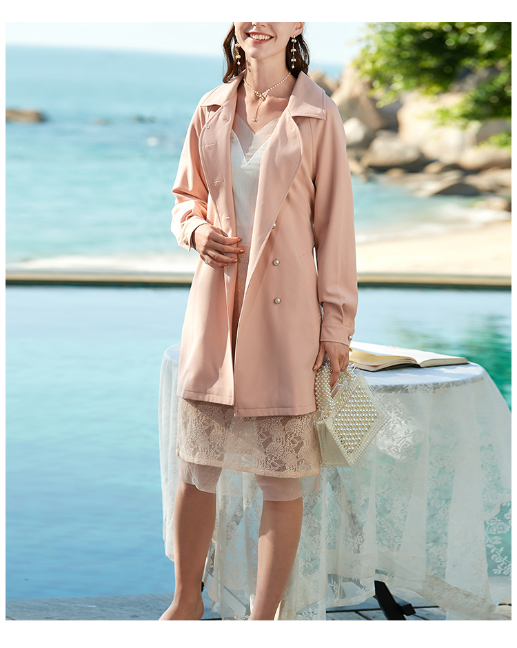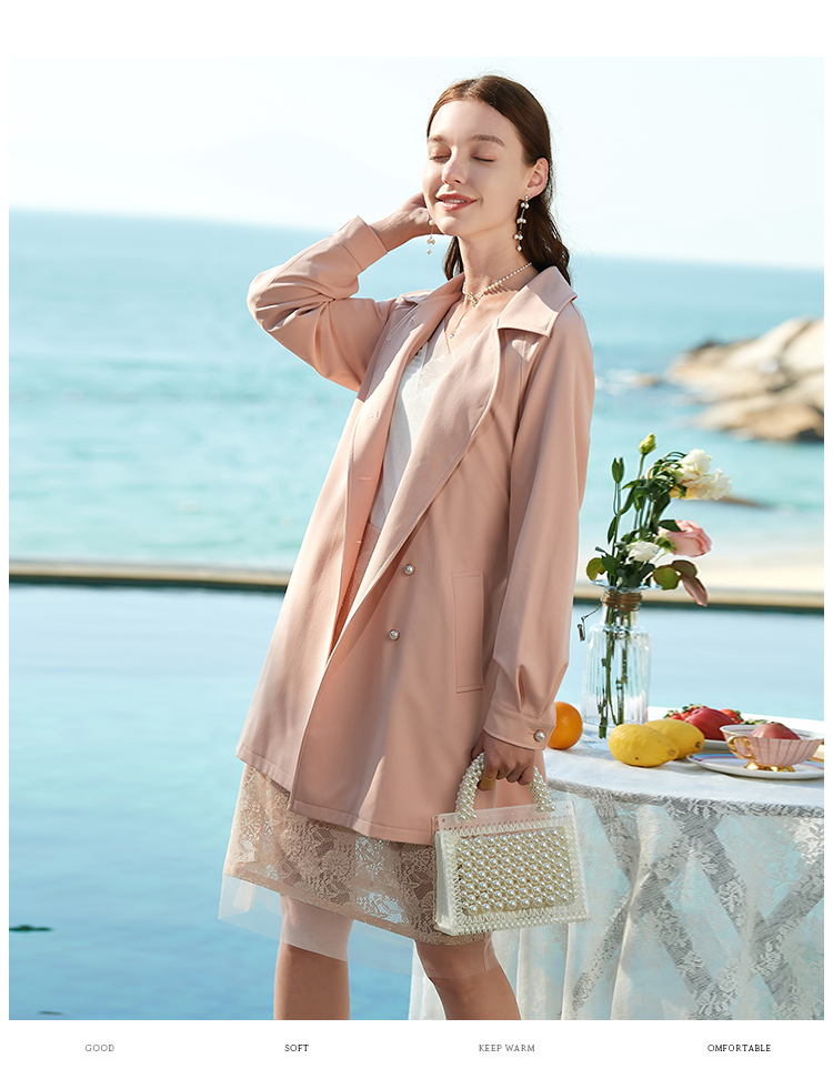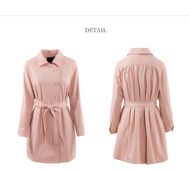 欧芮儿春夏新款长袖系带收腰风衣女中长款显瘦珍珠扣外套
