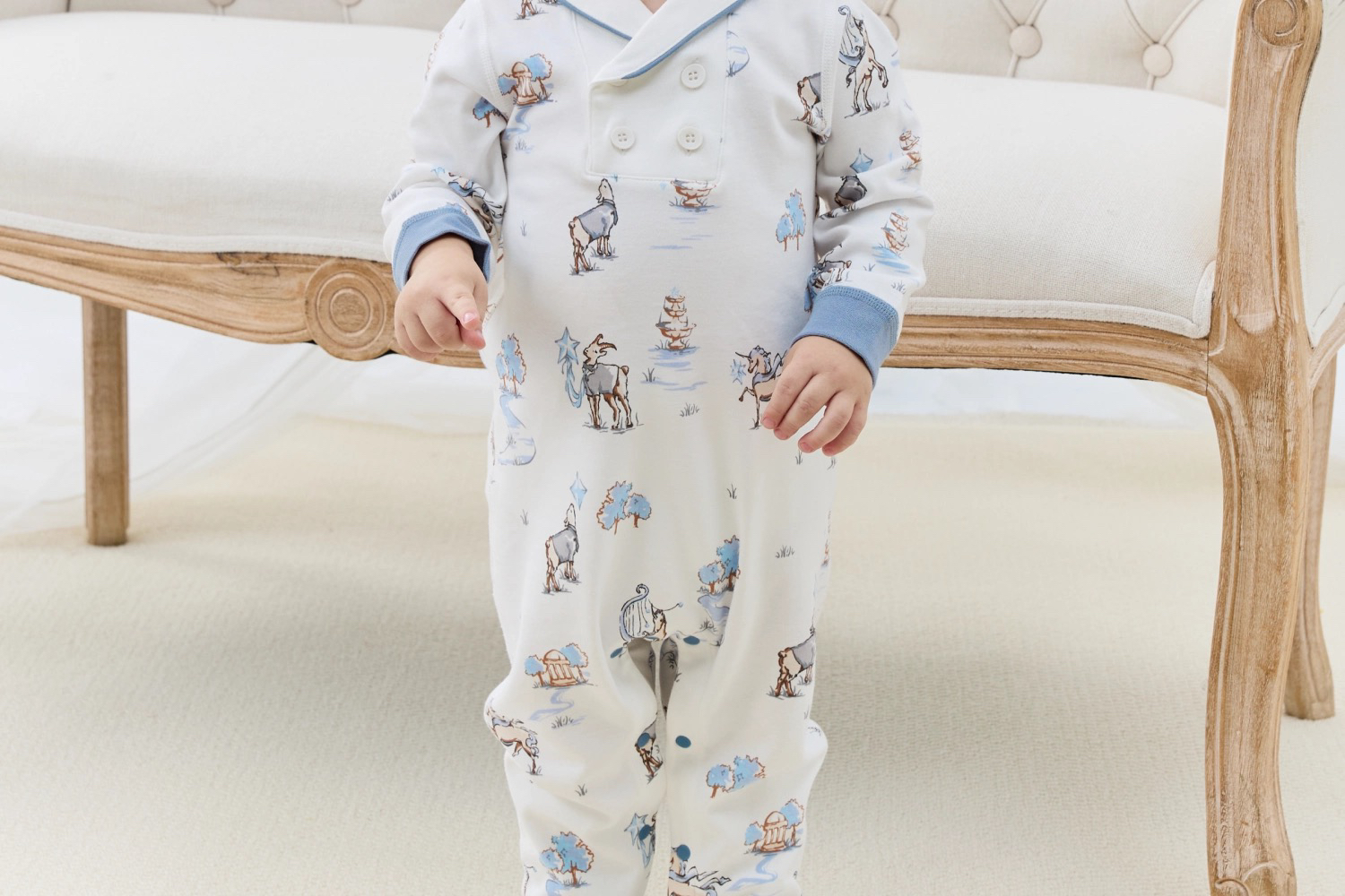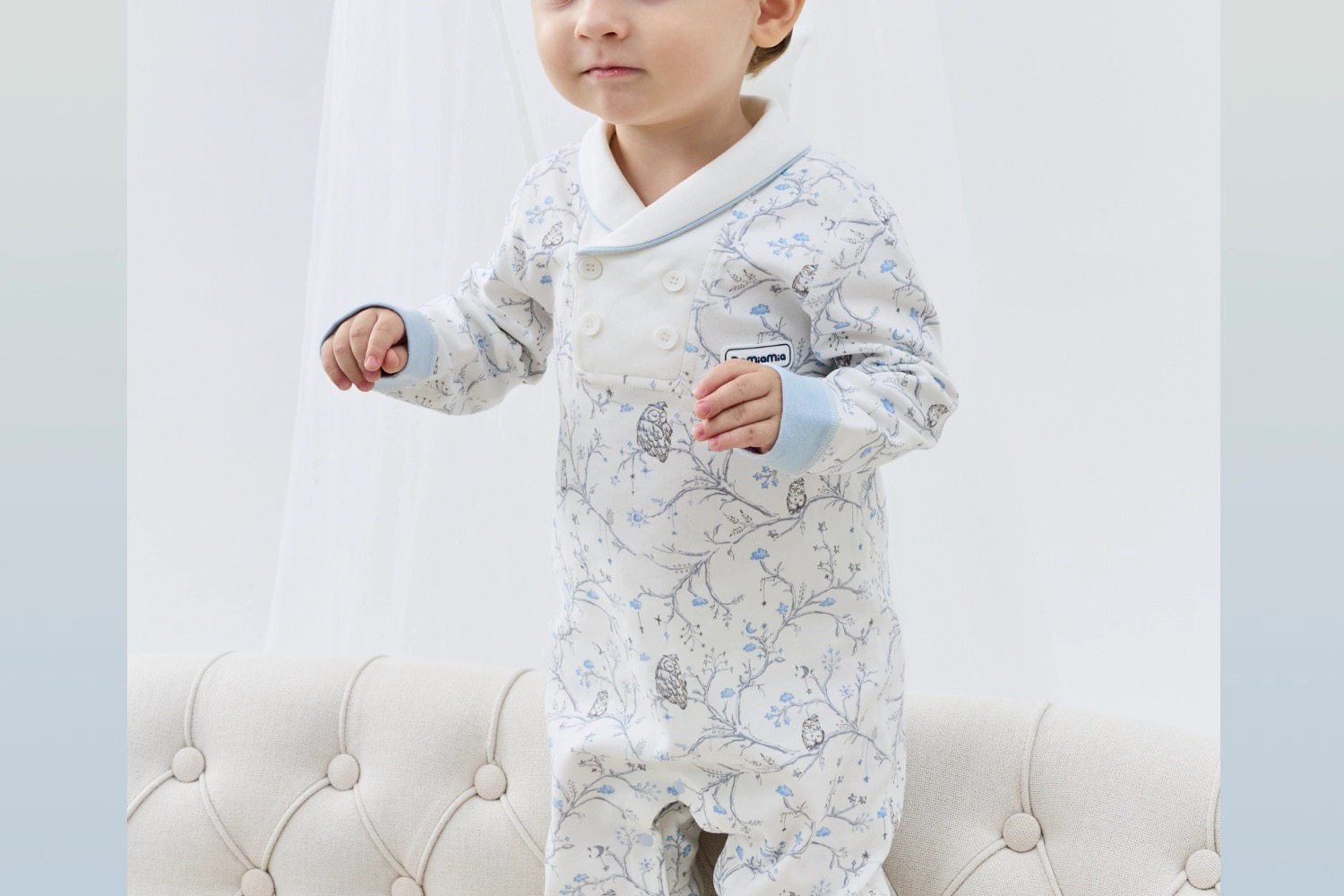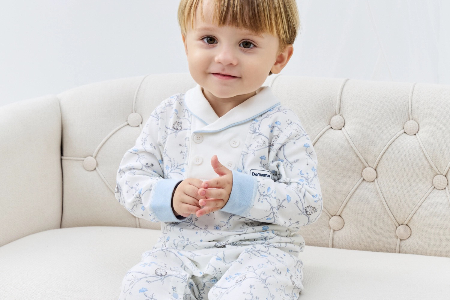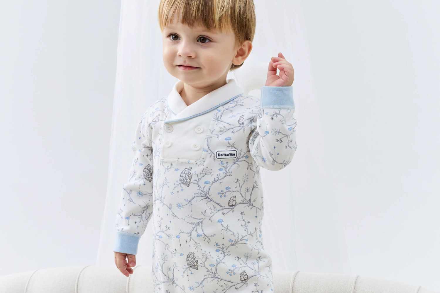 Domiamia 男宝宝针织长袖翻领爬服 纯棉春秋款小月龄爬服
