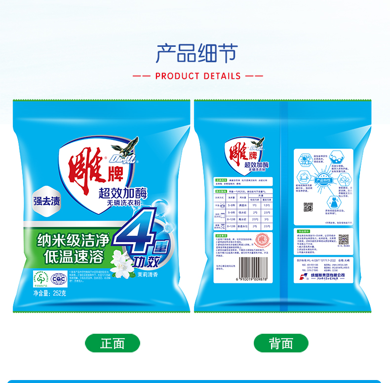 雕牌超效加酶洗衣粉252g*2袋