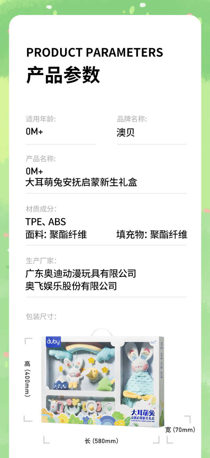 【澳贝】大耳萌兔安抚启蒙新生礼盒