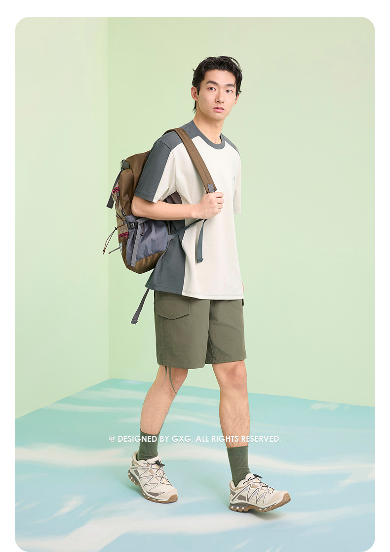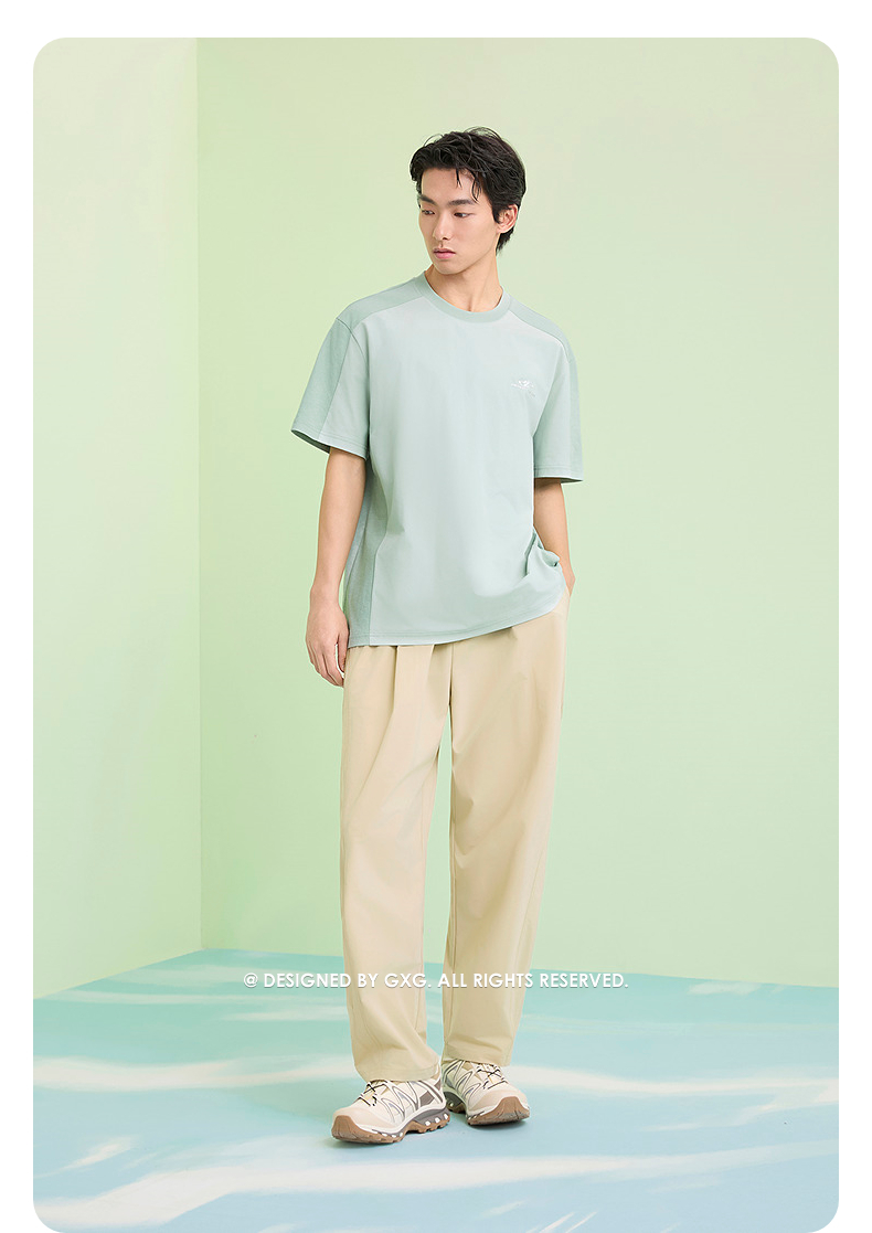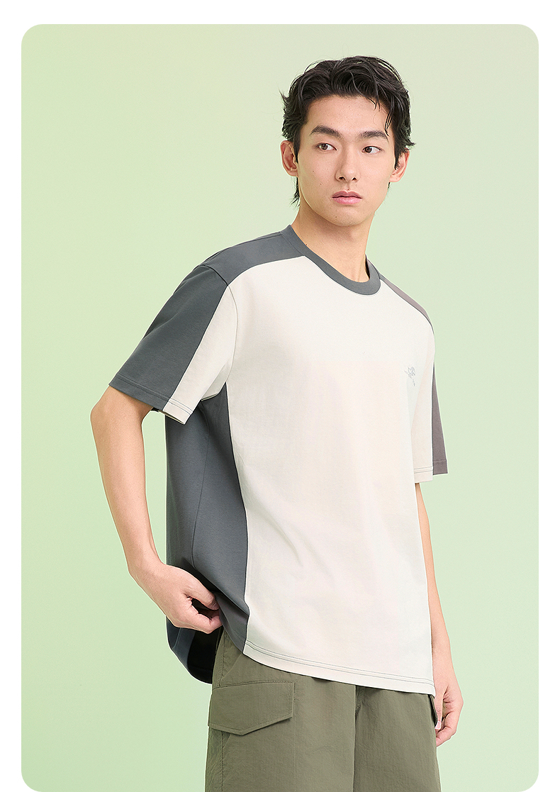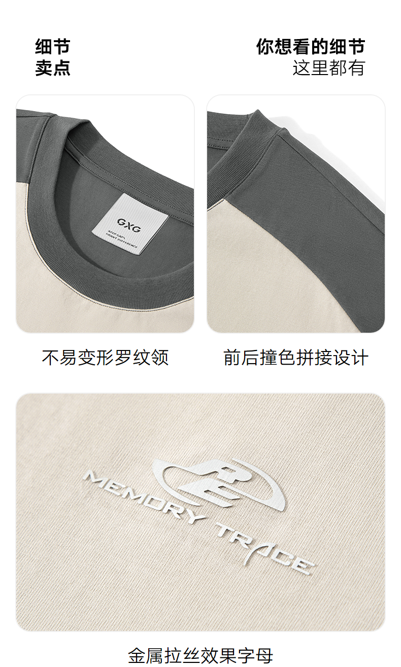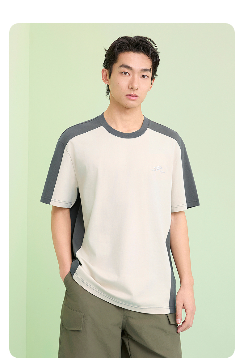 GXG男装 圆领T恤撞色拼接上衣短袖针织 2025夏季新品
