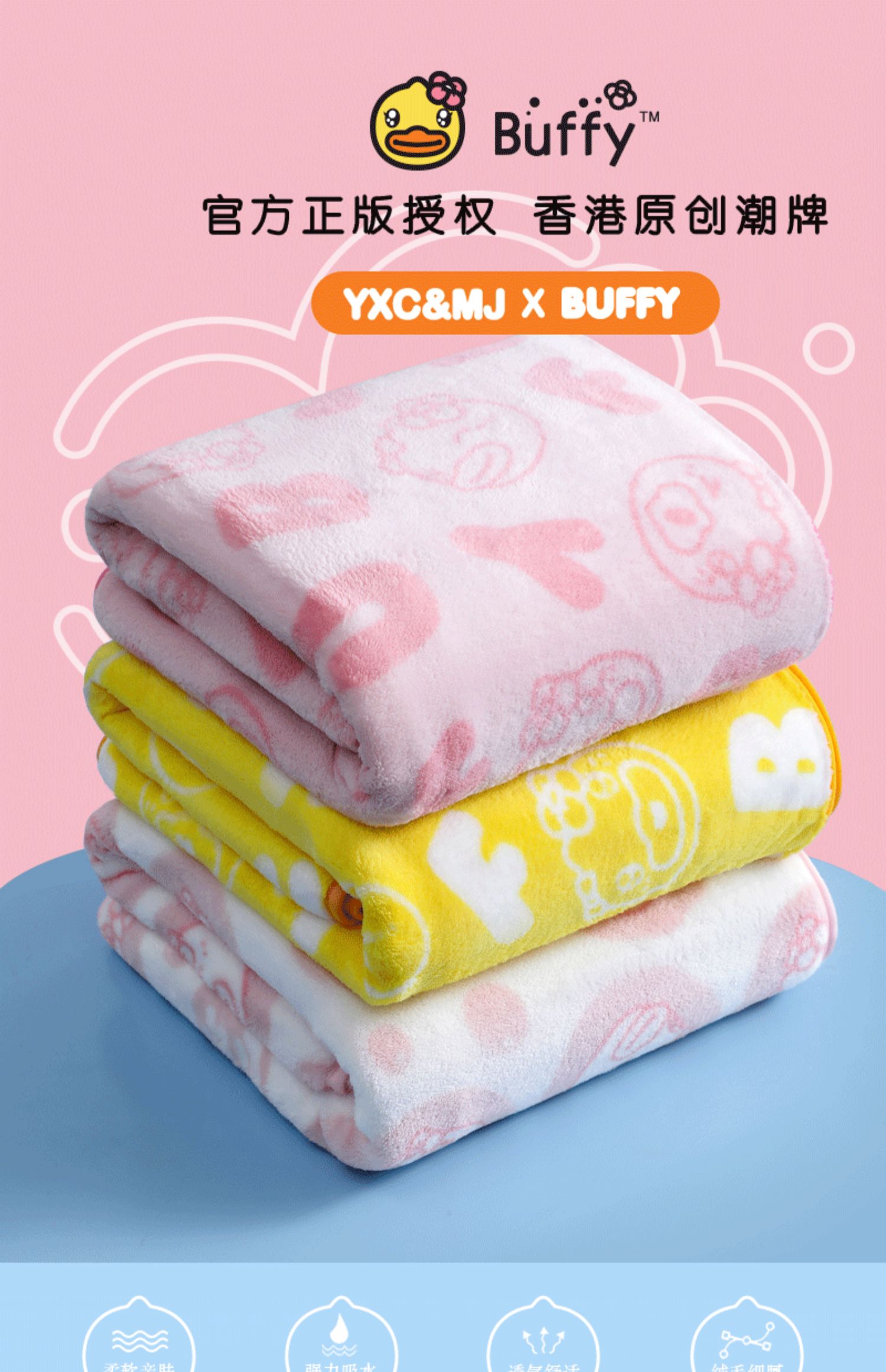 小黄鸭Buffy珊瑚绒大毛巾浴巾女比纯棉吸水大人家用加厚速干裹巾