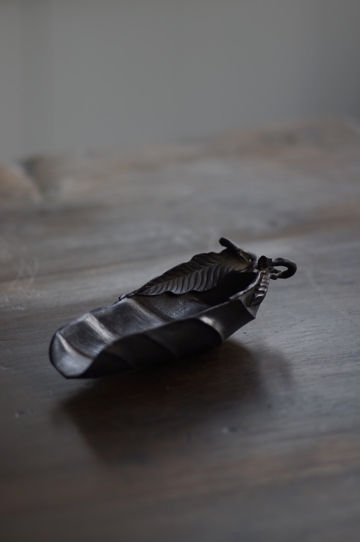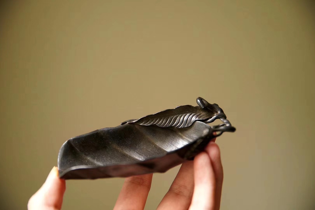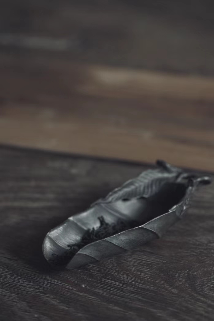 乾茂号造|树叶古锡茶则 规格:长10.6cm 宽4.5cm 高2cm