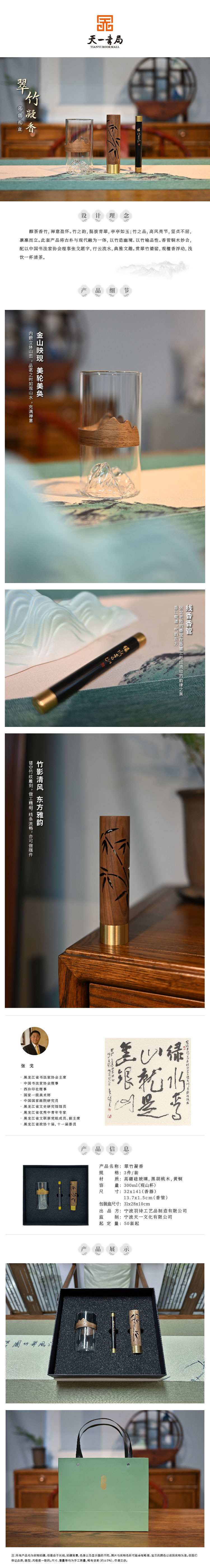 羽诗制造出品 翠竹凝香观山杯铜木熏香器香管礼盒套装