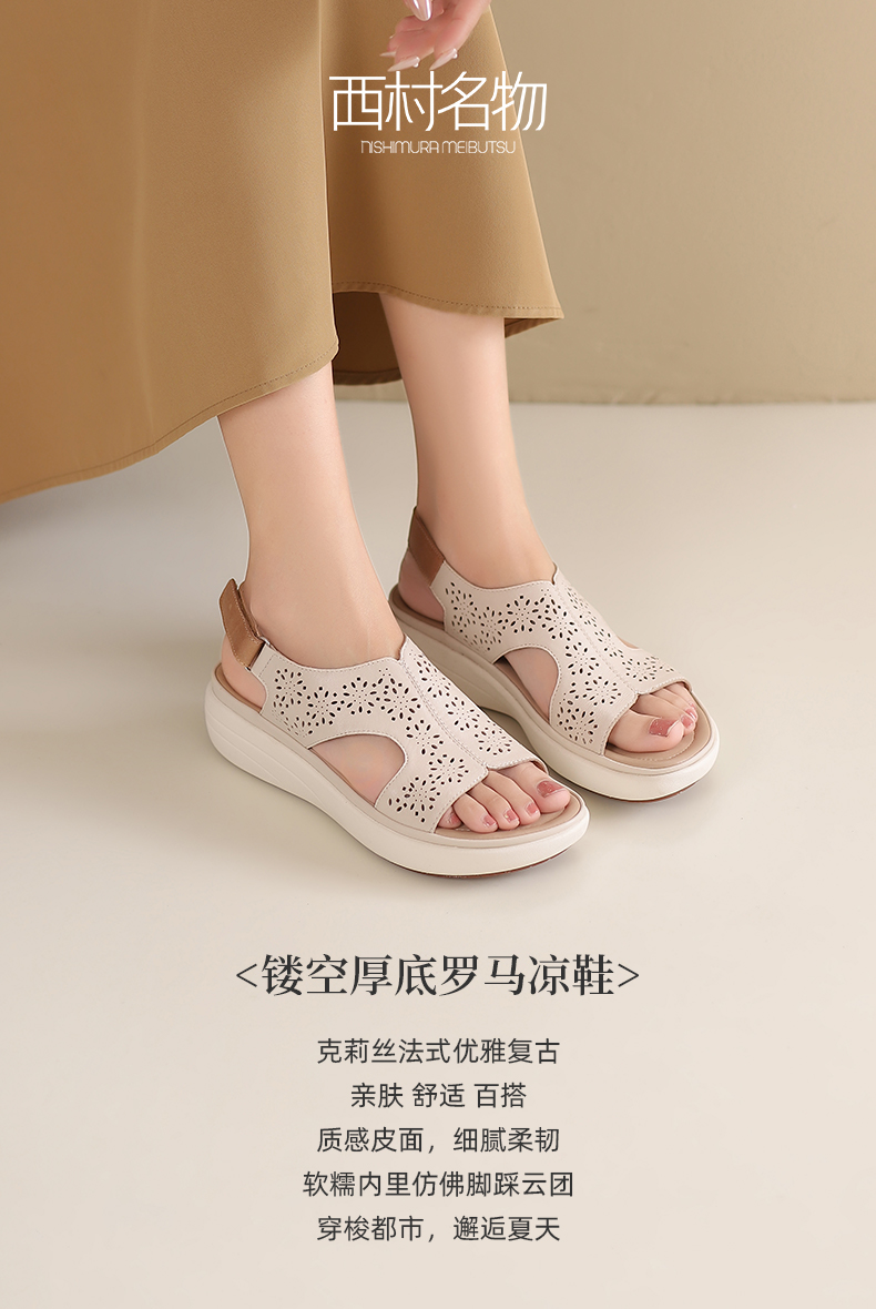 西村名物2024新品真皮精致经典休闲日常高级厚底罗马凉鞋夏季外穿