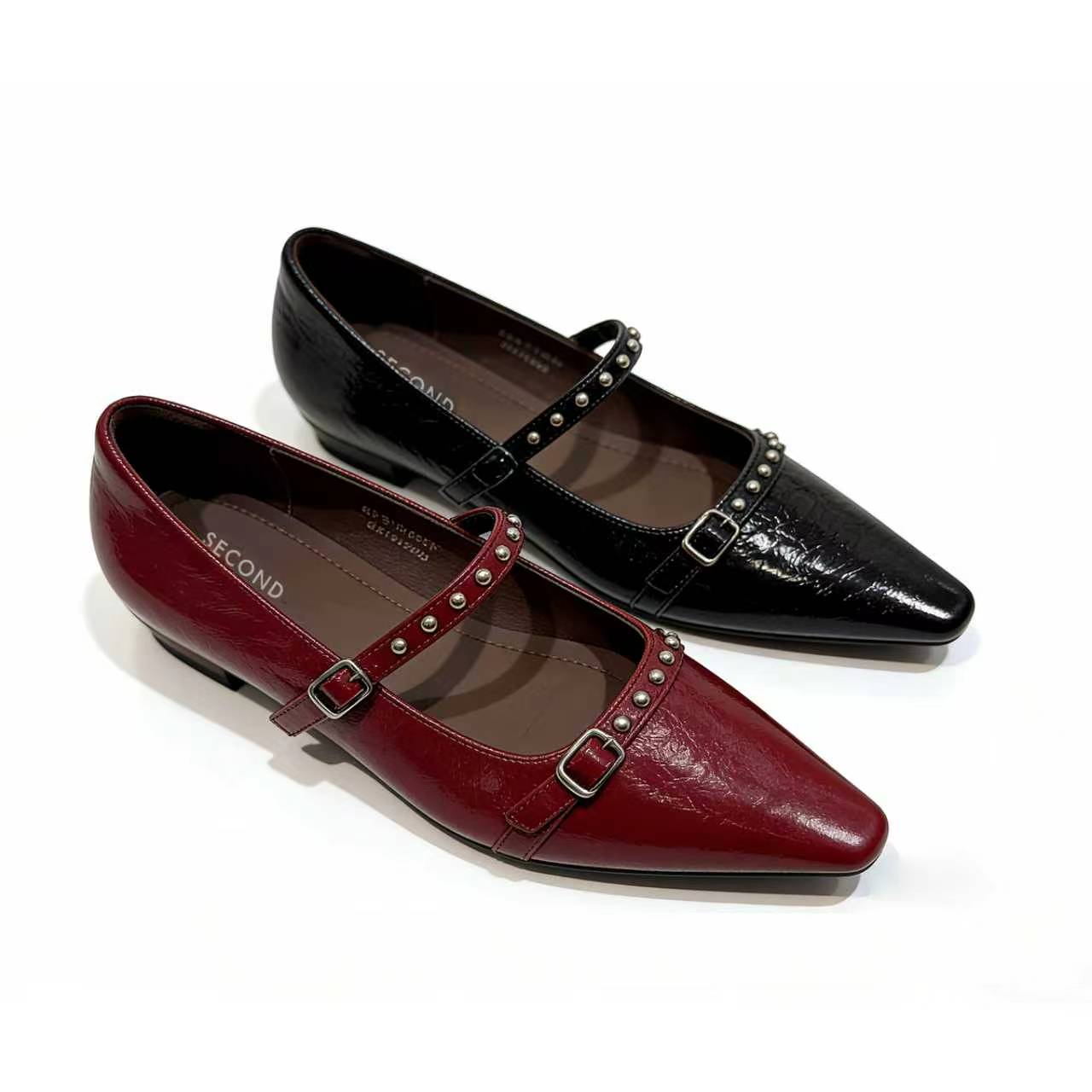 【牛皮革】西村名物2026年春季新款羊皮内里内垫舒适低跟纯色玛丽珍时尚浅口单鞋U26AE17291