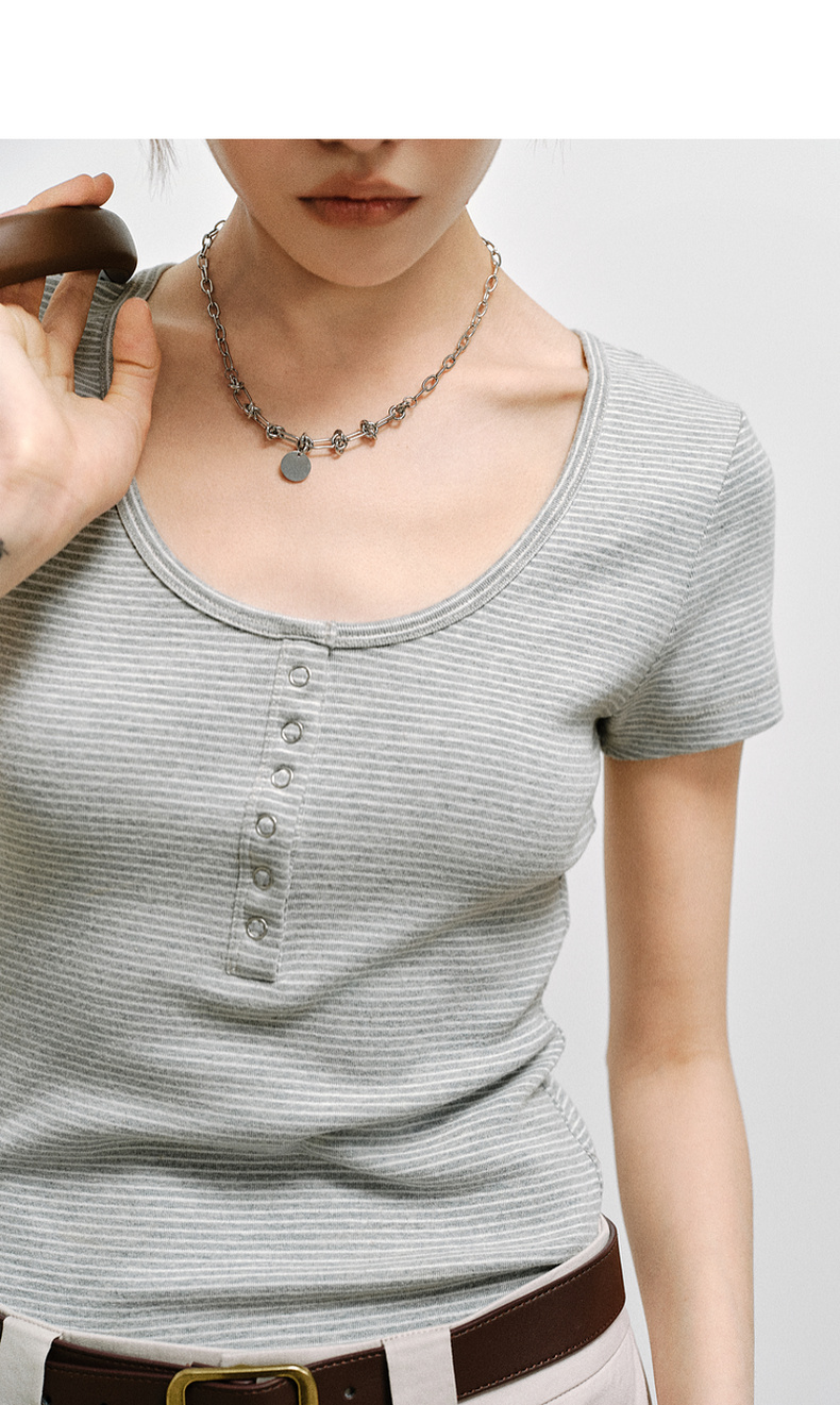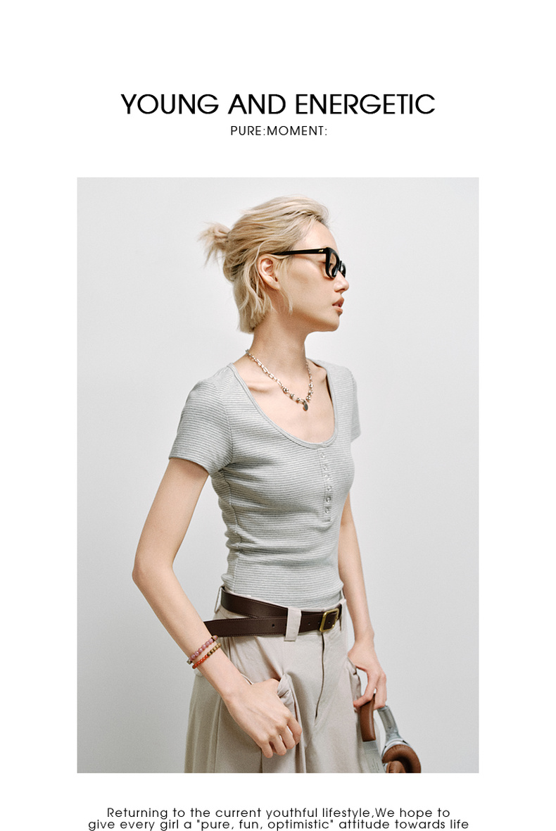 【商场同款】麦檬夏U型领修身显瘦T恤4G5201531