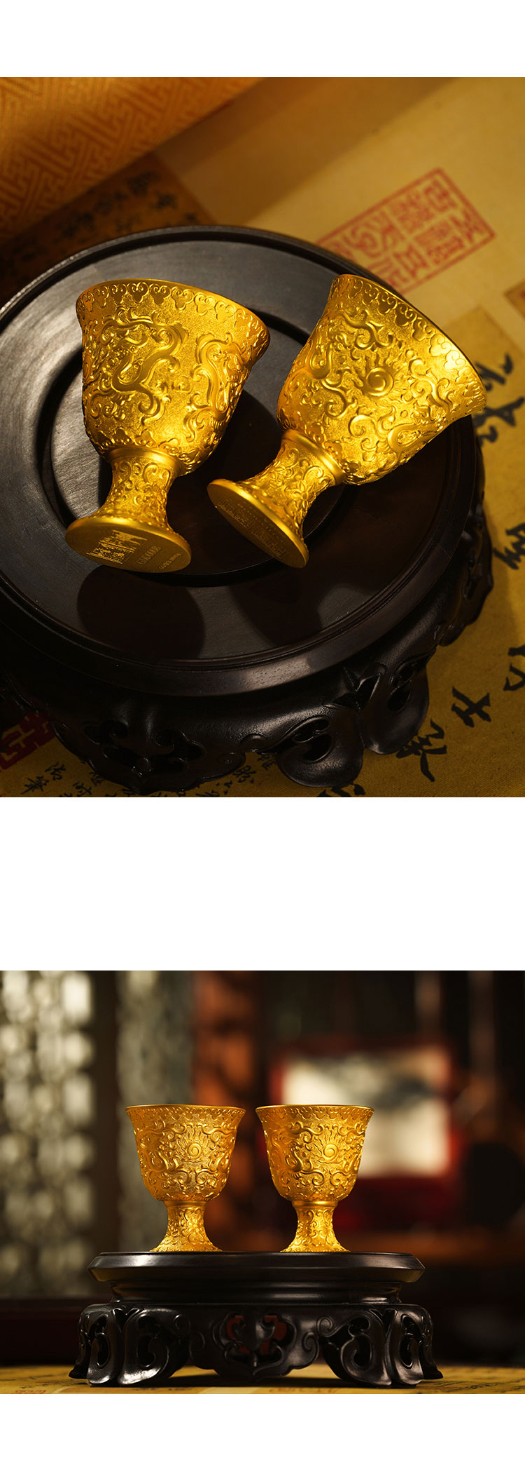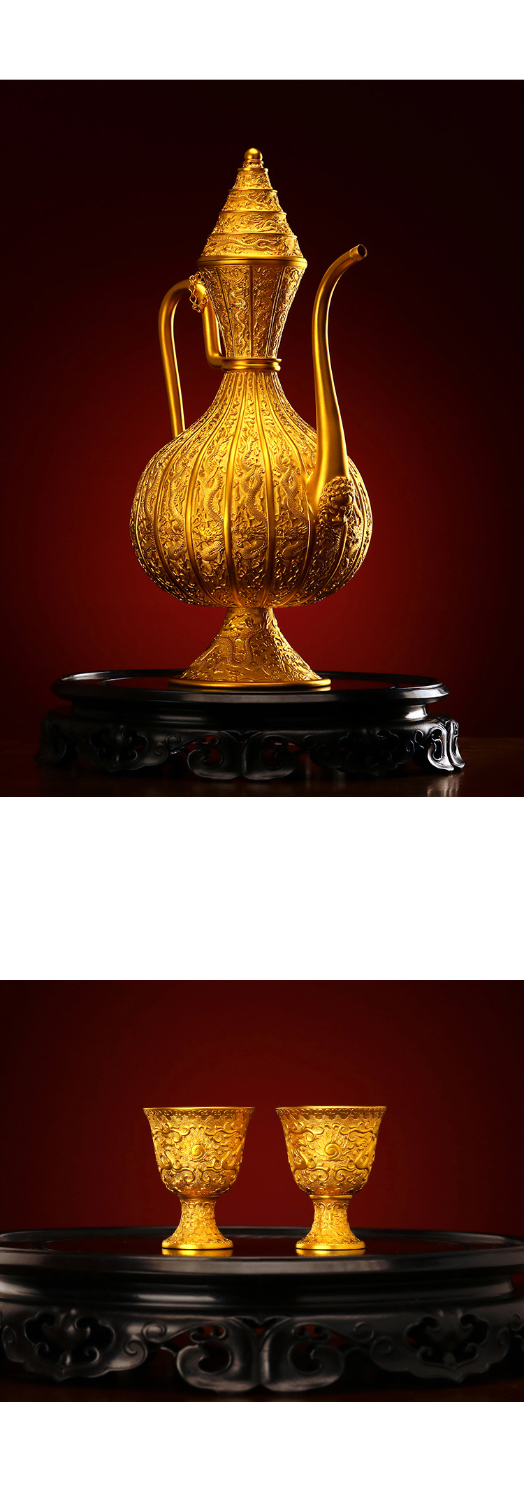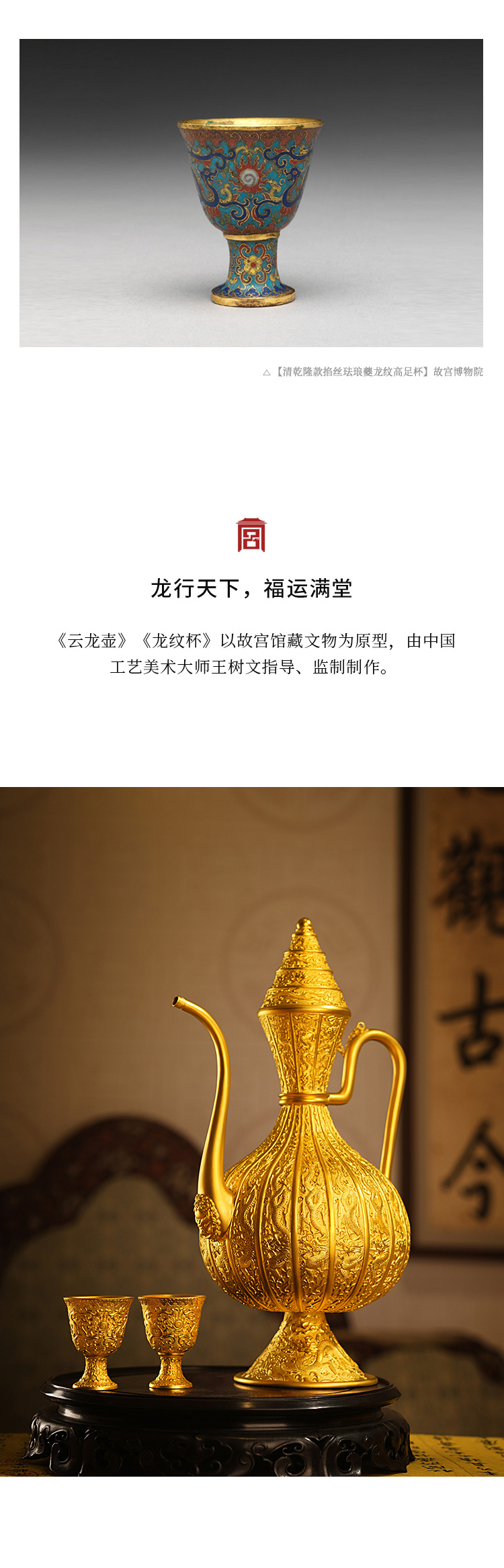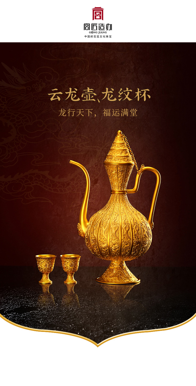 宫匠造办 宫匠金典大师系列 云龙壶龙纹杯黄金摆件