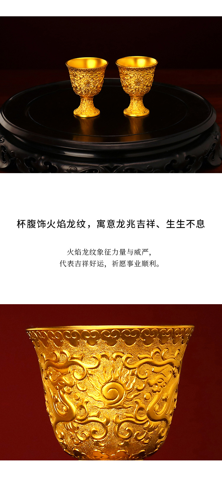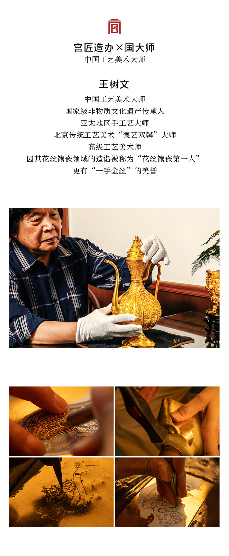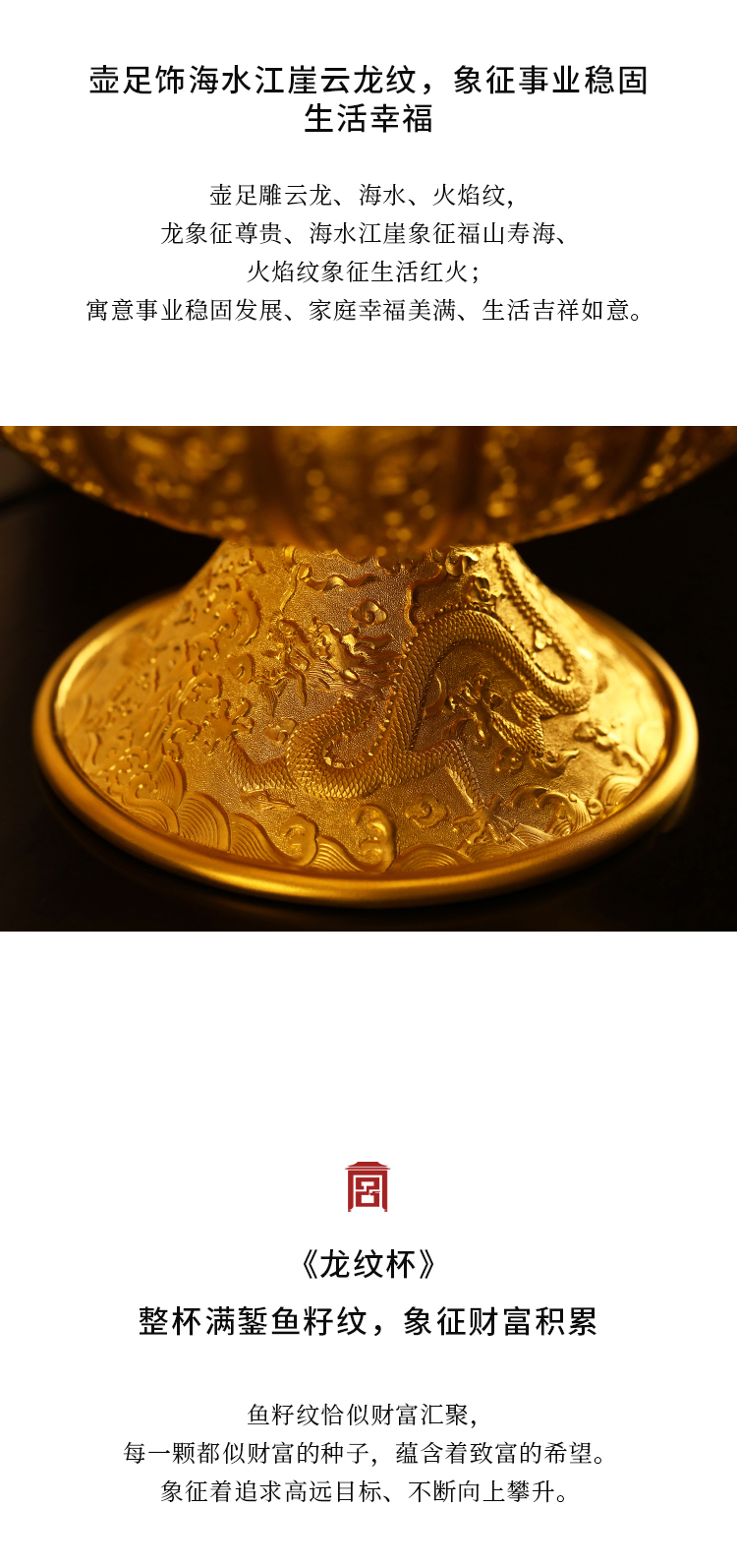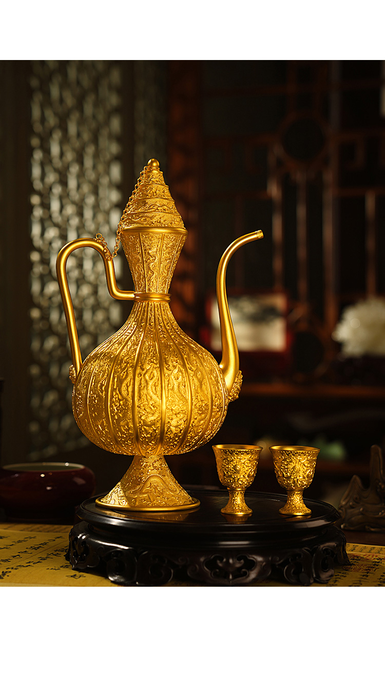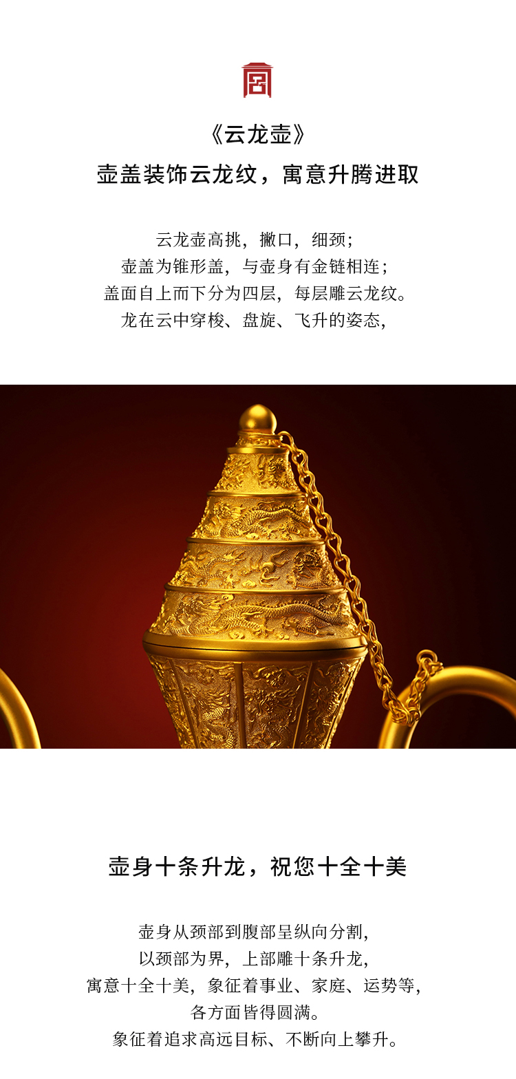 宫匠造办 宫匠金典大师系列 云龙壶龙纹杯黄金摆件