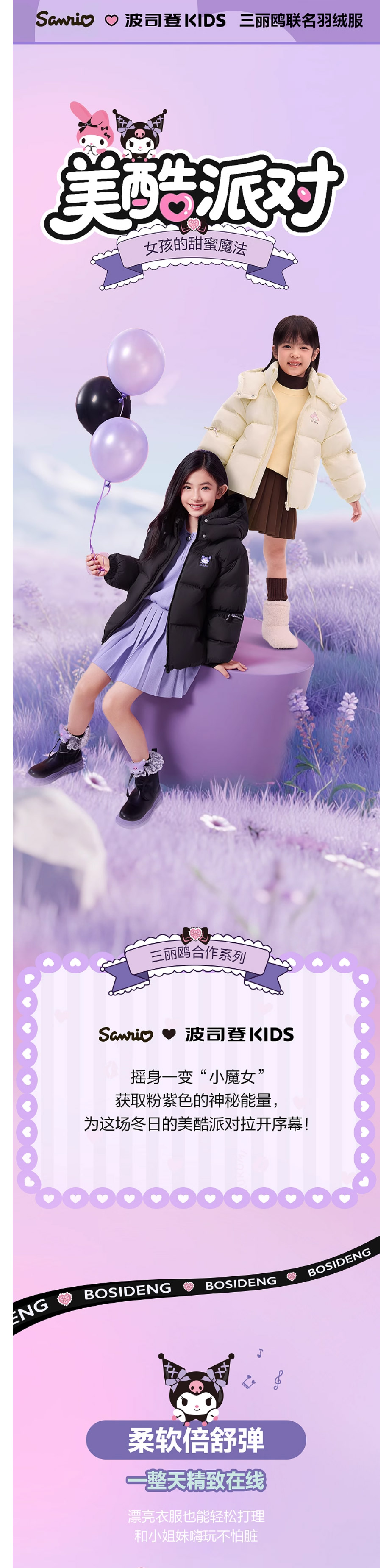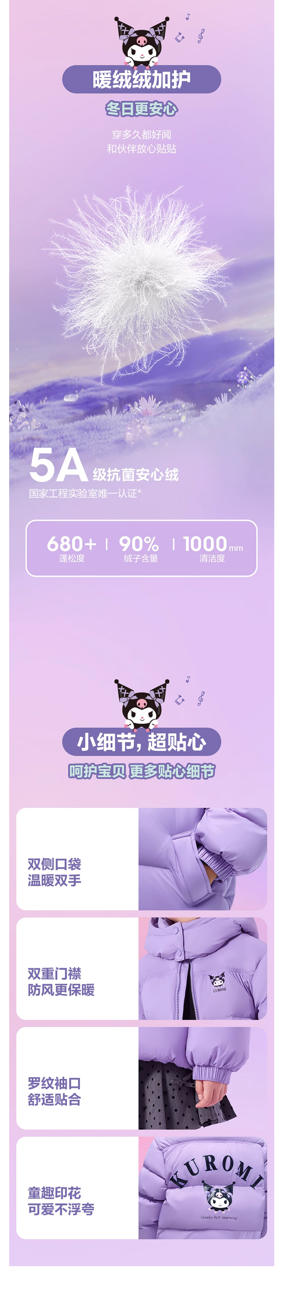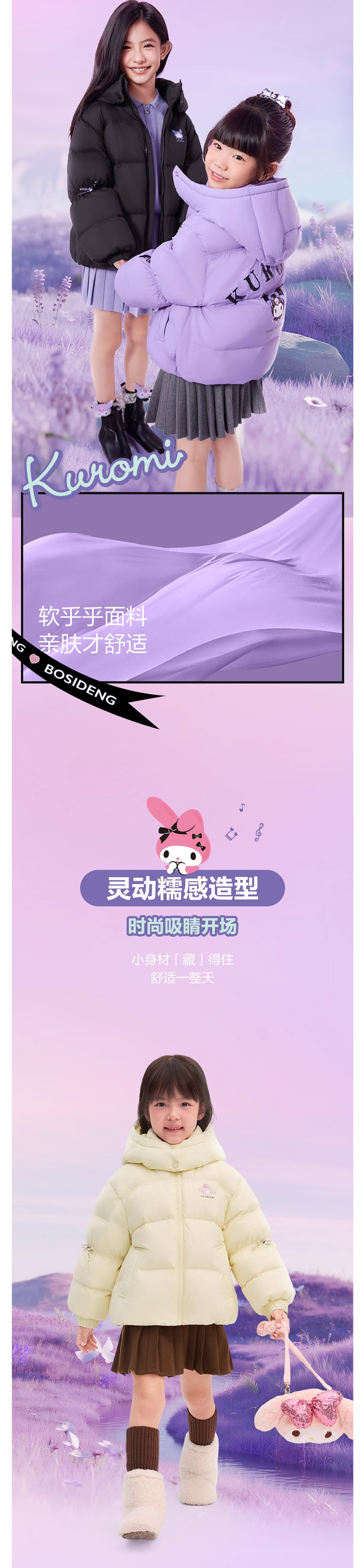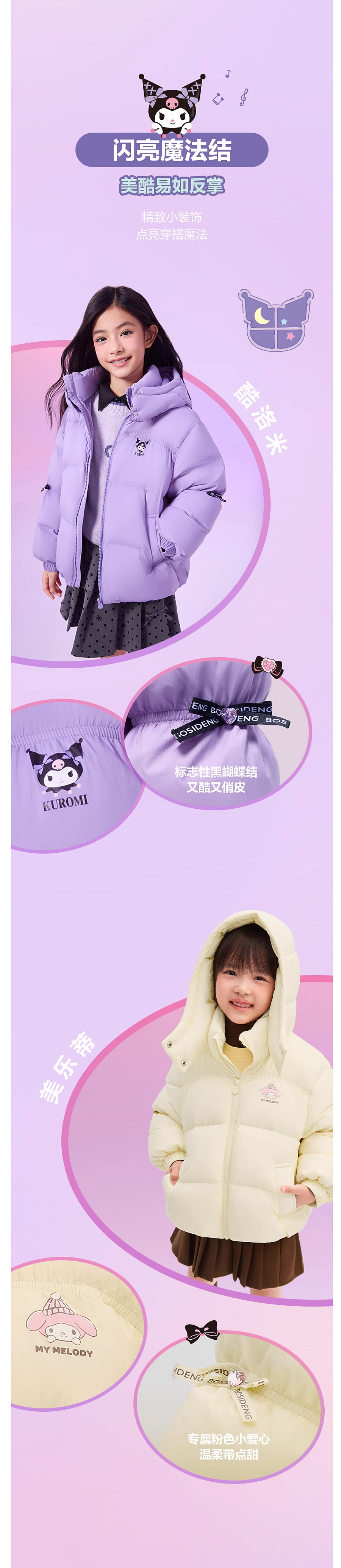 波司登25冬新款三丽鸥联名短款连帽儿童羽绒服女童T250246312I