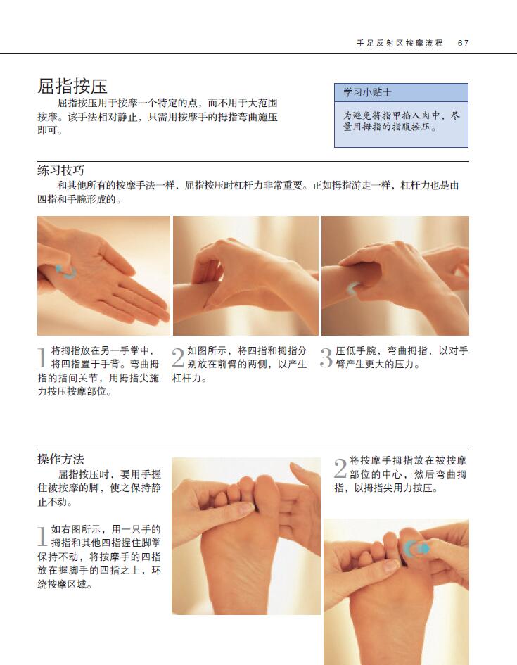 本书是一本比较实用的针对手足按摩的图书。书稿共分为五部分,分别从手足按摩的历史、益处、日常护理、按摩流程和常见病症的按摩进行讲述。配图丰富,包括各种按摩手法如屈指按压、滚动、翻转、摇动等,常见病如头疼、便秘、肩颈痛等的按摩方法,操作流程清晰明了。适用于按摩从业人员和家庭自我按摩。