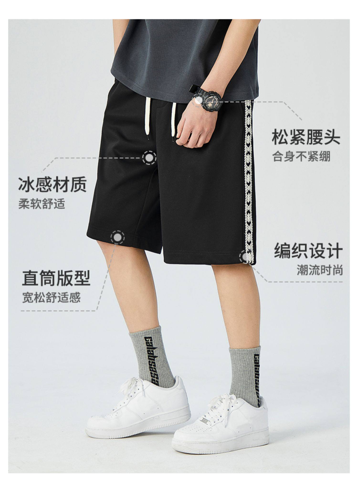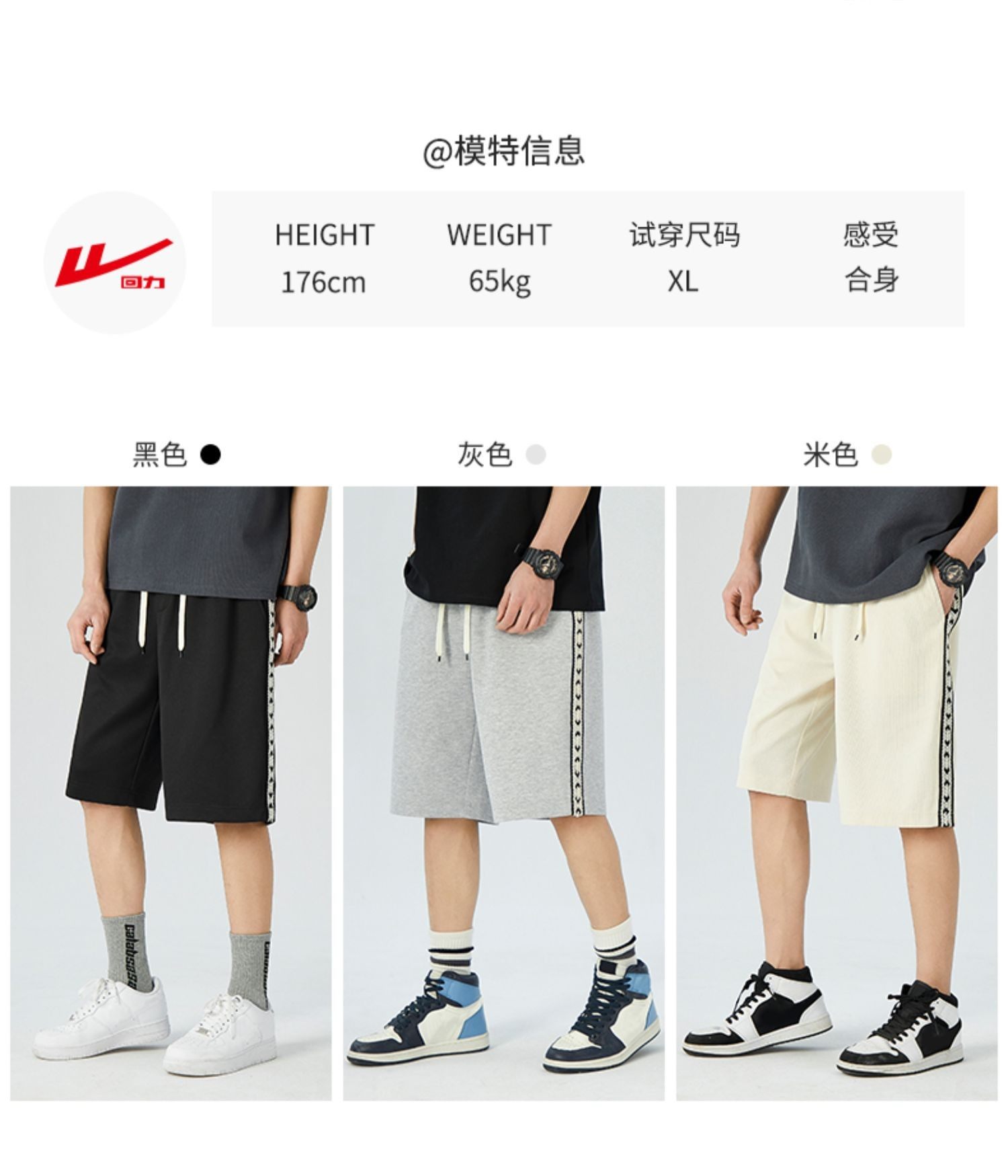 回力织带短裤男士夏季新款潮牌休闲运动篮球裤子美式高街五分中裤