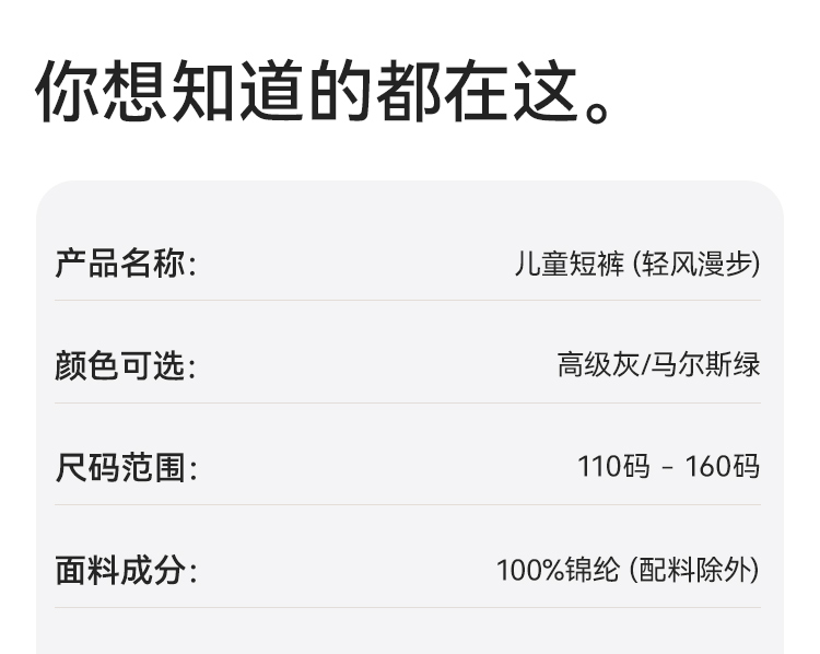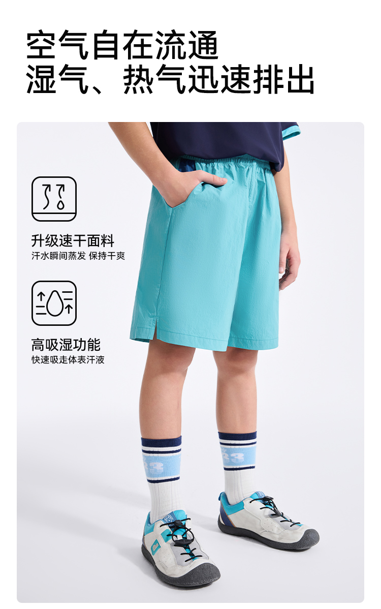 【英氏】【防晒速干】【110-160】男童夏季吸湿速干短裤