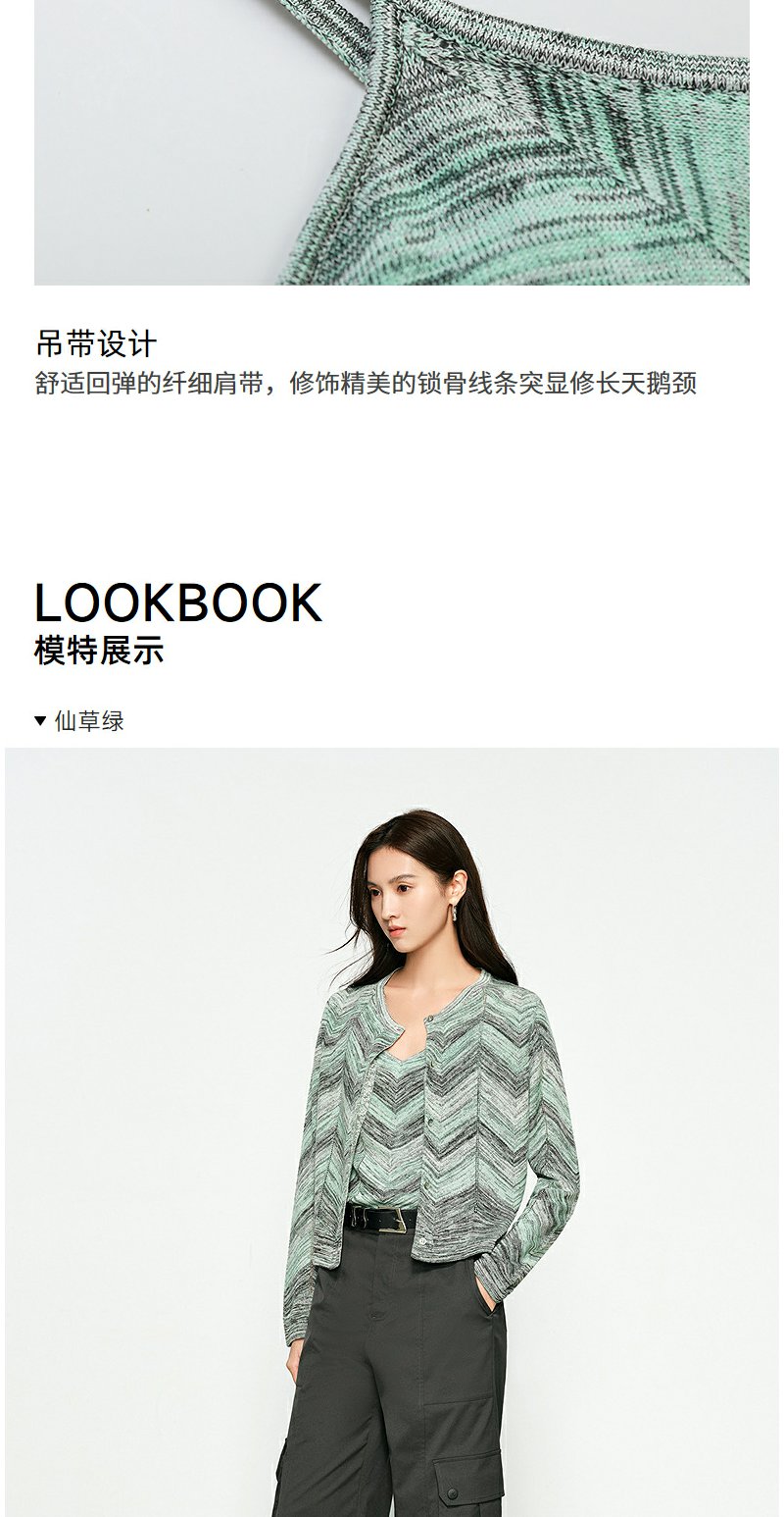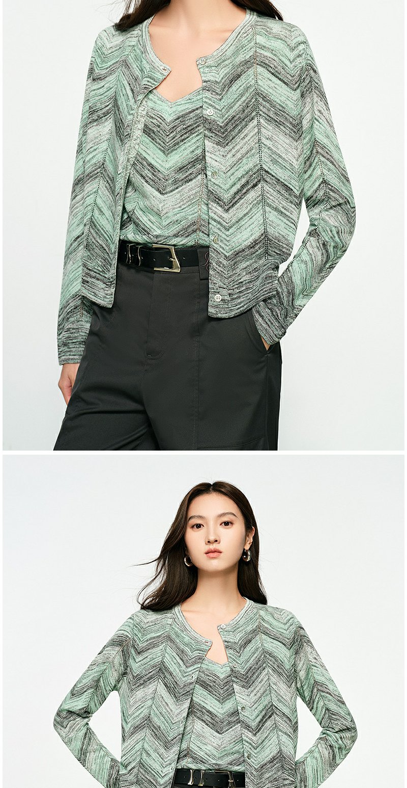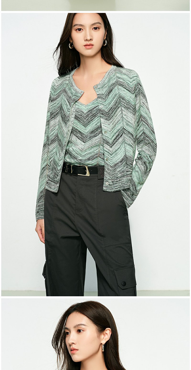 NEELLY纳俪商场同款春季新款显白条纹软糯针织开衫女修身舒适套装N25074A04554