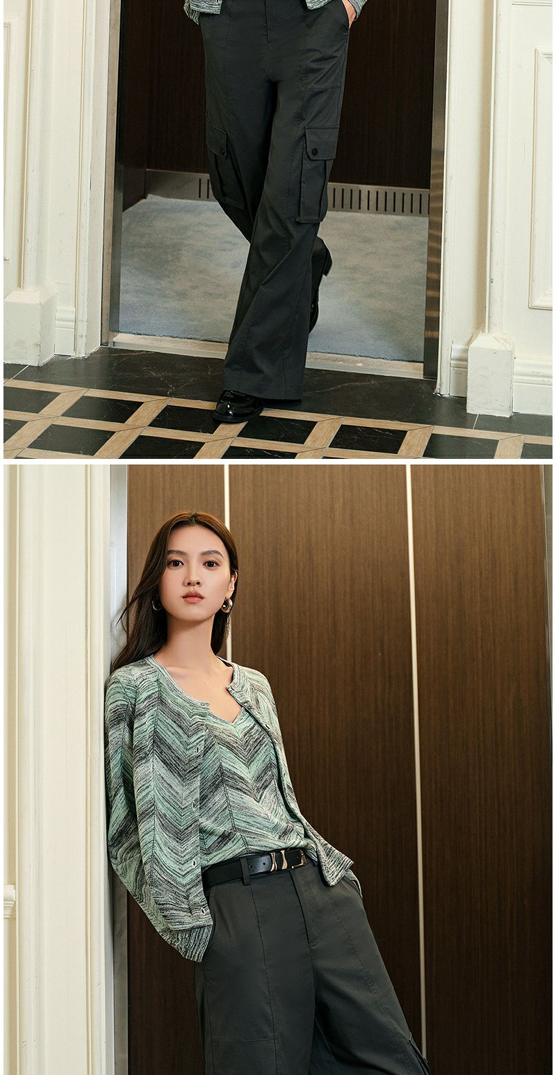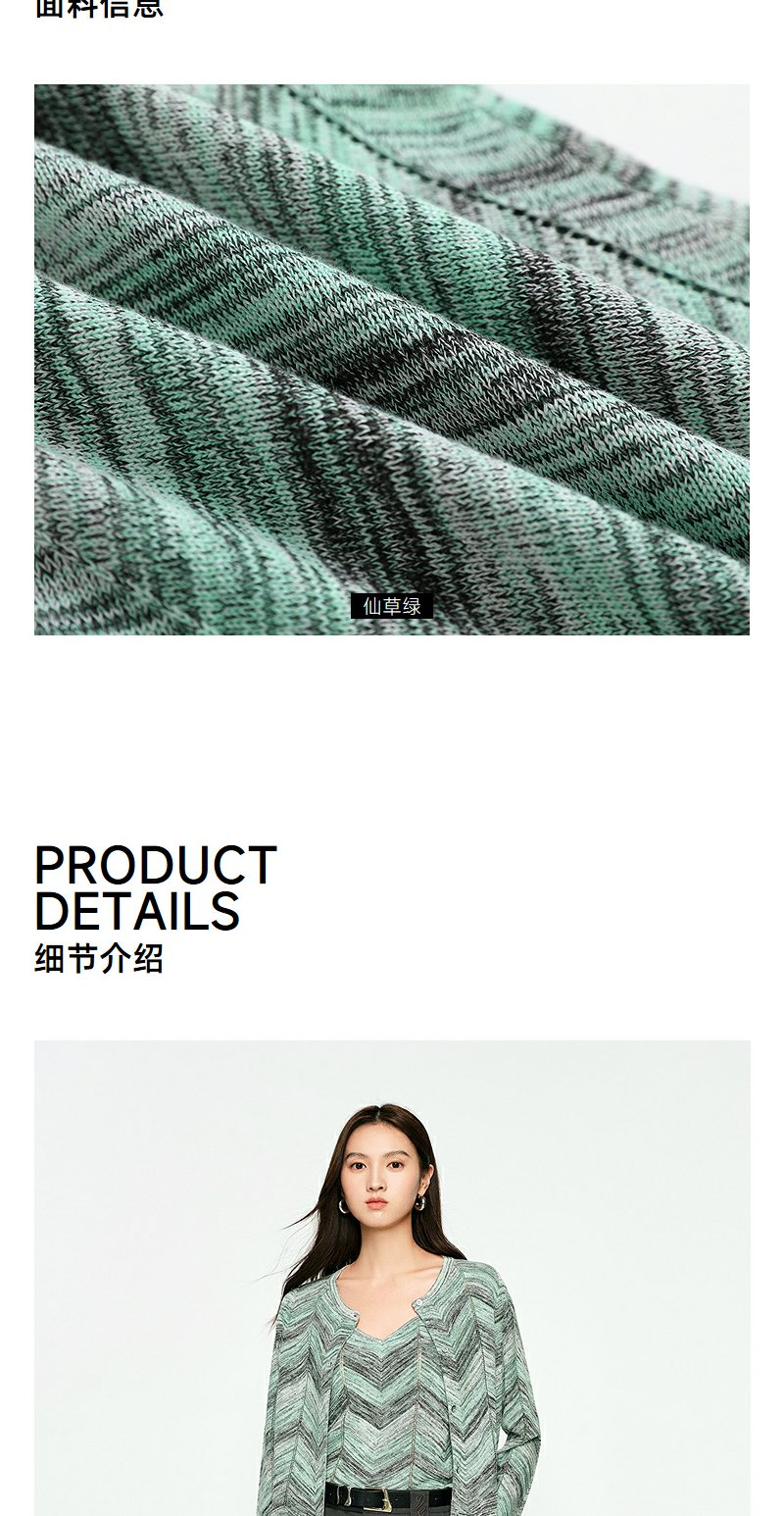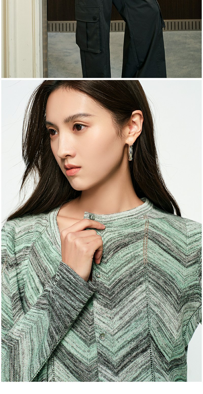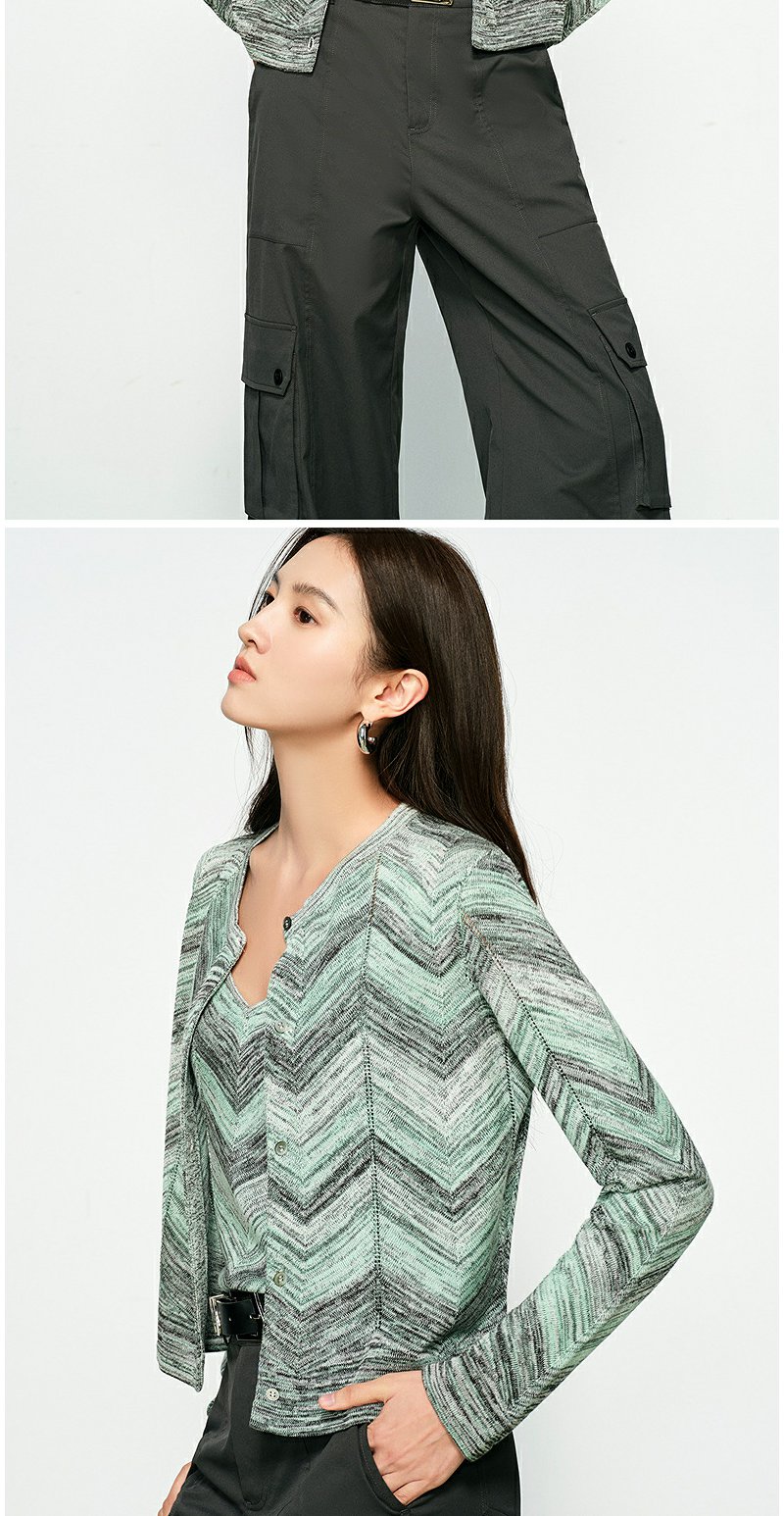 NEELLY纳俪商场同款春季新款显白条纹软糯针织开衫女修身舒适套装N25074A04554