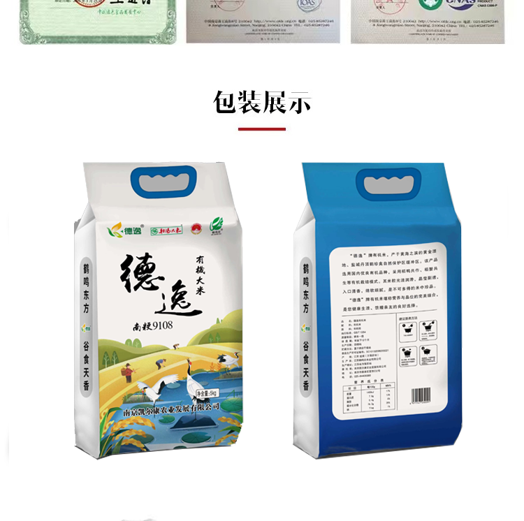 德逸南粳9108有机大米5kg 真空包装 有机食品 地理标志产品