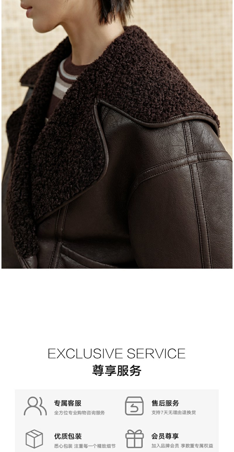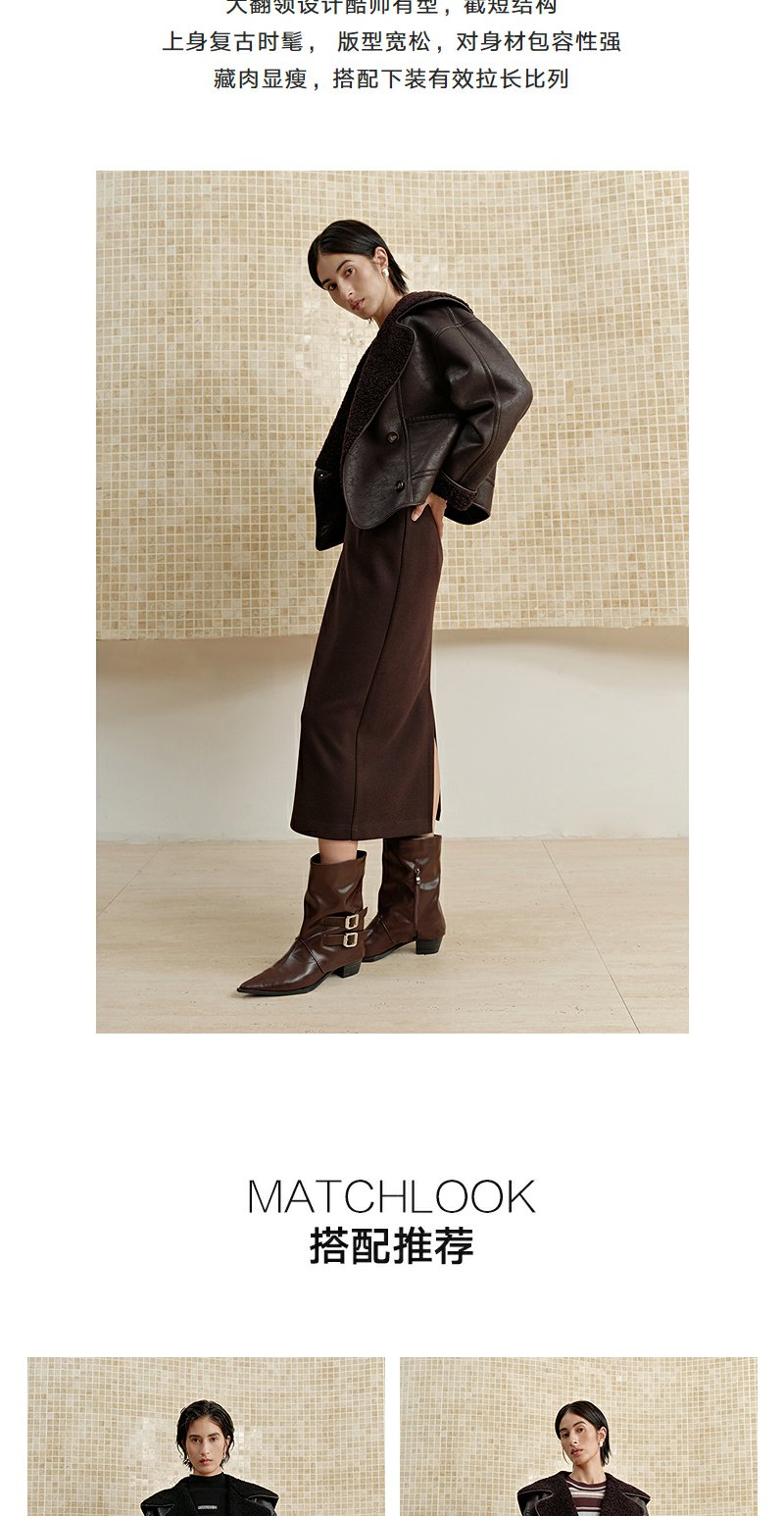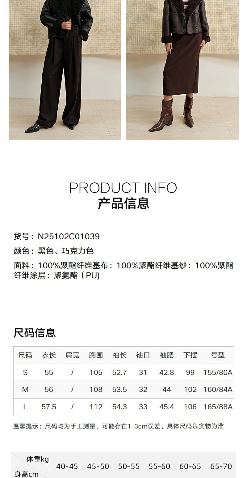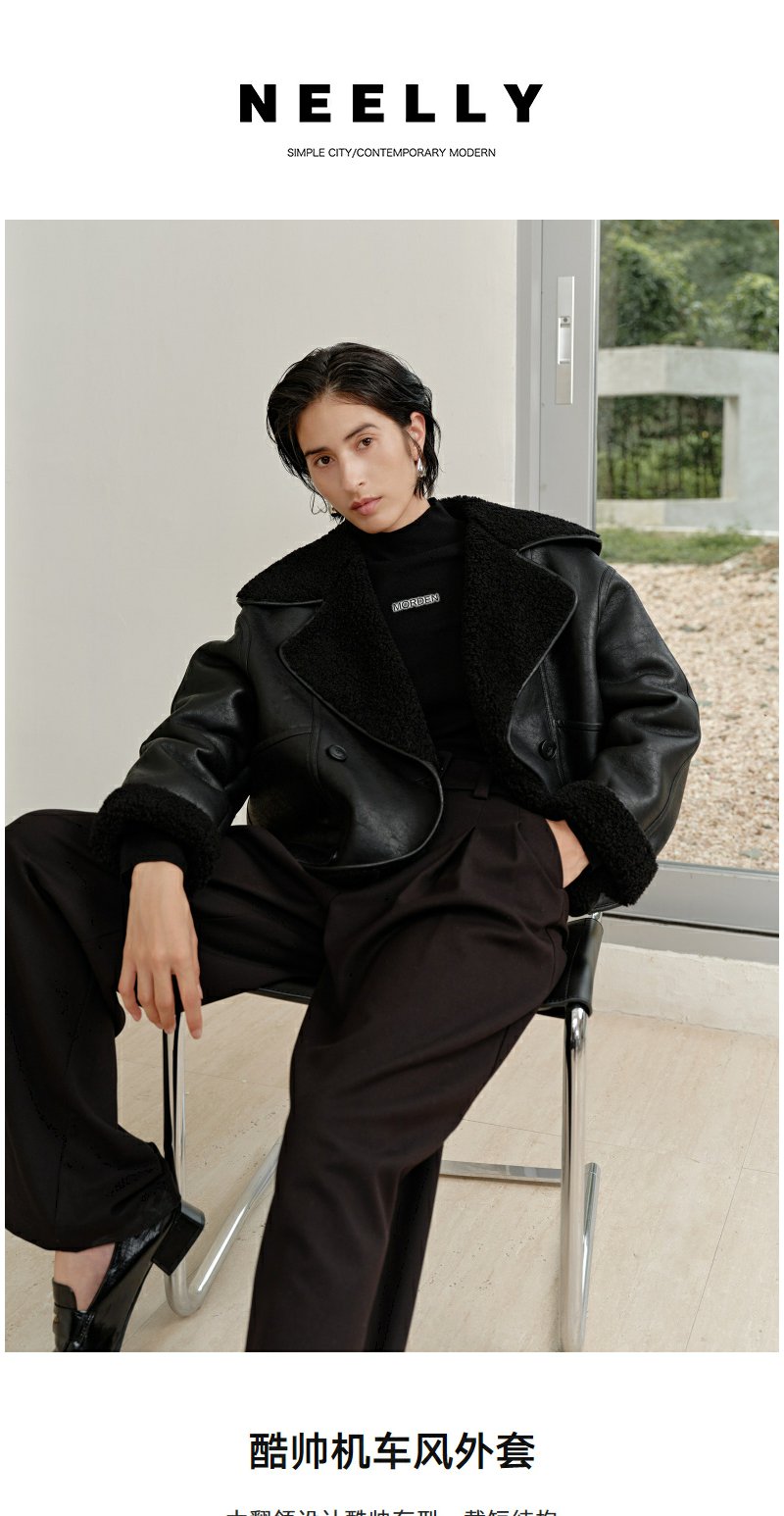 NEELLY纳俪商场同款冬季新款复古风机车服翻领外套女美式酷飒上衣