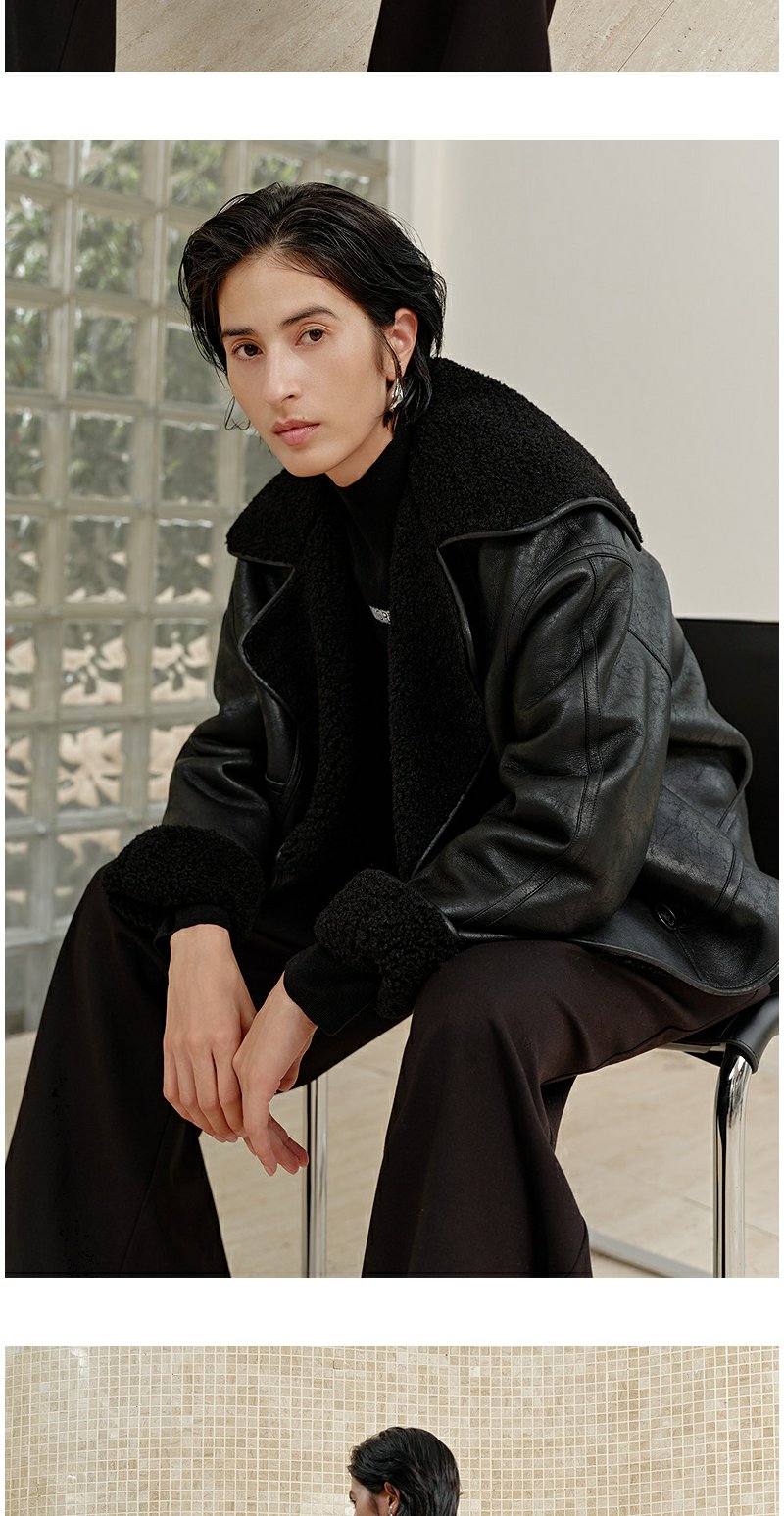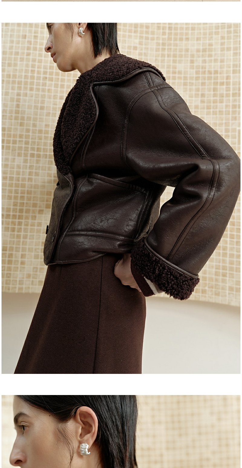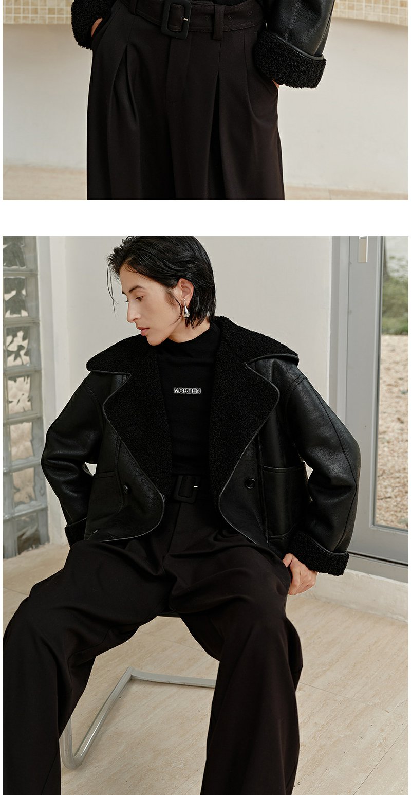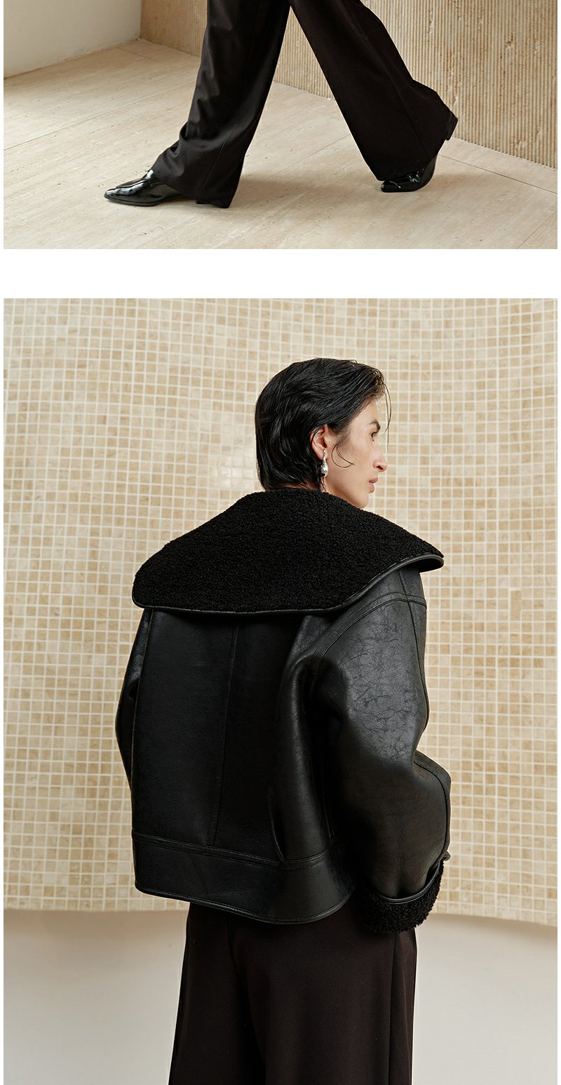 NEELLY纳俪商场同款冬季新款复古风机车服翻领外套女美式酷飒上衣
