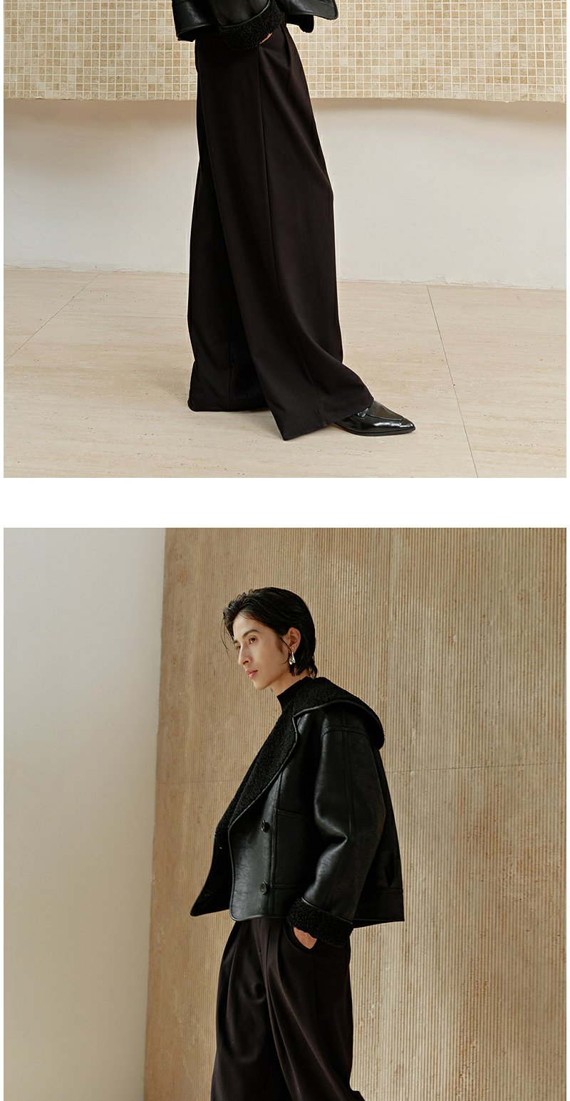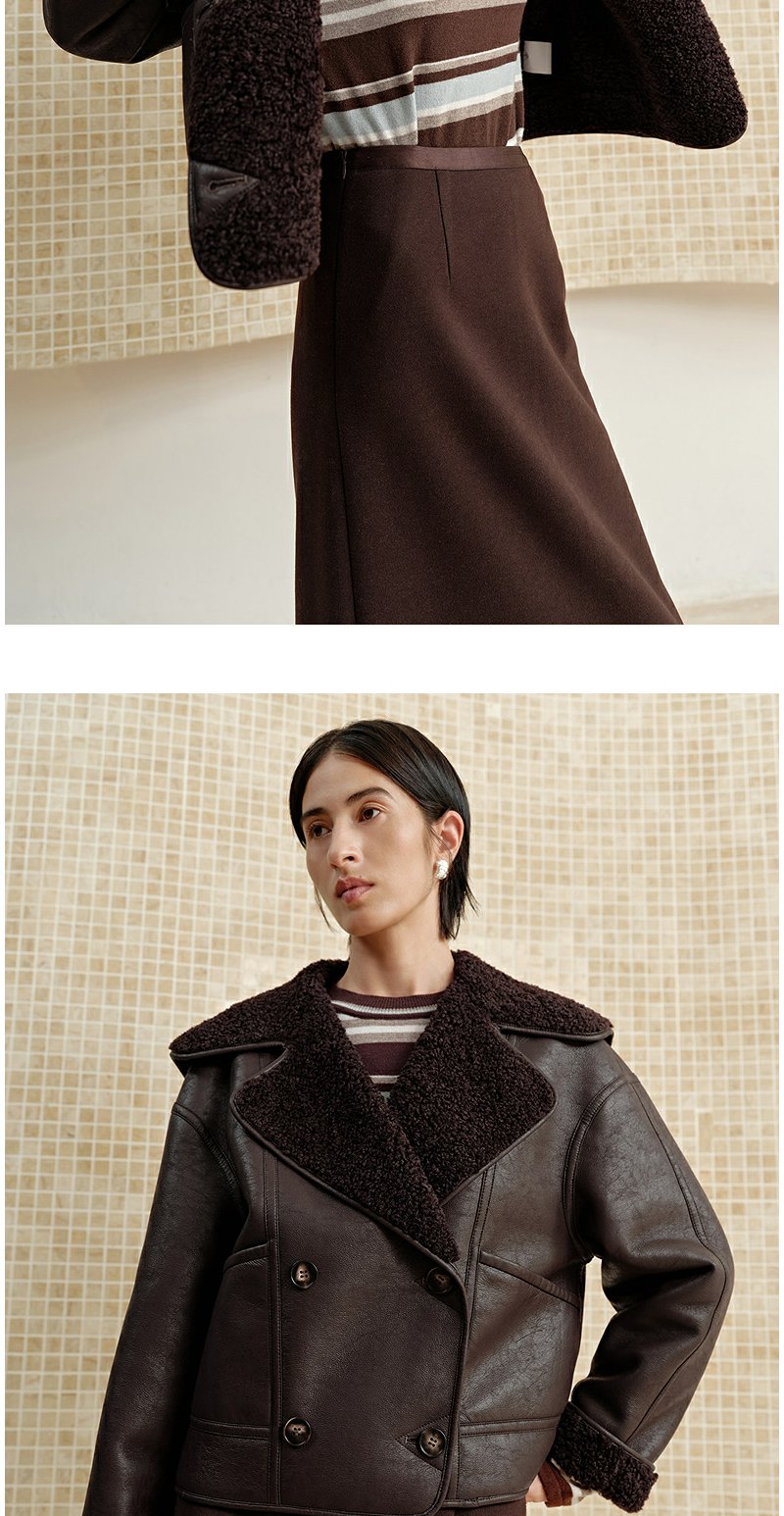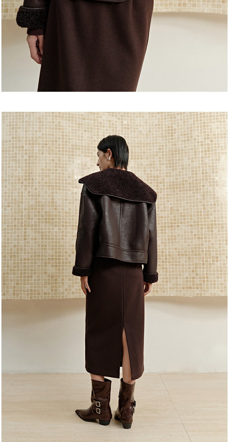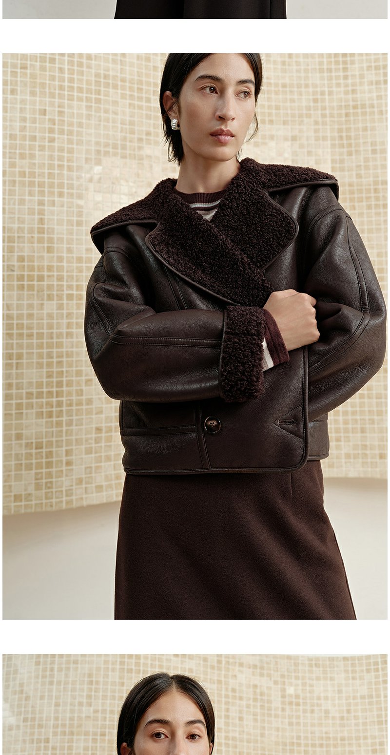 NEELLY纳俪商场同款冬季新款复古风机车服翻领外套女美式酷飒上衣
