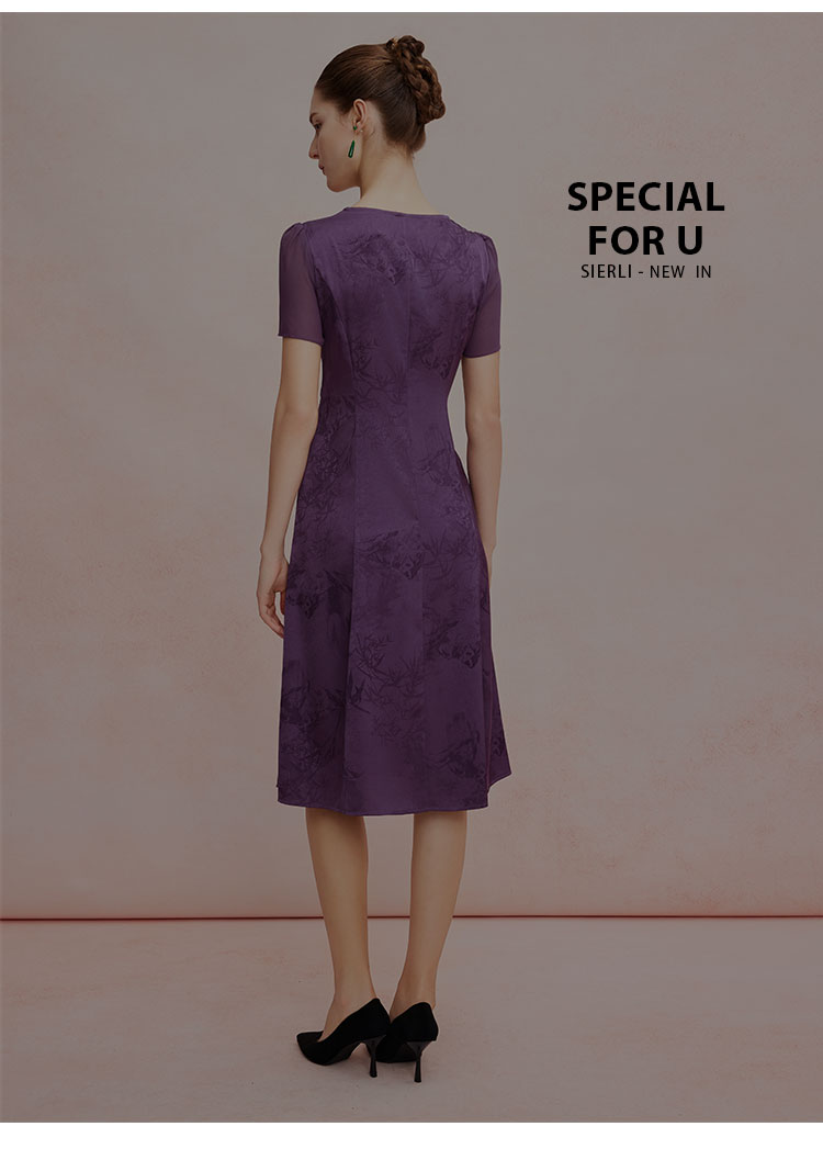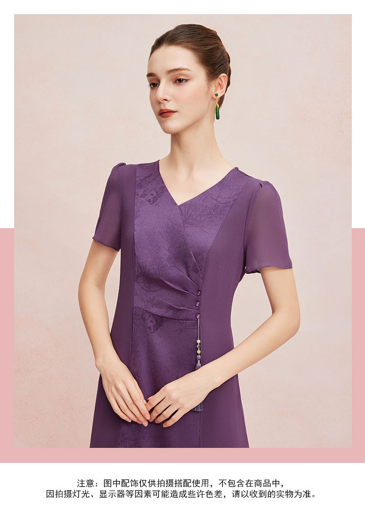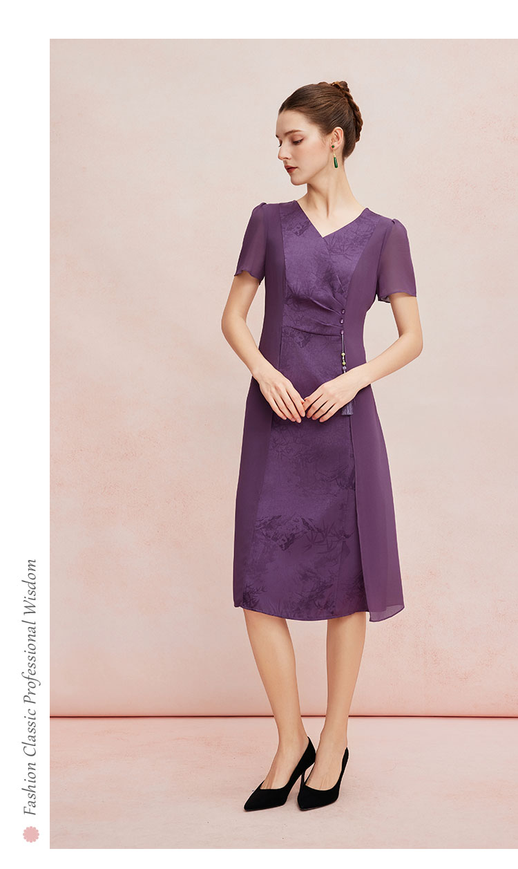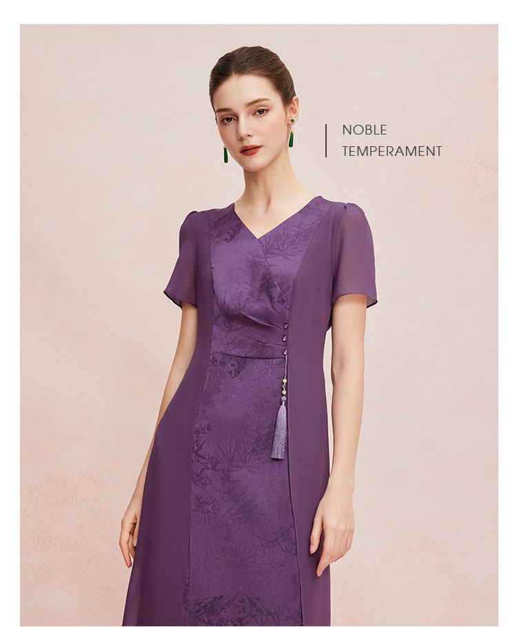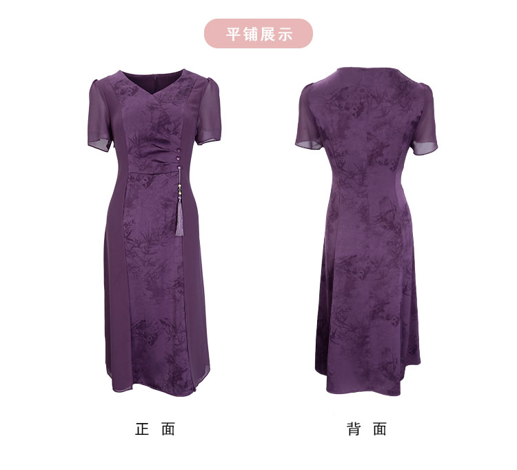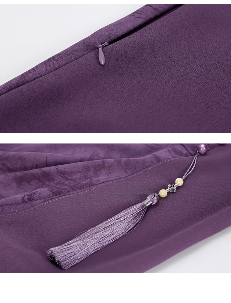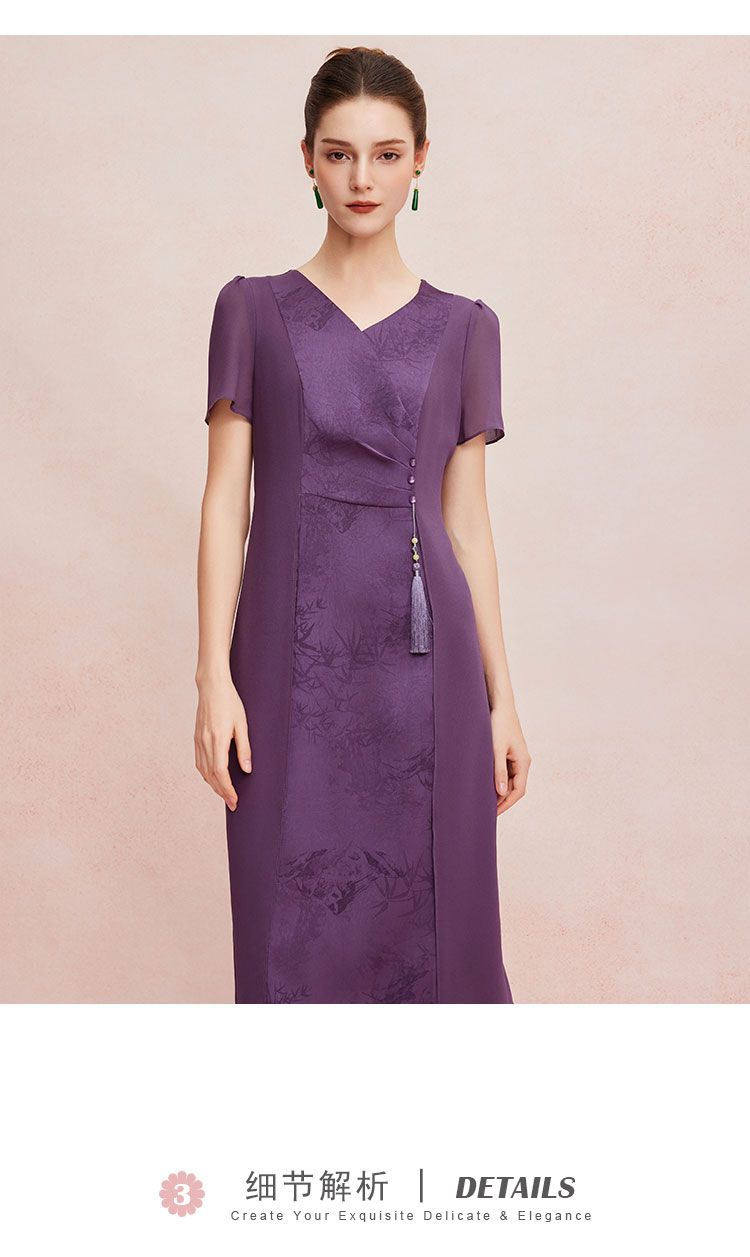 QF8B3斯尔丽25新款侧腰收褶显瘦水墨画优雅流苏精致飘逸连衣裙