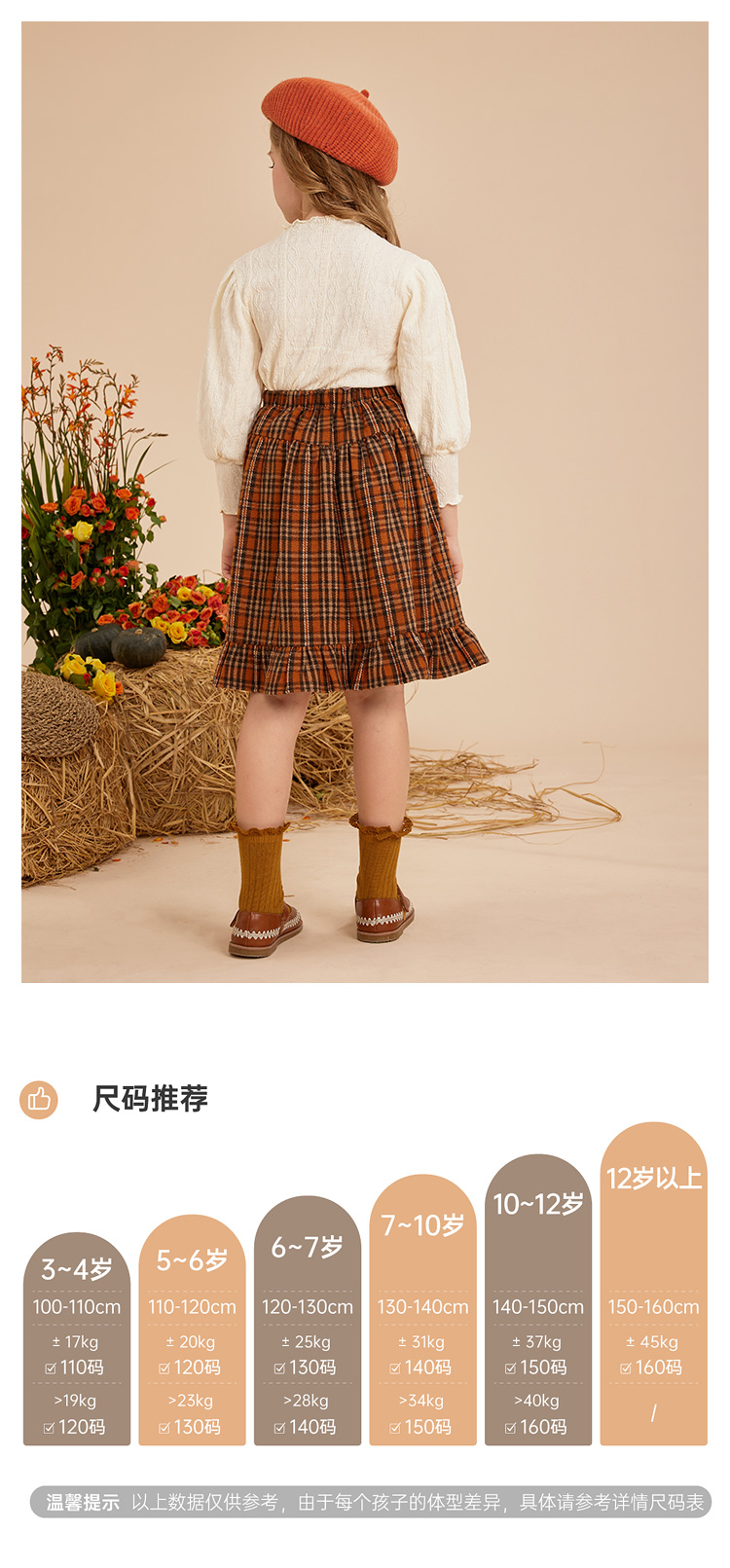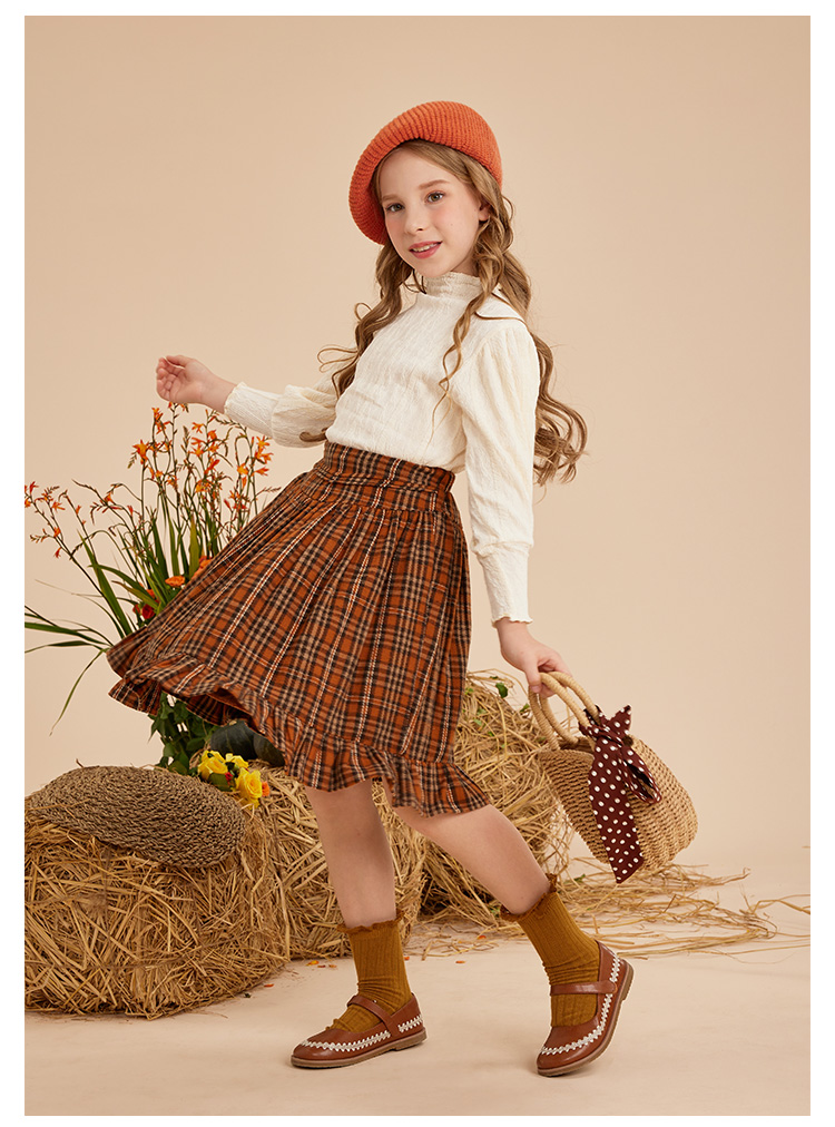 littletime女童百褶裙秋冬2022小格子复古A字半身裙英伦加绒短裙