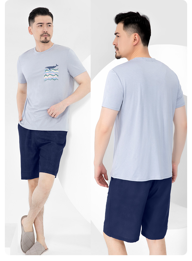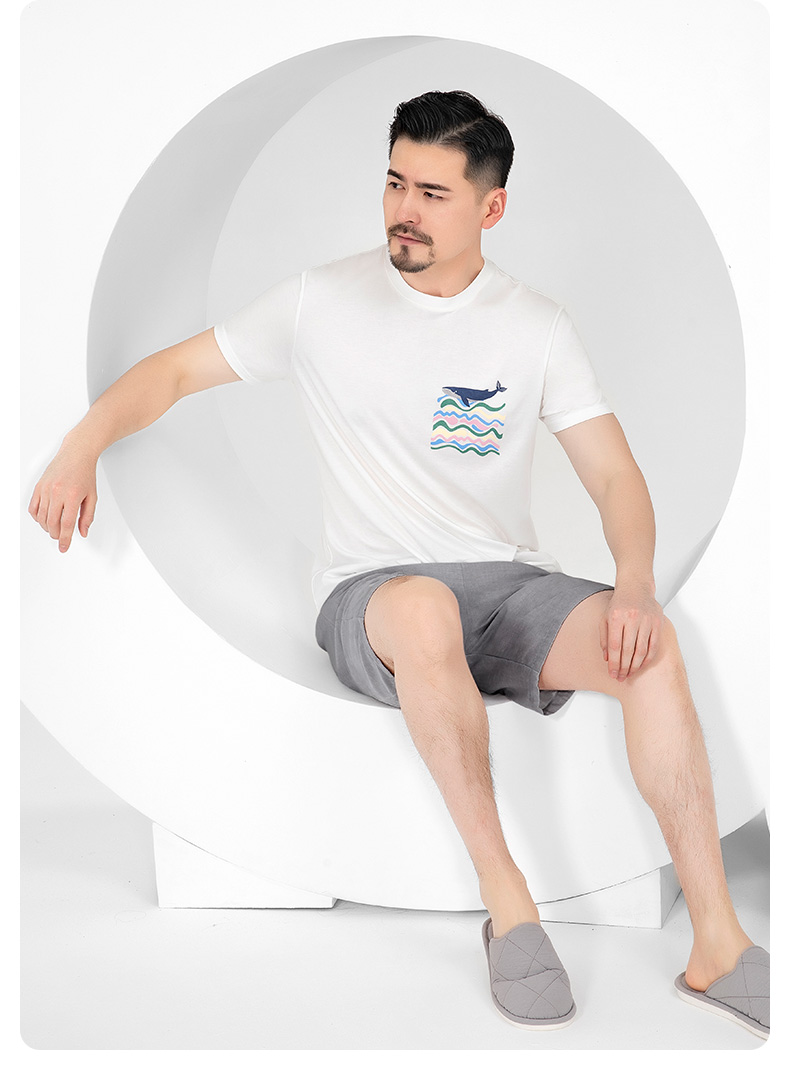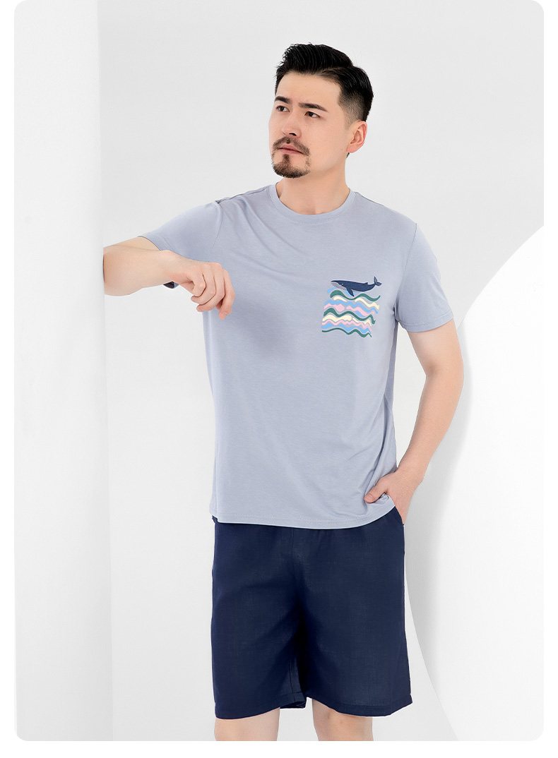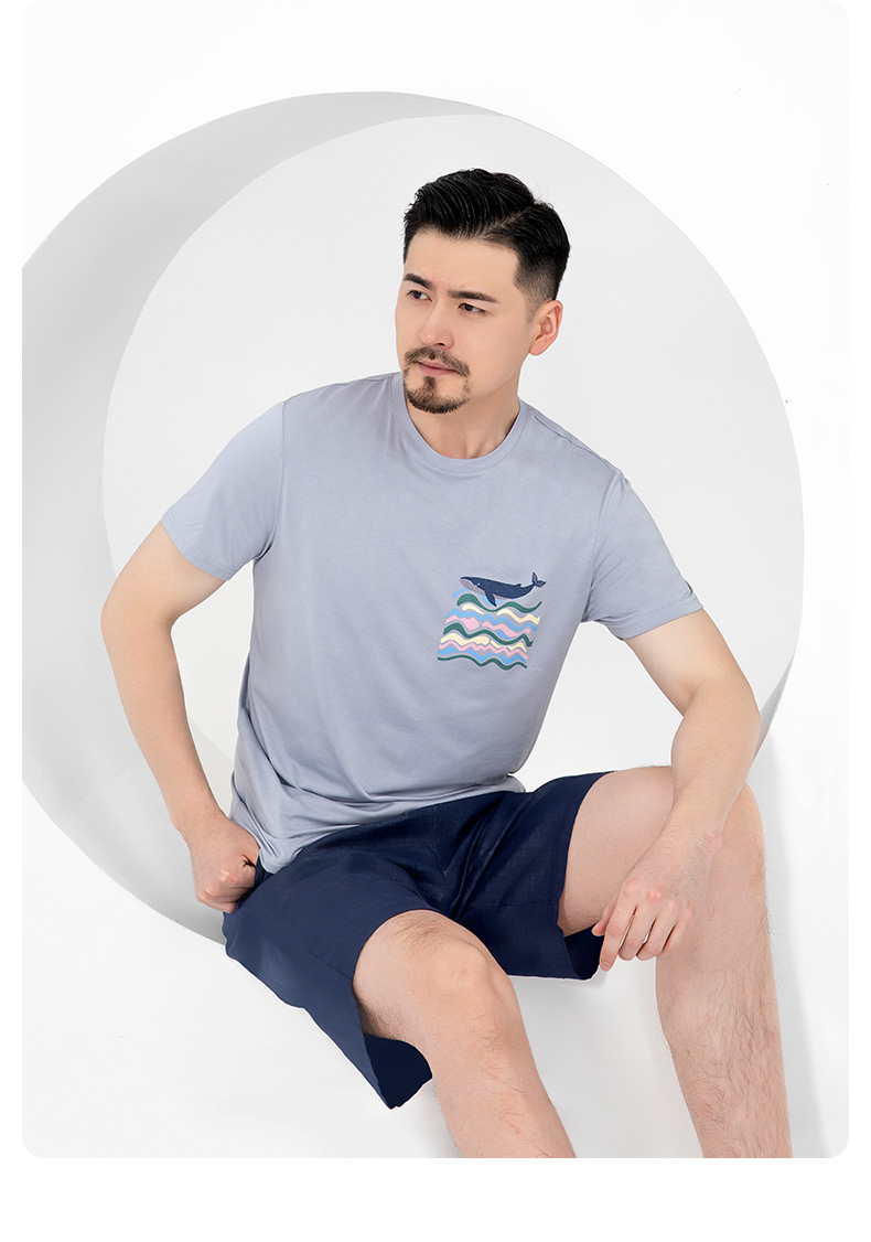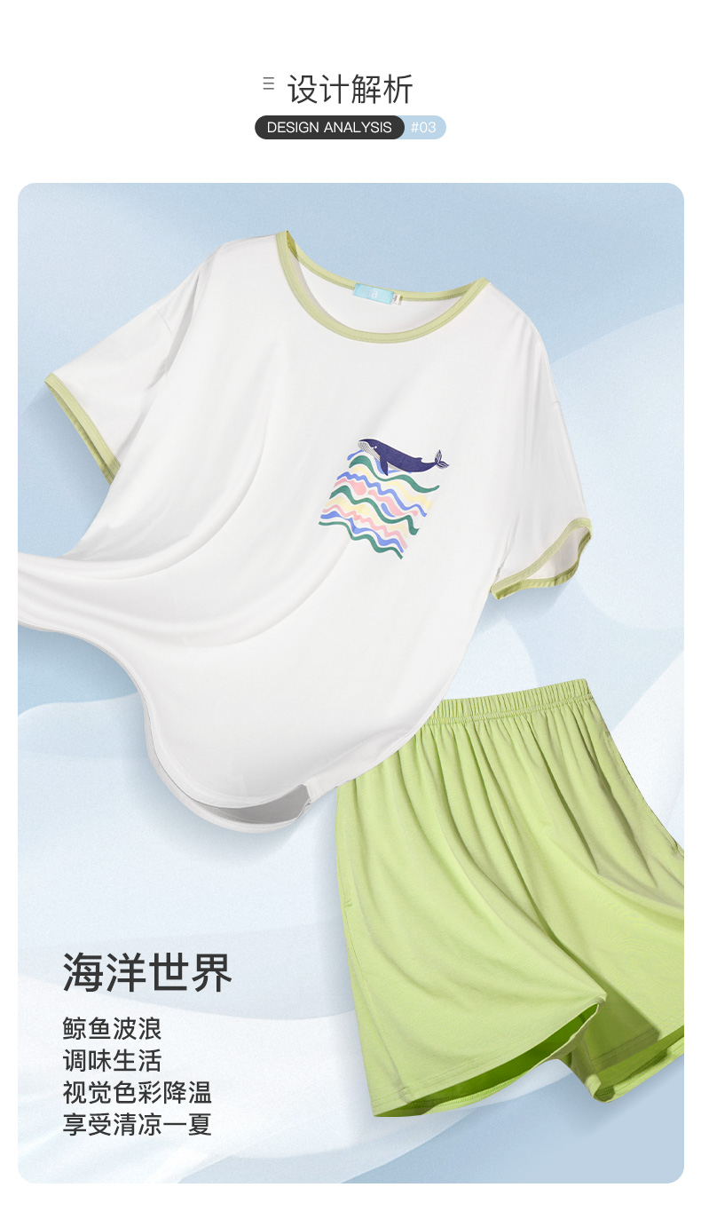 爱帝睡衣套夏季短袖家居服凉感海豚印花套装男女款可选