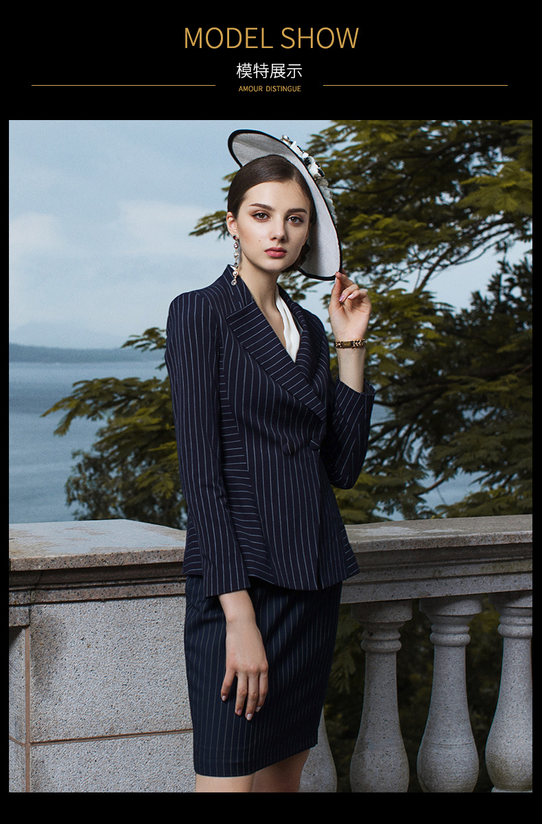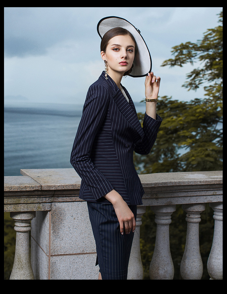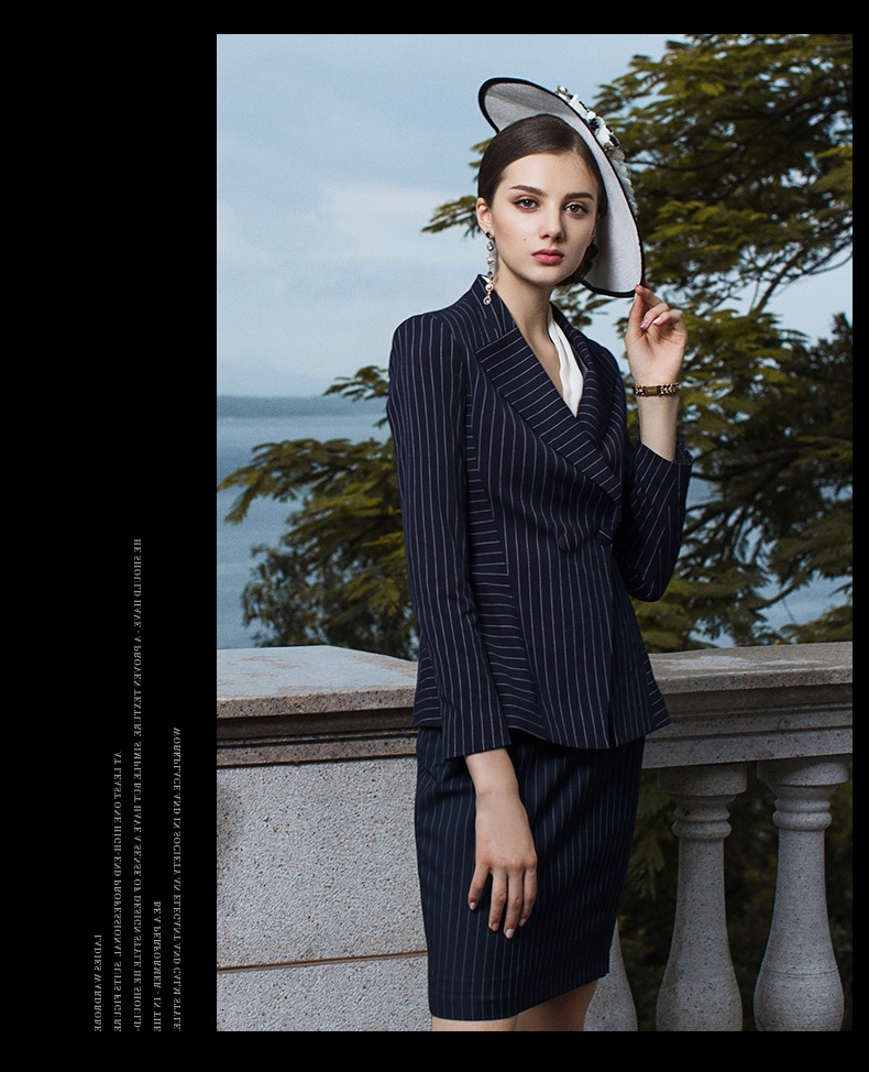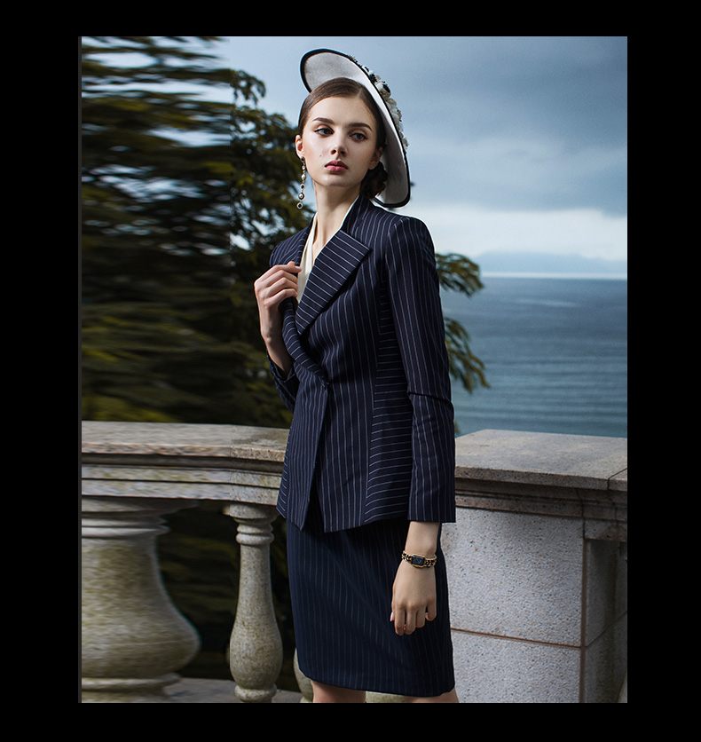 IWY/蓝色条纹长袖西装半裙套装CS429