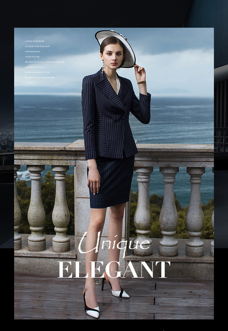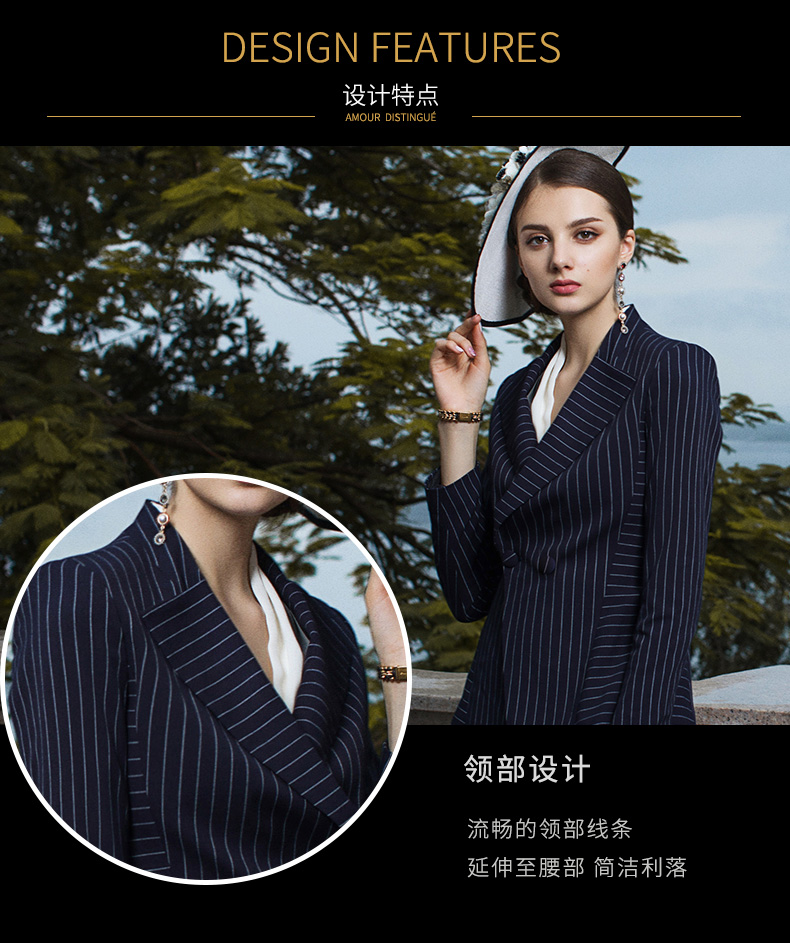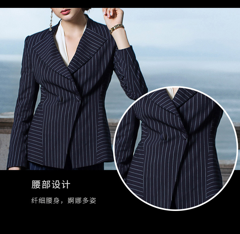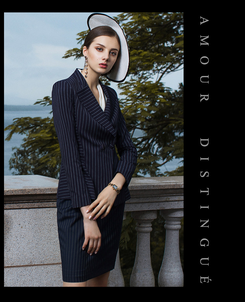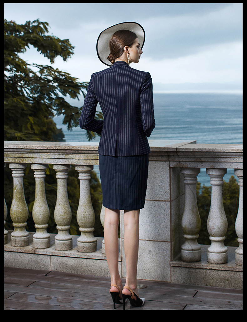 IWY/蓝色条纹长袖西装半裙套装CS429