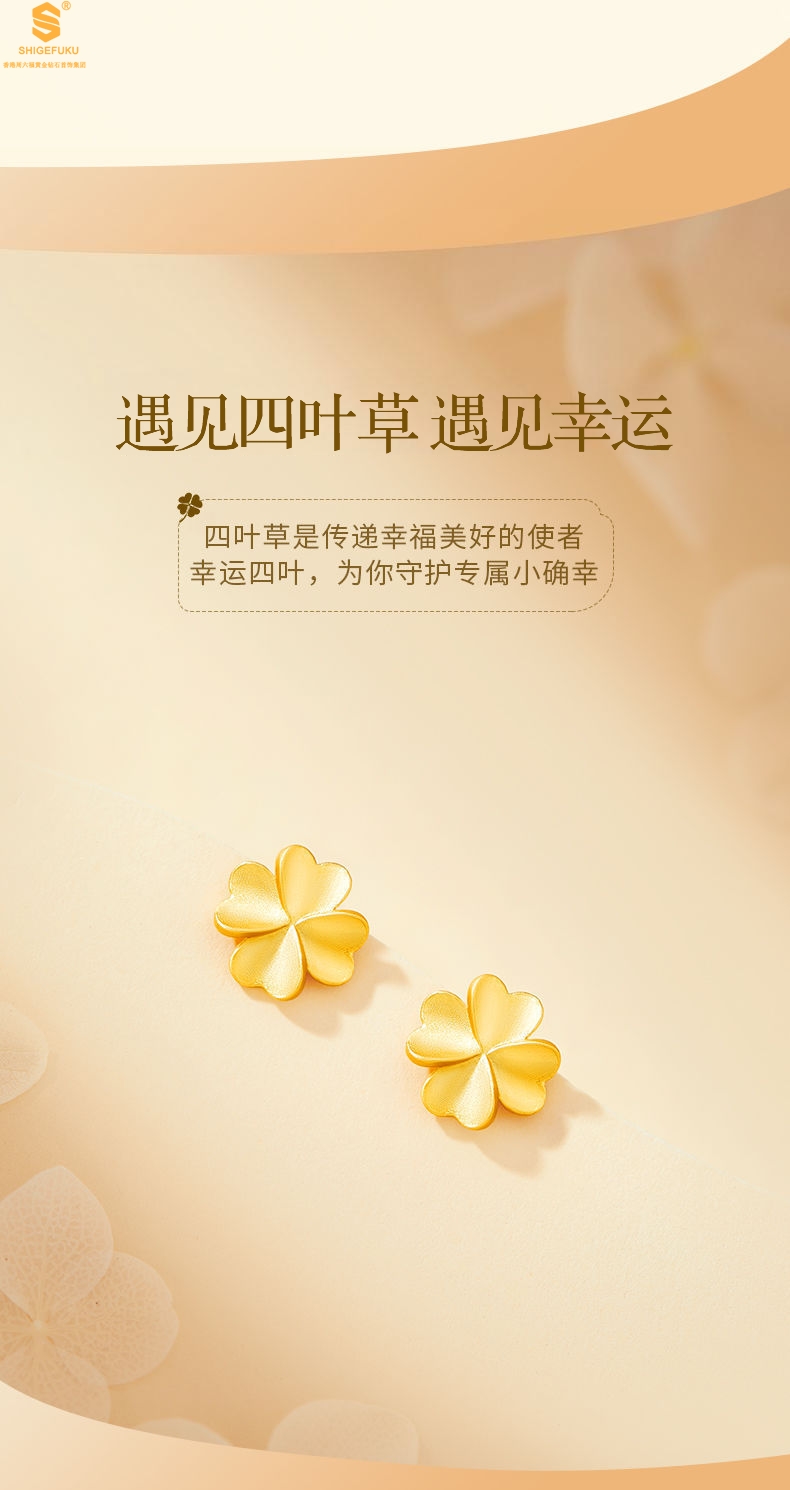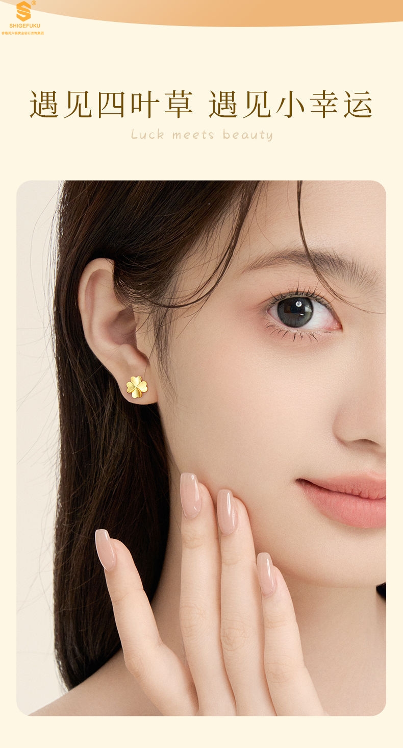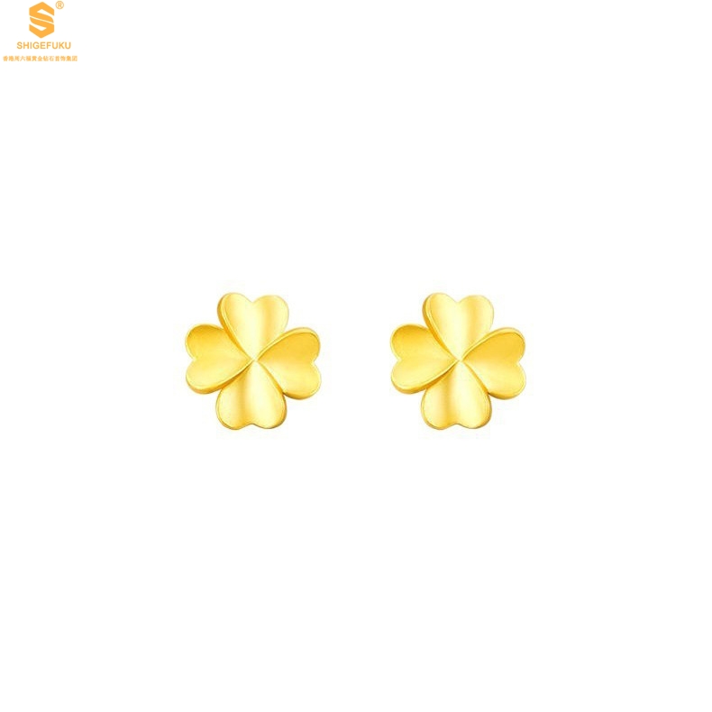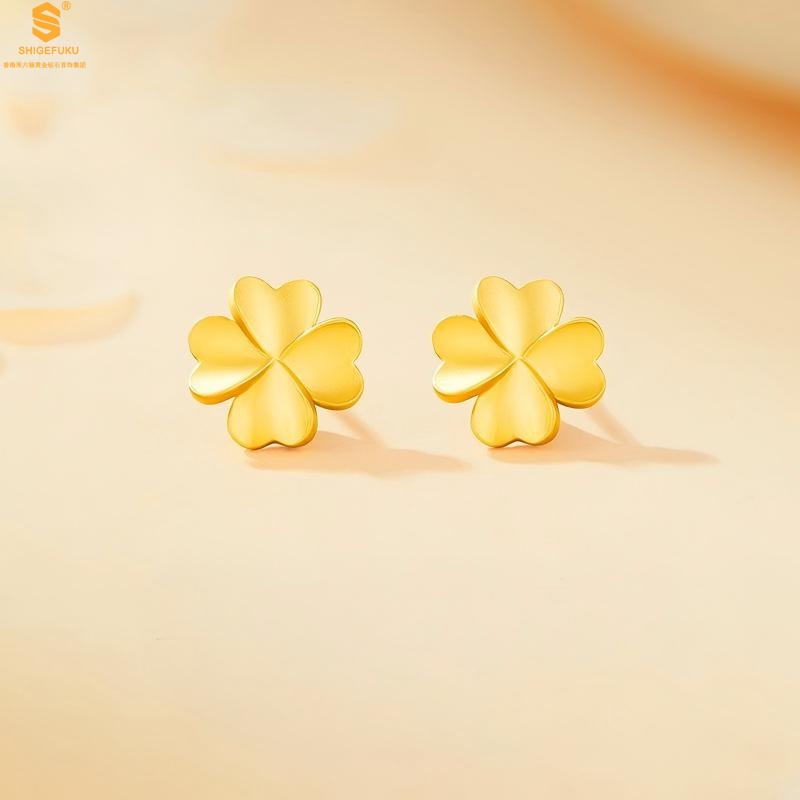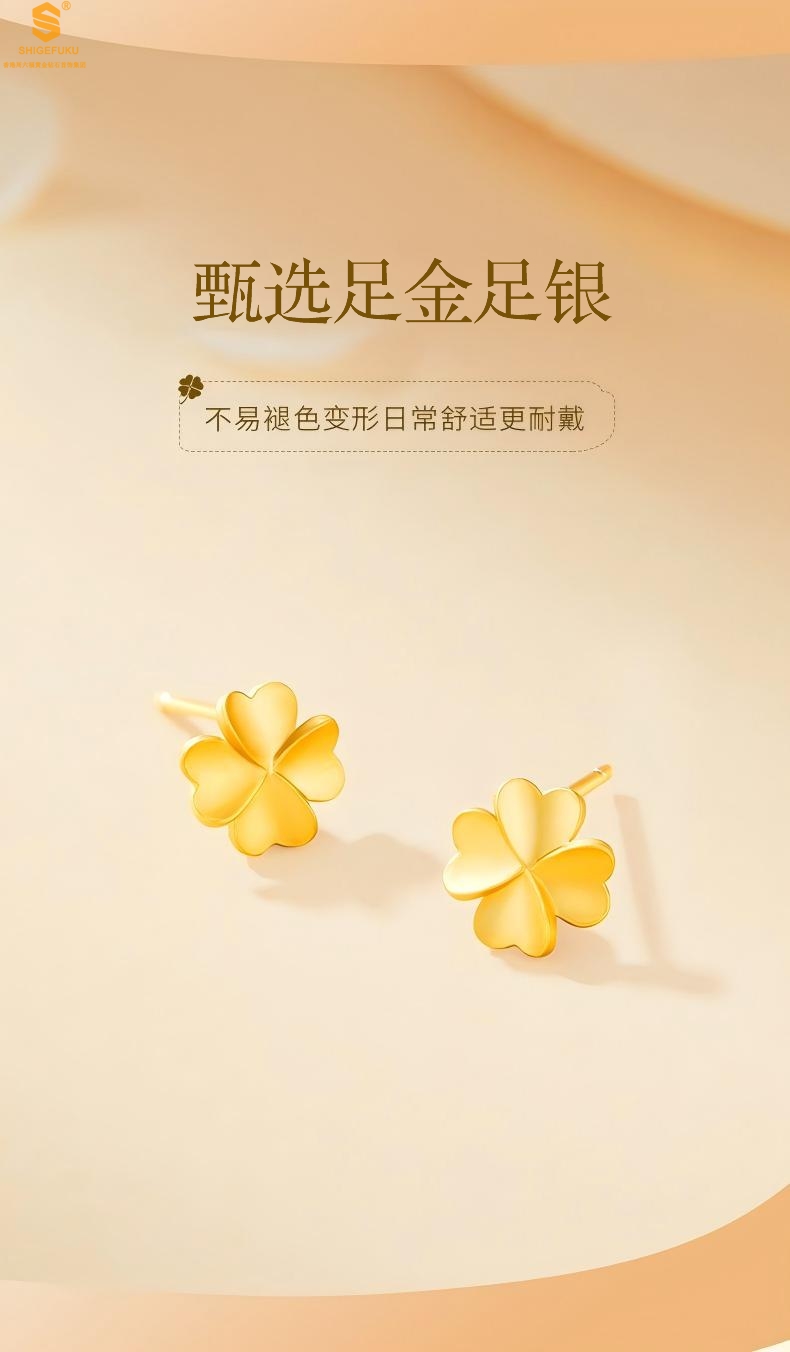 【品名】古法鎏光幸运四叶草足金内嵌足银耳钉(对)