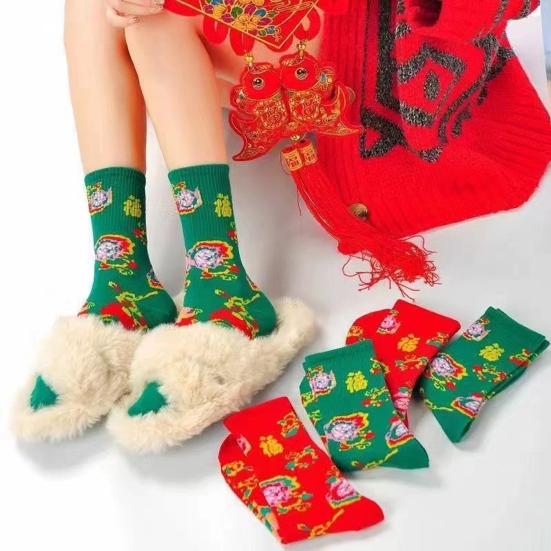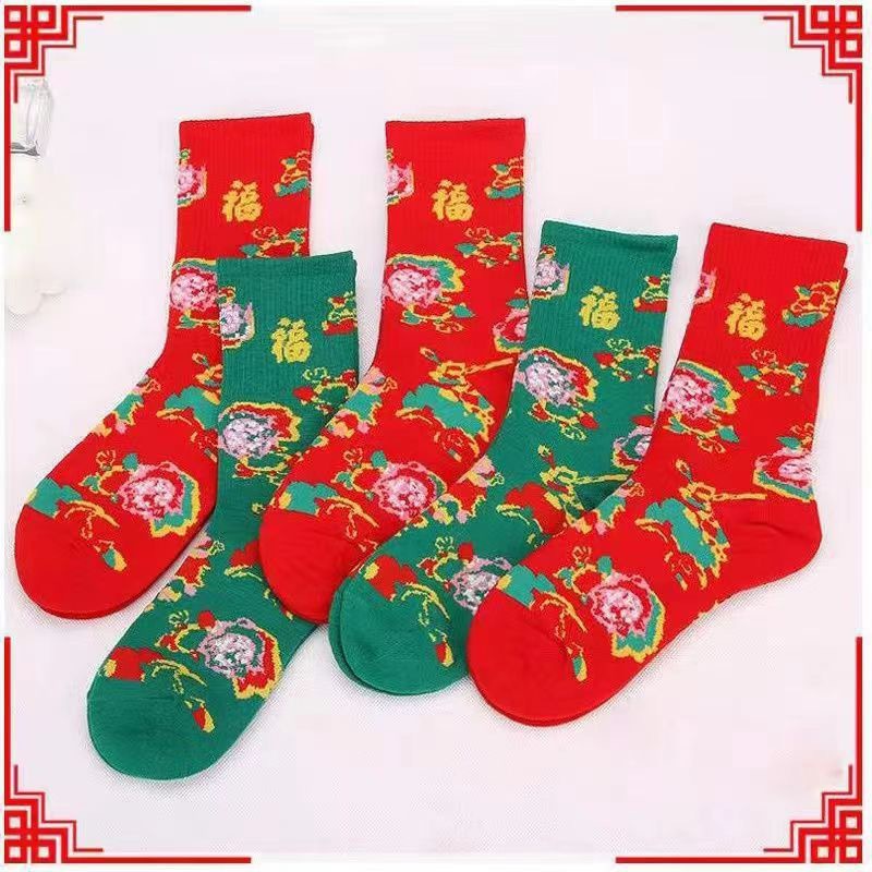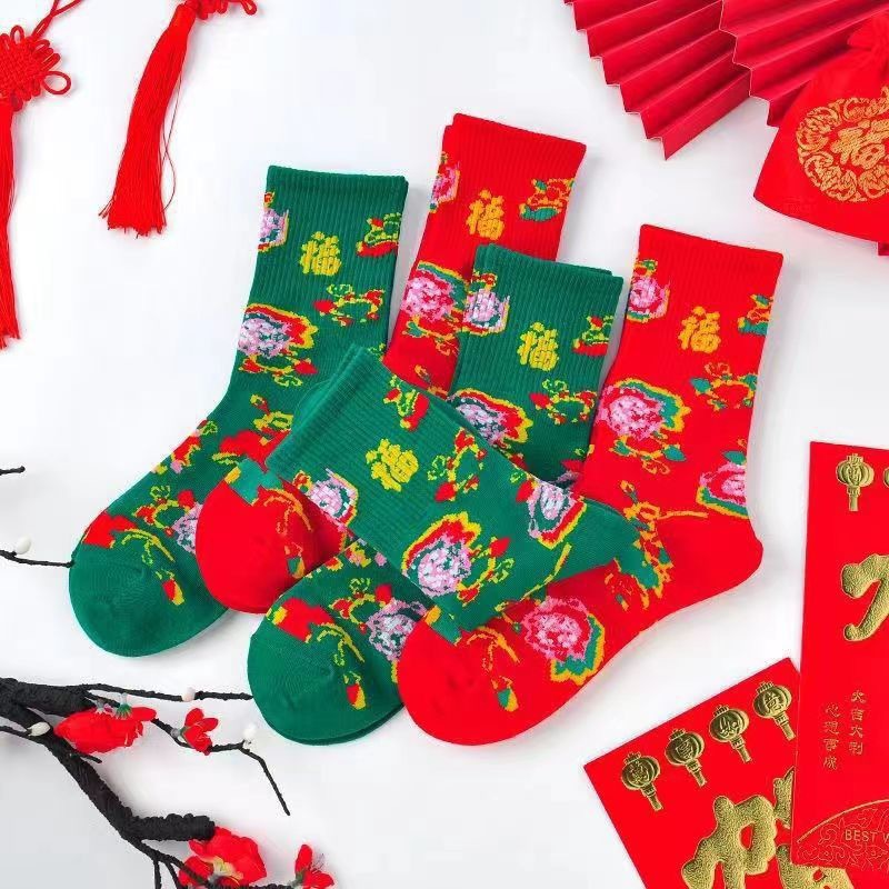 本命年爆款【3双装 东北大花红袜子】喜庆新年 国风潮流 男女棉袜